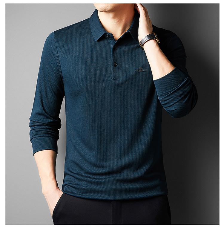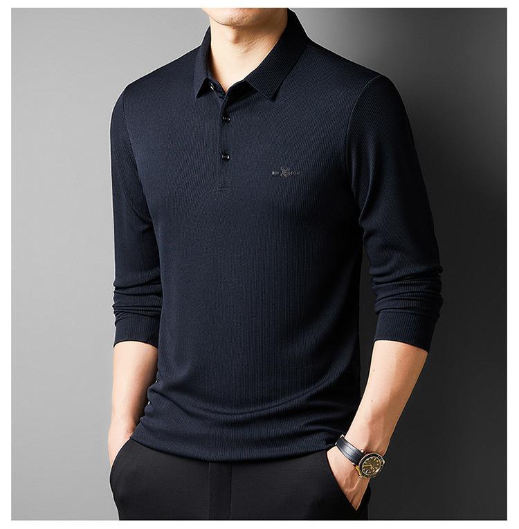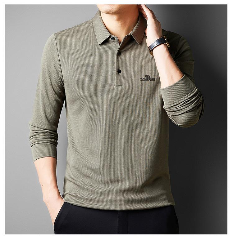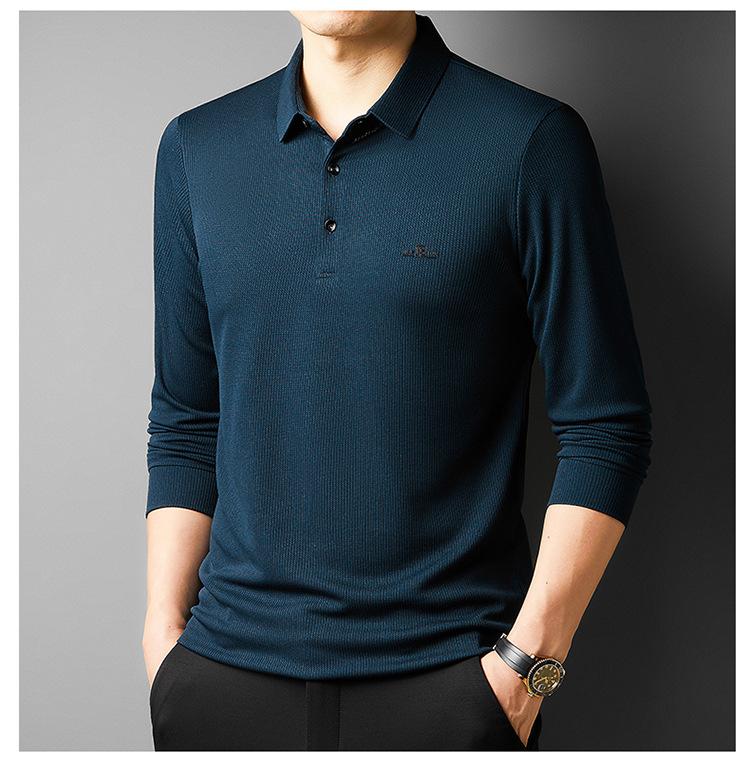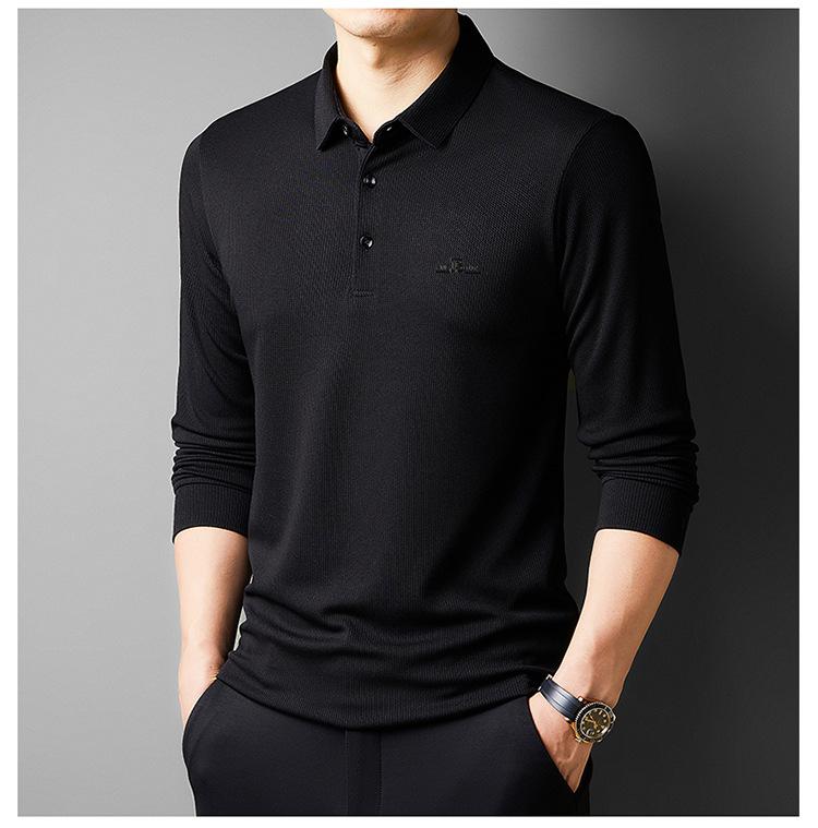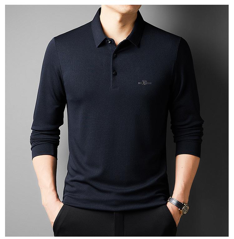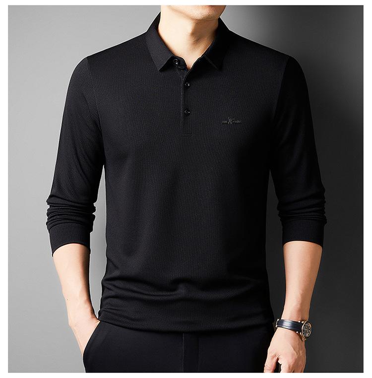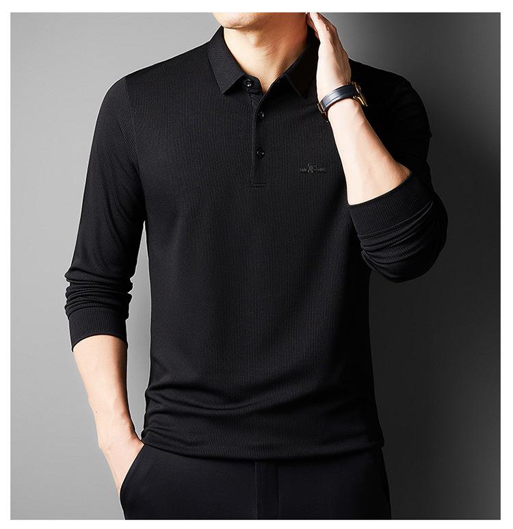 Camiseta de manga larga con solapa de primavera y otoño para hombres jóvenes y de mediana edad, venta al por mayor transfronteriza, camisa POLO de negocios, camisa básica informal para hombres