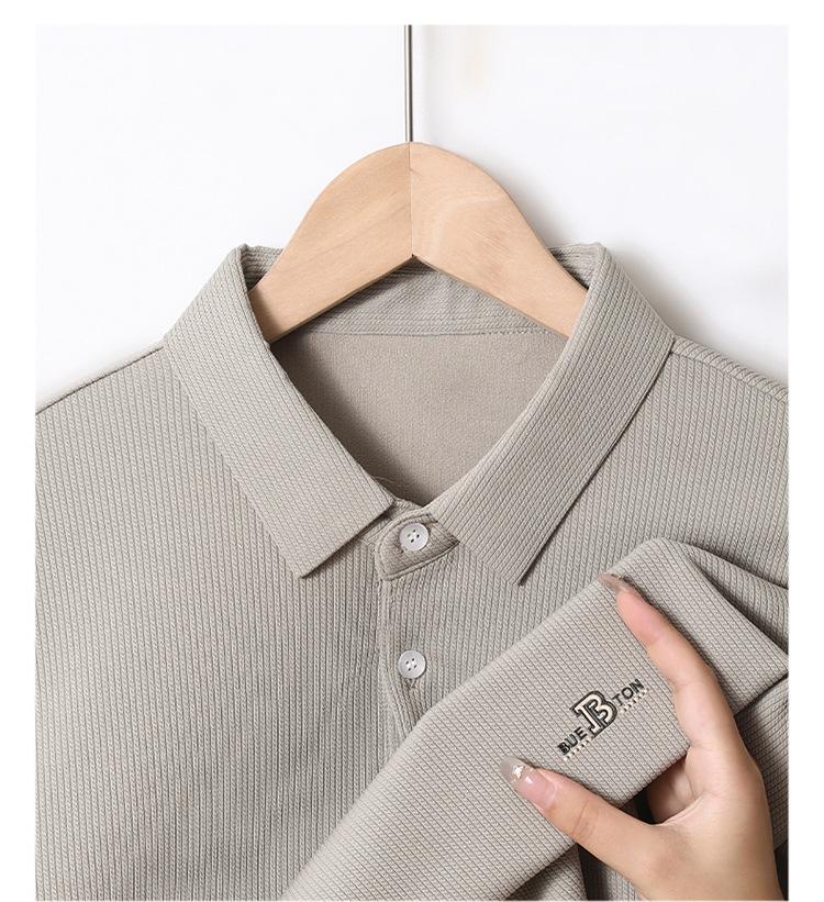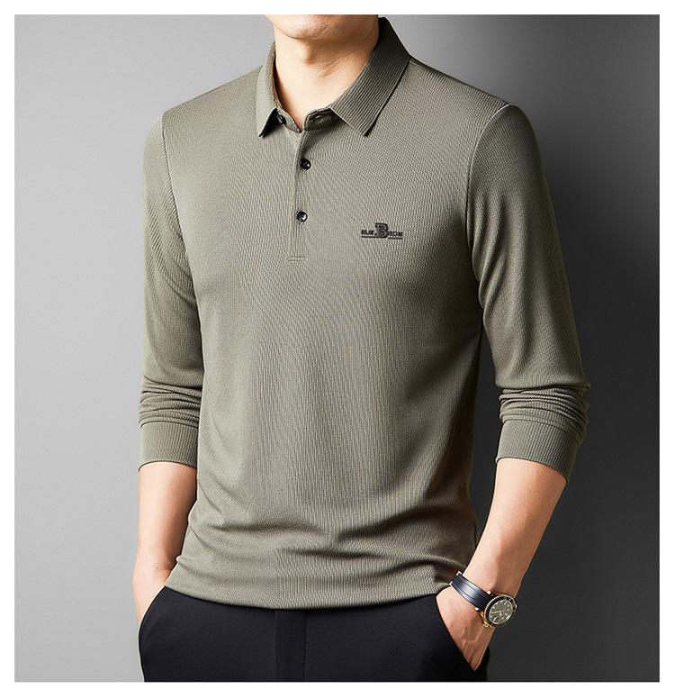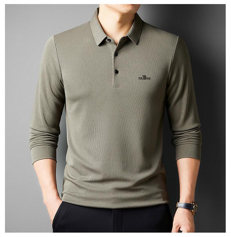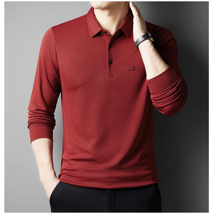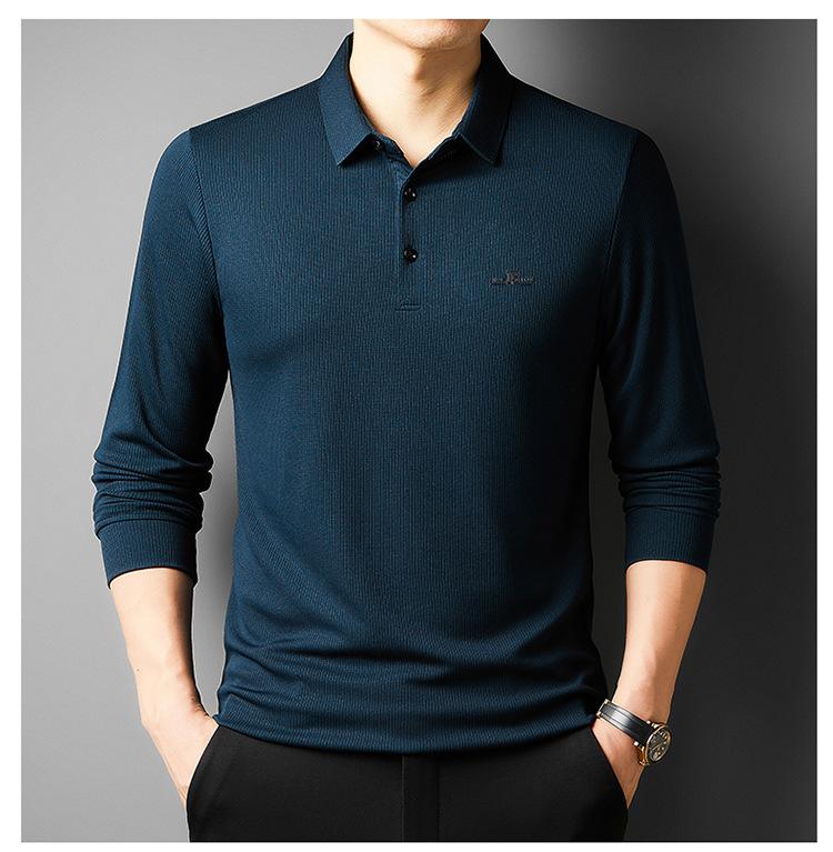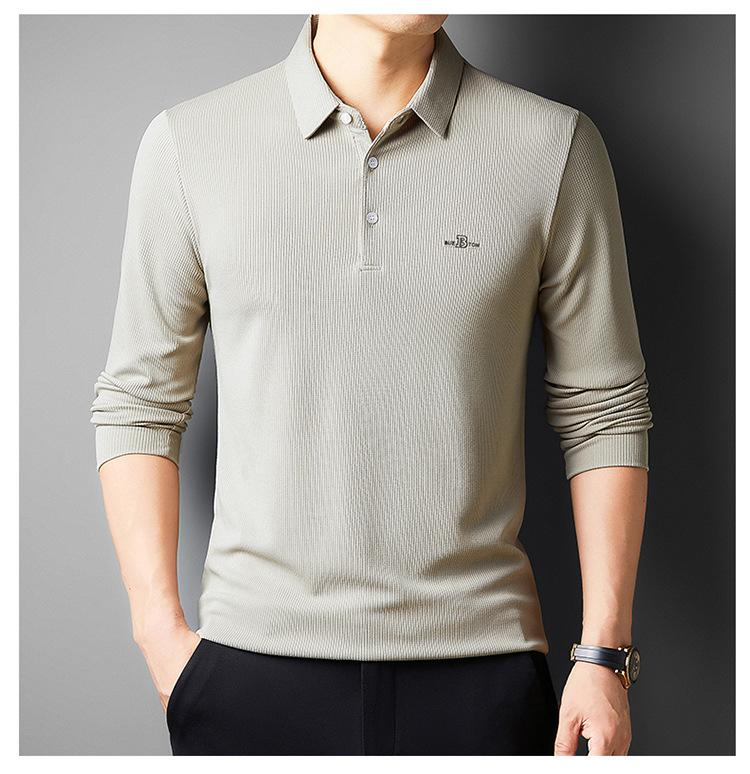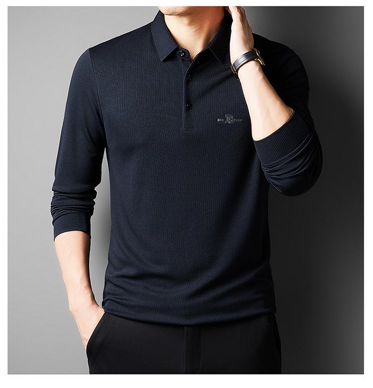 Camiseta de manga larga con solapa de primavera y otoño para hombres jóvenes y de mediana edad, venta al por mayor transfronteriza, camisa POLO de negocios, camisa básica informal para hombres