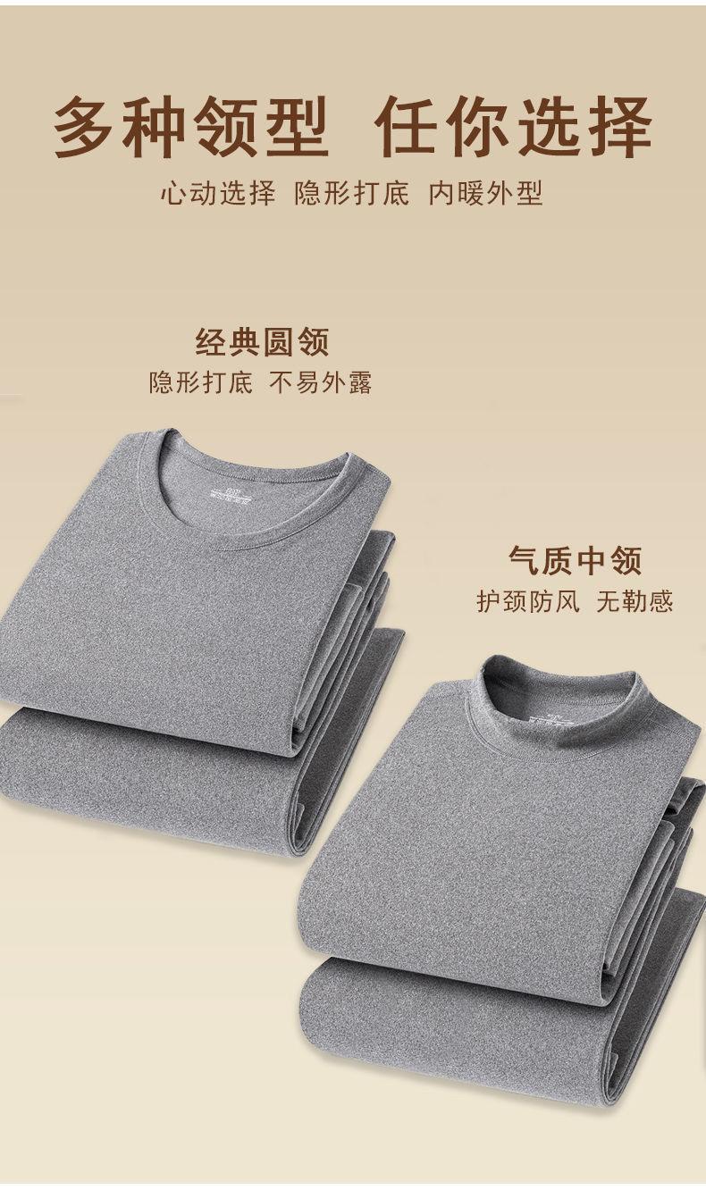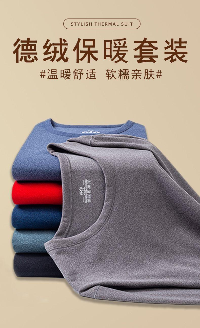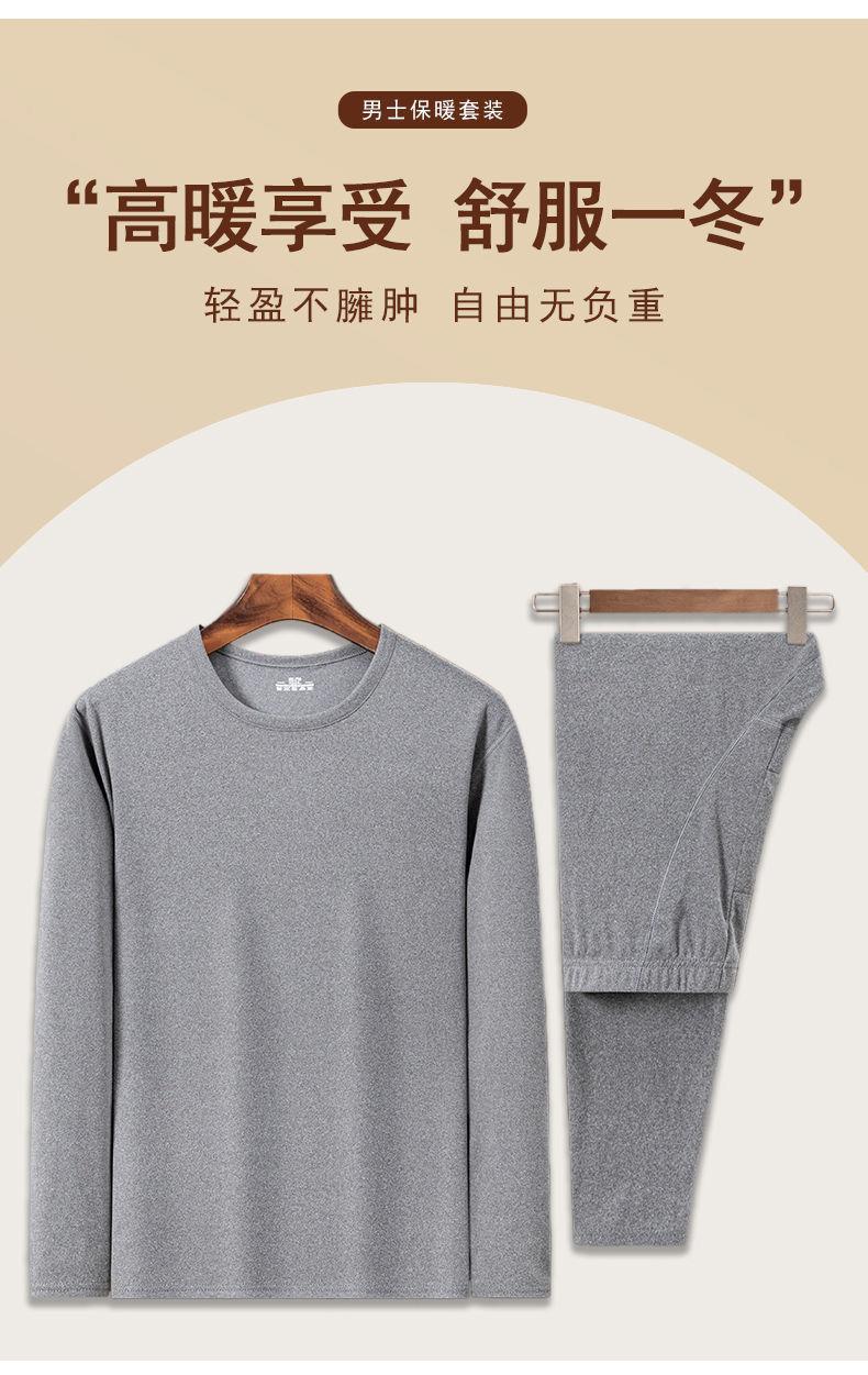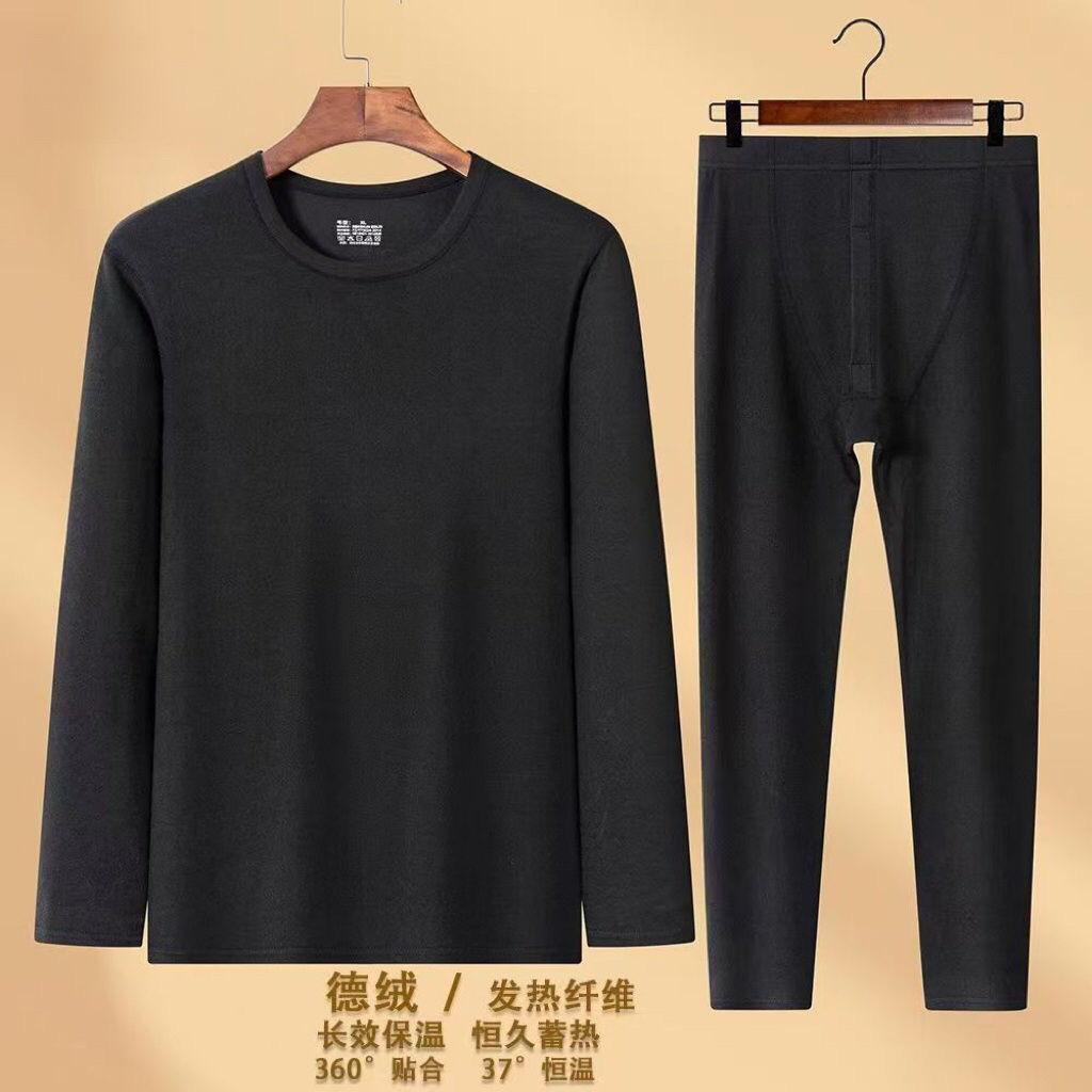 Invierno Nuevo Traje de Ropa Interior Cálida de Cuello Redondo para Hombre Terciopelo de Doble Cara Autocalentable a Prueba de Frío Ropa Interior Cálida Pantalones de Otoño