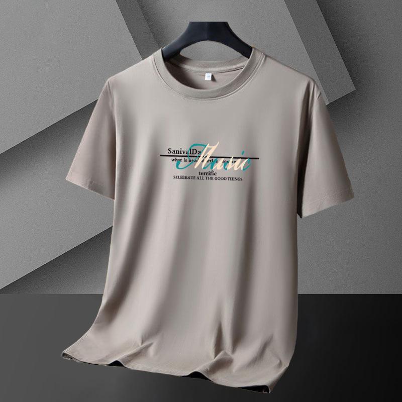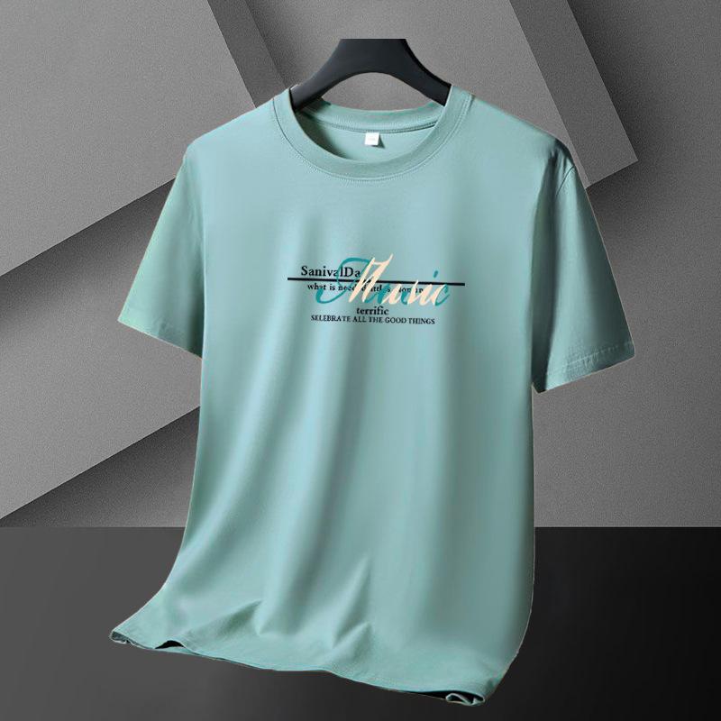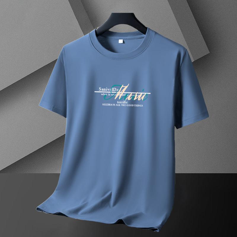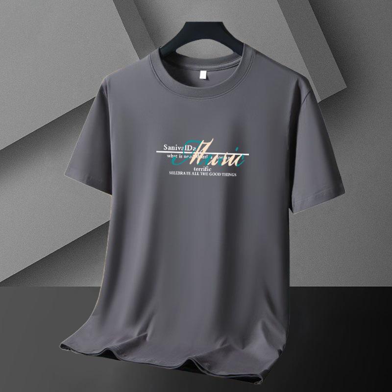 Camiseta de verano de manga corta de seda de hielo para hombre, estampada, con cuello redondo, de secado rápido, transpirable y moderna, de media manga. Camiseta de moda de manga corta.