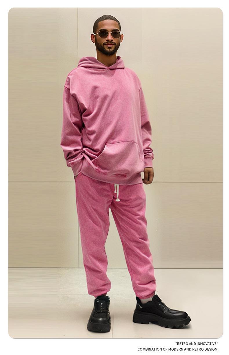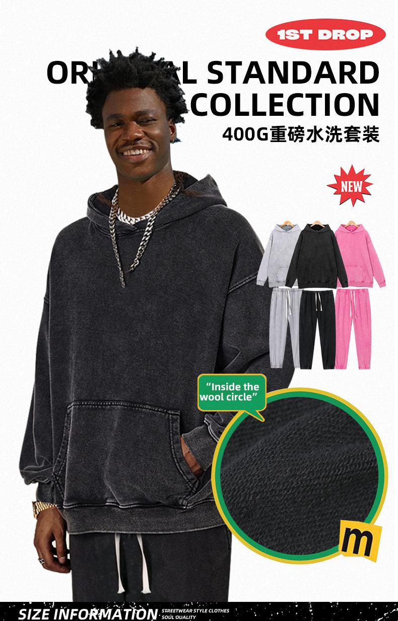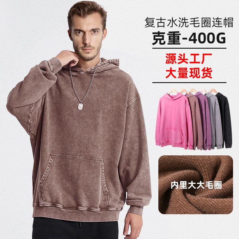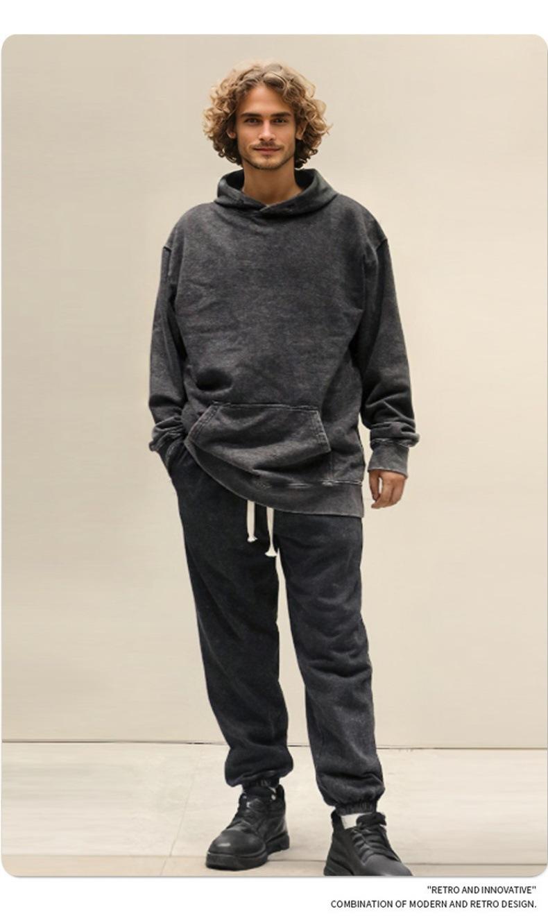 Sudadera Vintage Lavada Transfronteriza para Hombre Set de Sudadera con Capucha con Cierre Marca de Moda Vintage Comercio Exterior Sudadera Holgada