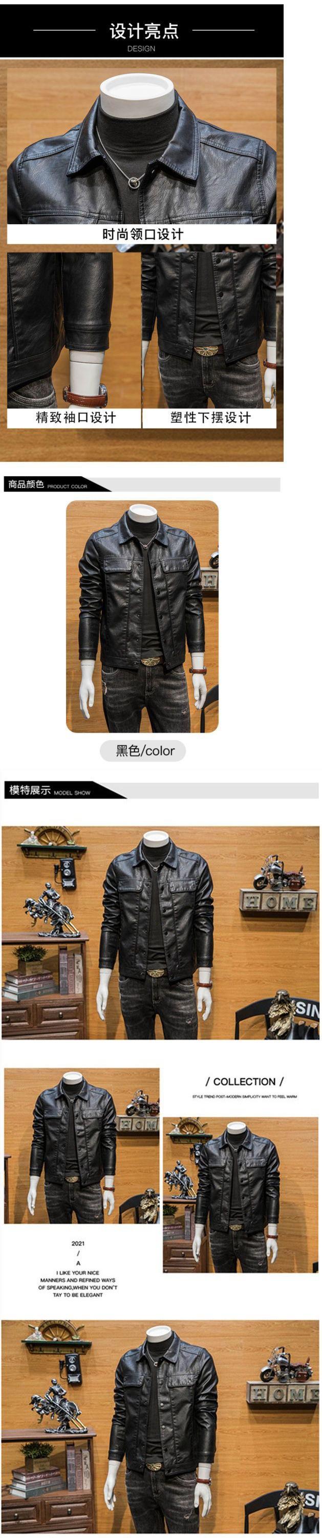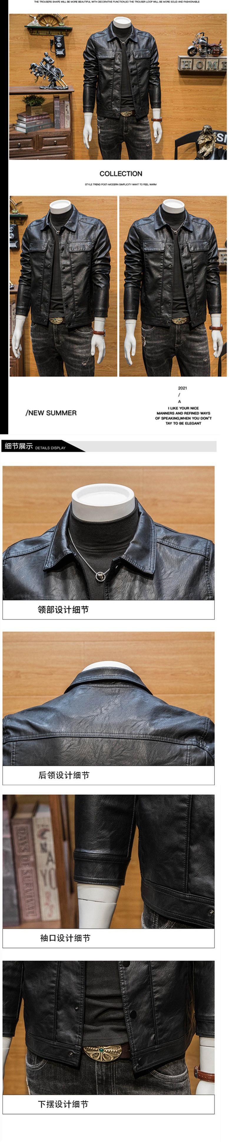 Chaqueta de Cuero para Hombre Primavera y Otoño Nueva Moderna Corta Casual pu Cuello Alto Chaqueta de Cuero Abrigo