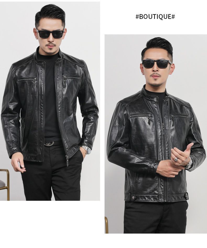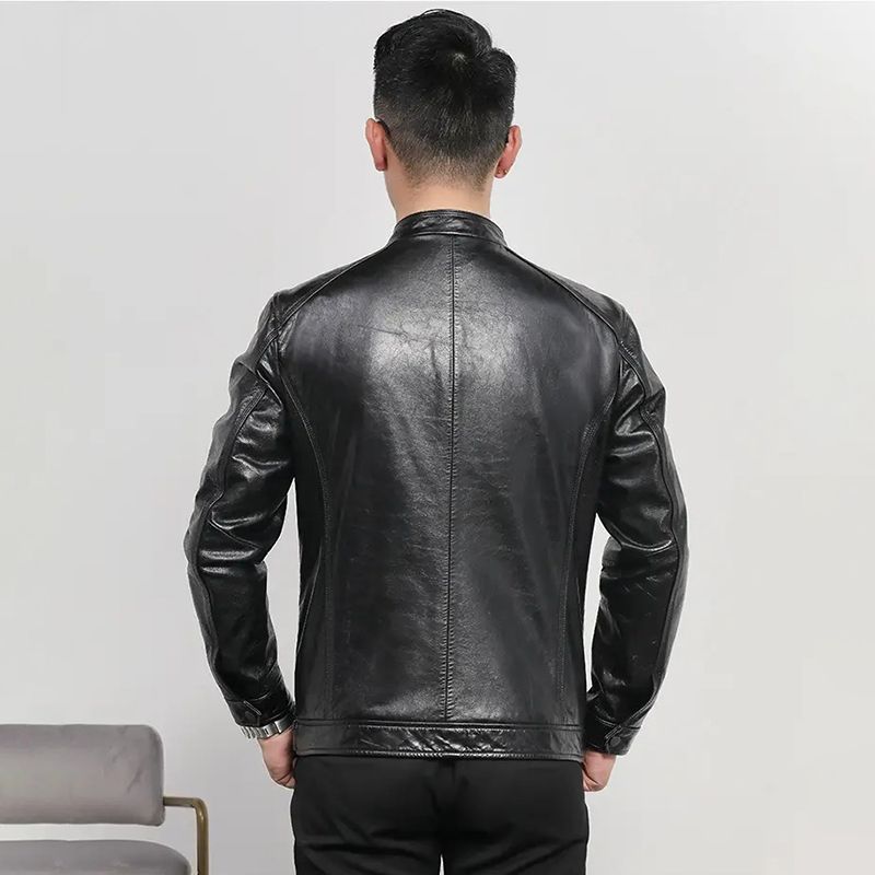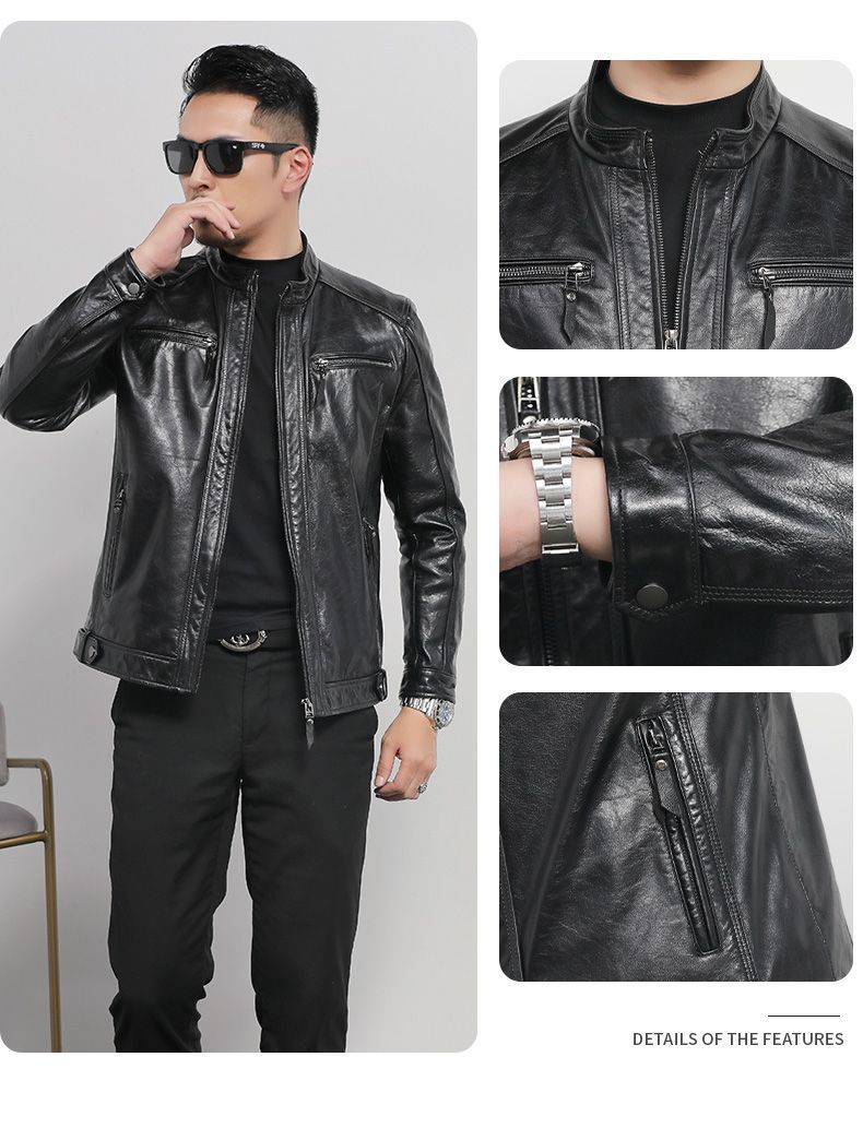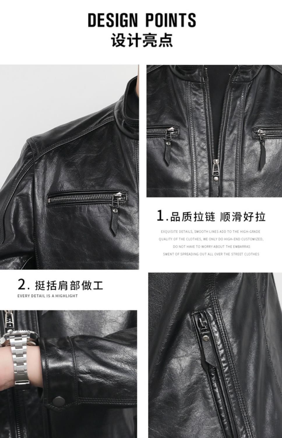 Chaqueta de Cuero Genuino Nuevo Haining para Hombre Primavera y Otoño 2025 Piel de Vacuno de Primera Capa Business Casual Slim Chaqueta de Cuero para Personas Jóvenes y de Mediana Edad