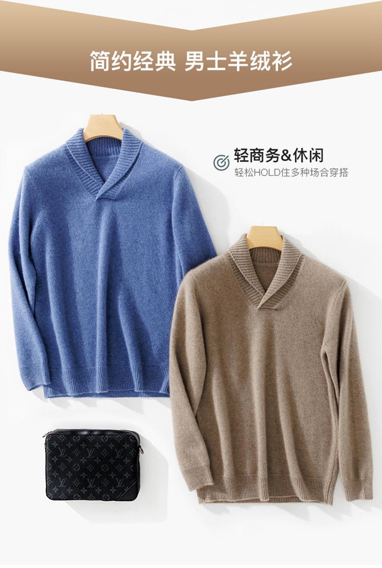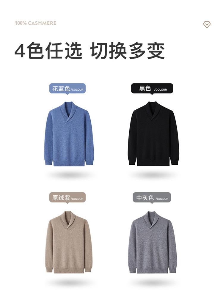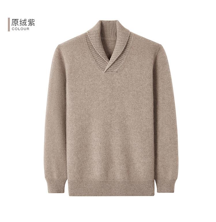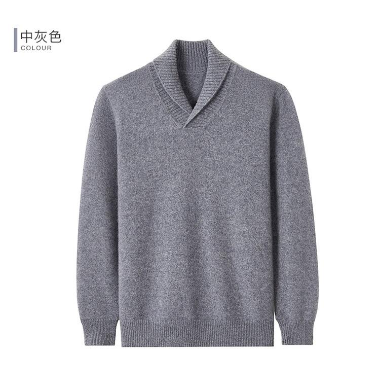 Otoño e Invierno 2022 Nueva Llegada Cuello Chal Color Sólido Suéter Grueso para Hombre Holgado Casual Tejido Base Manga Larga Cachemira Pura