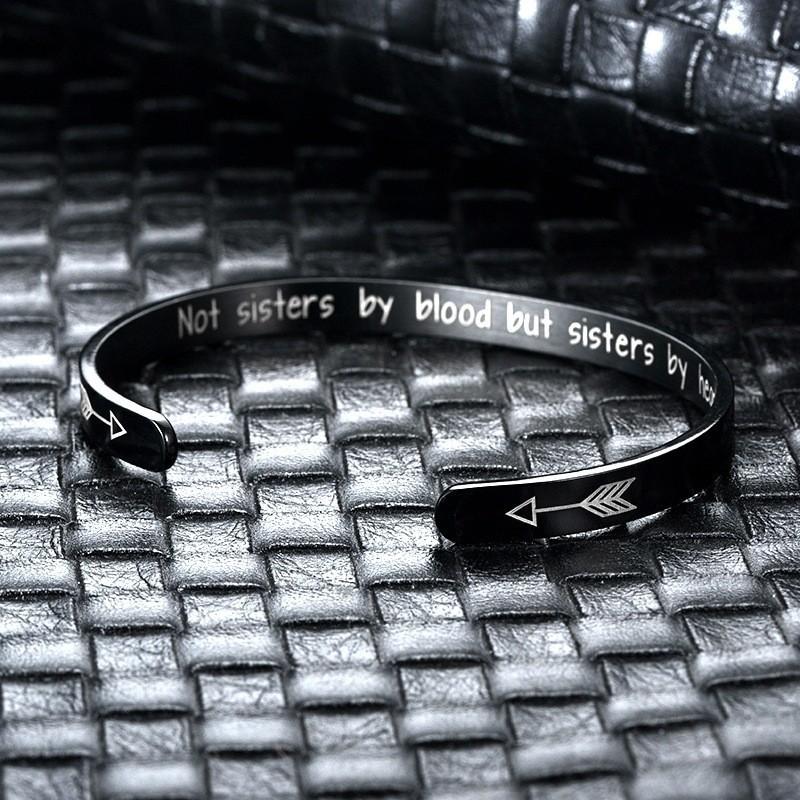 No de sangre sino hermanas de corazón pulsera de acero de titanio acero inoxidable pulsera abierta con letras en forma de C