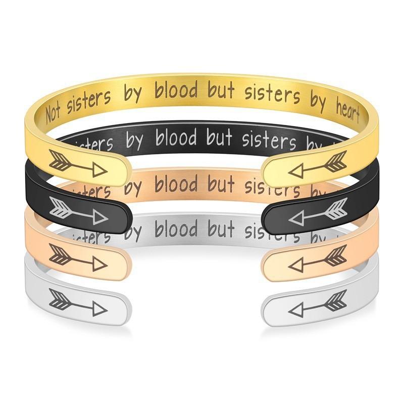 Compra No de sangre sino hermanas de corazón pulsera de acero de titanio acero inoxidable pulsera abierta con letras en forma de C al por mayor en Joom.pro