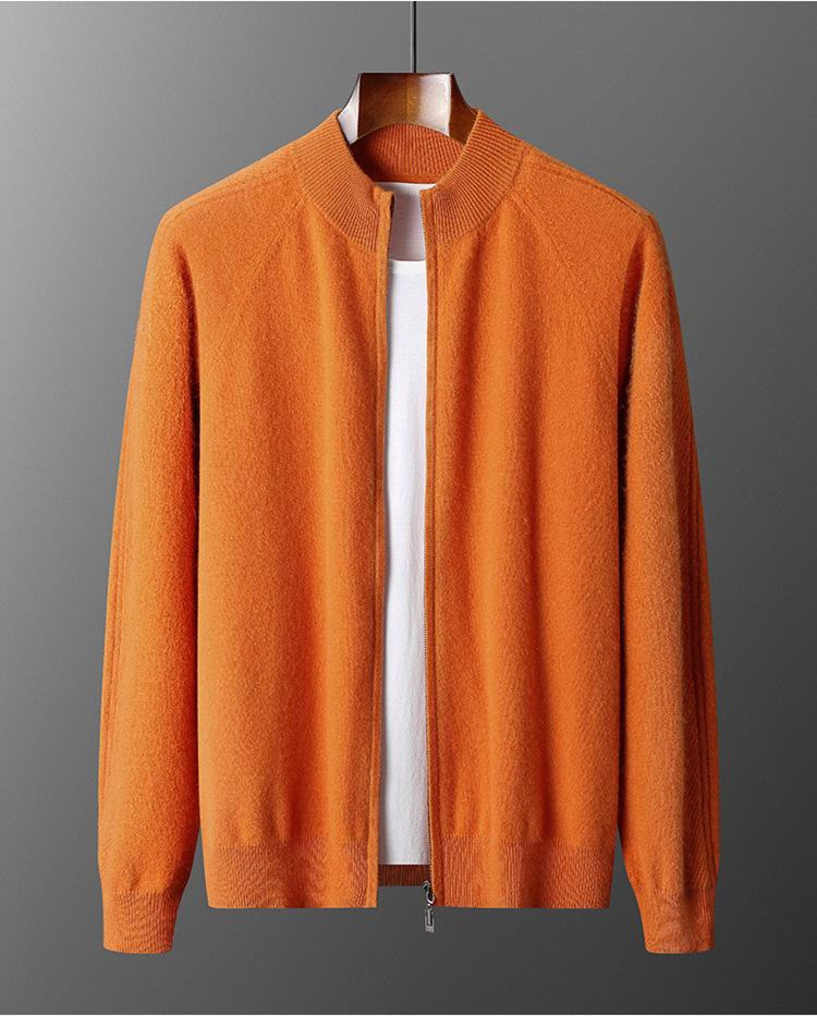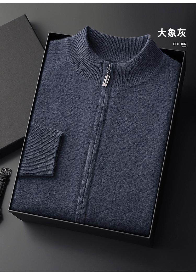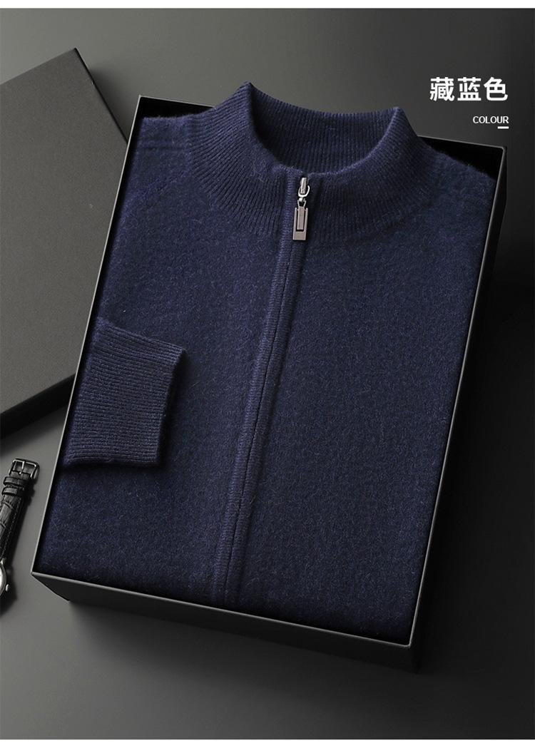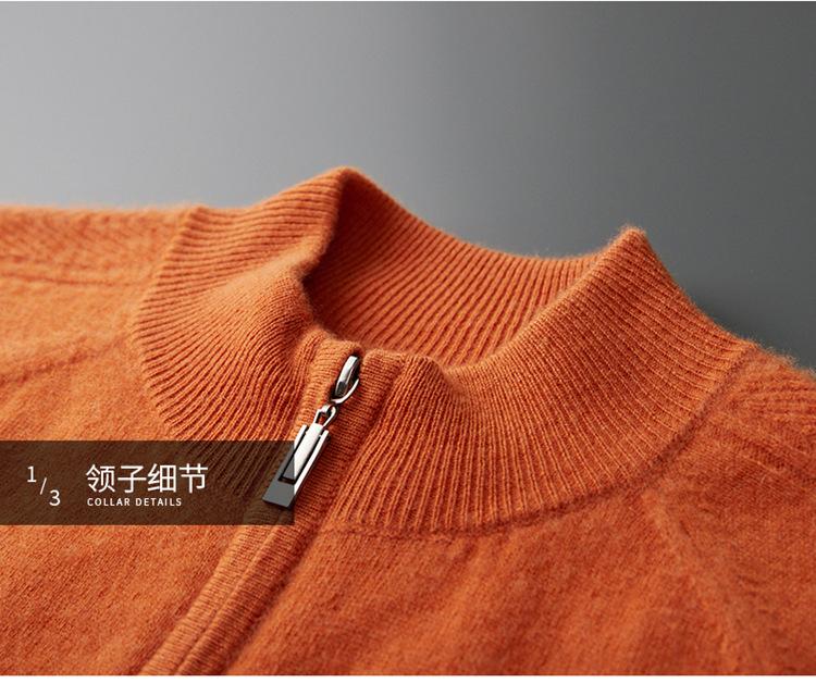 Nuevo Cárdigan Grueso de Cachemira para Hombre Cuello Medio Alto Cierre de Cremallera Suéter Tejido Cálido Holgado Casual Chaqueta Base