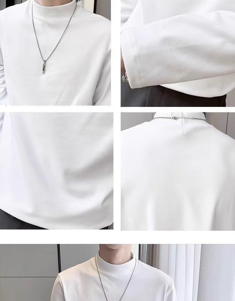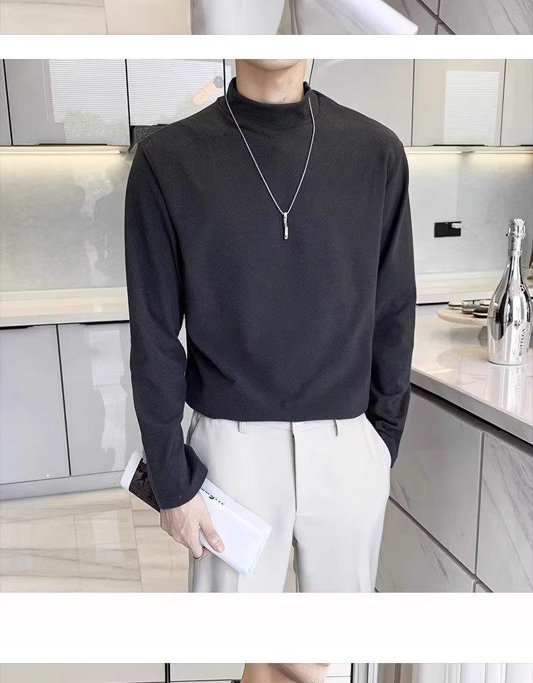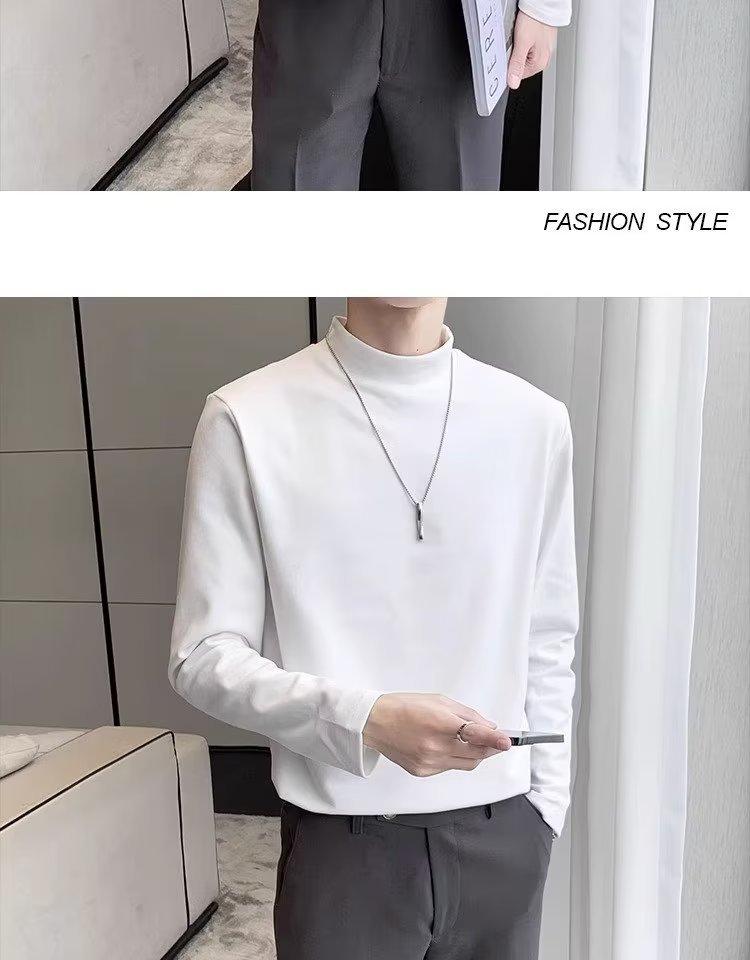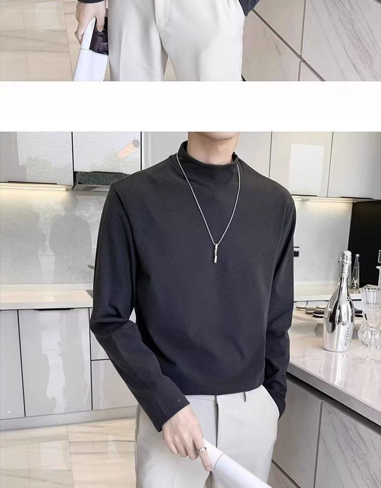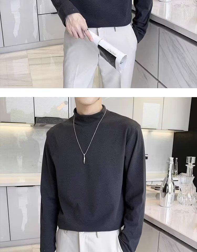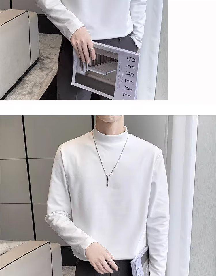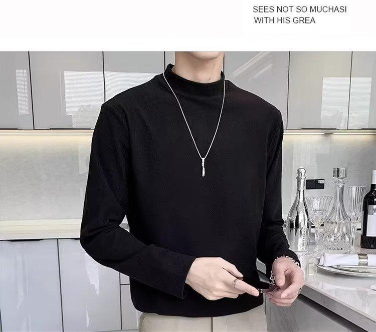 Camisa de terciopelo de doble cara con cuello alto medio para hombre, ropa interior cálida de otoño e invierno, camiseta de otoño, camiseta de hombre de terciopelo cepillado de manga larga