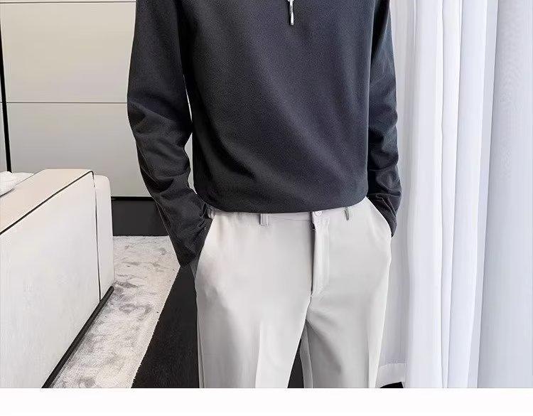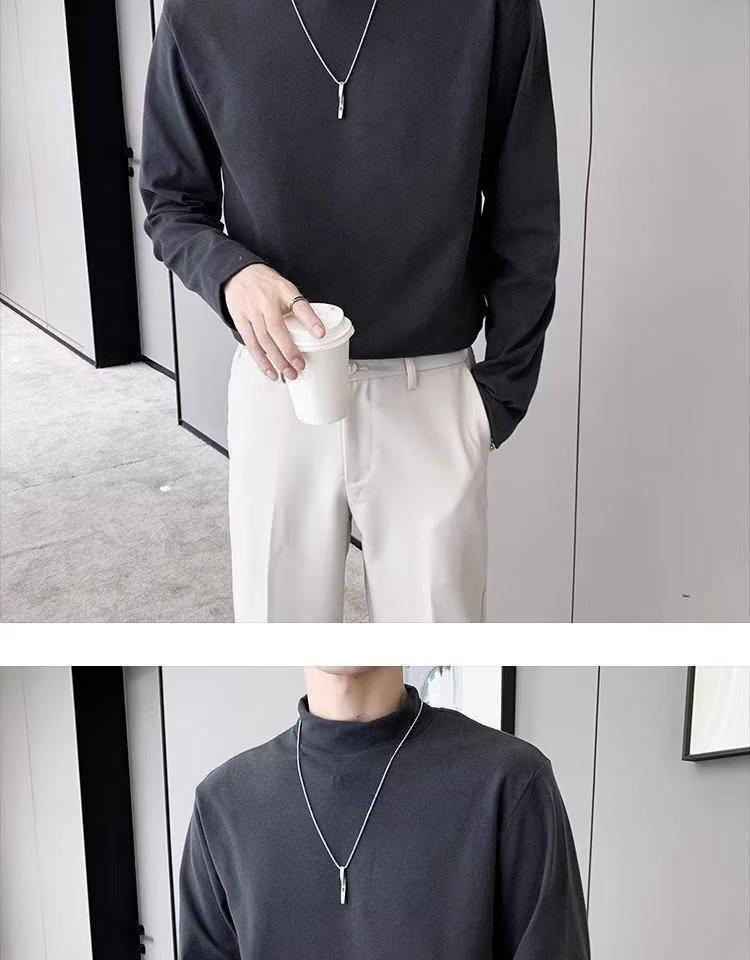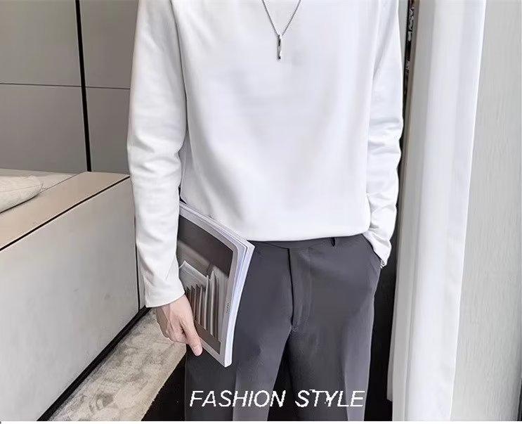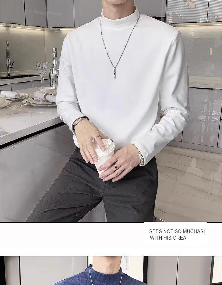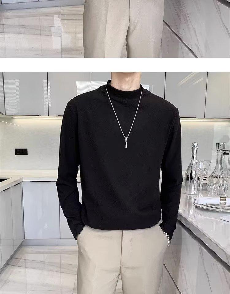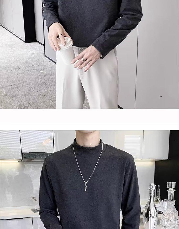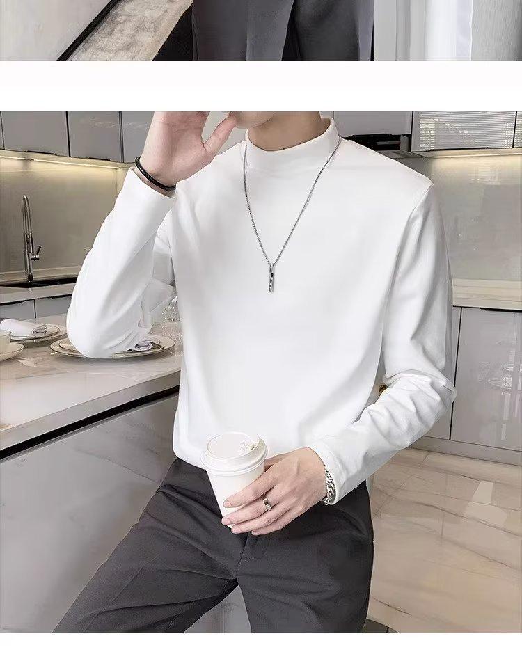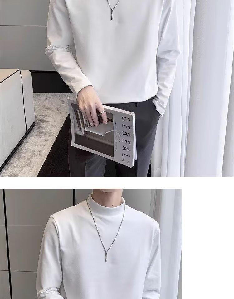 Camisa de terciopelo de doble cara con cuello alto medio para hombre, ropa interior cálida de otoño e invierno, camiseta de otoño, camiseta de hombre de terciopelo cepillado de manga larga