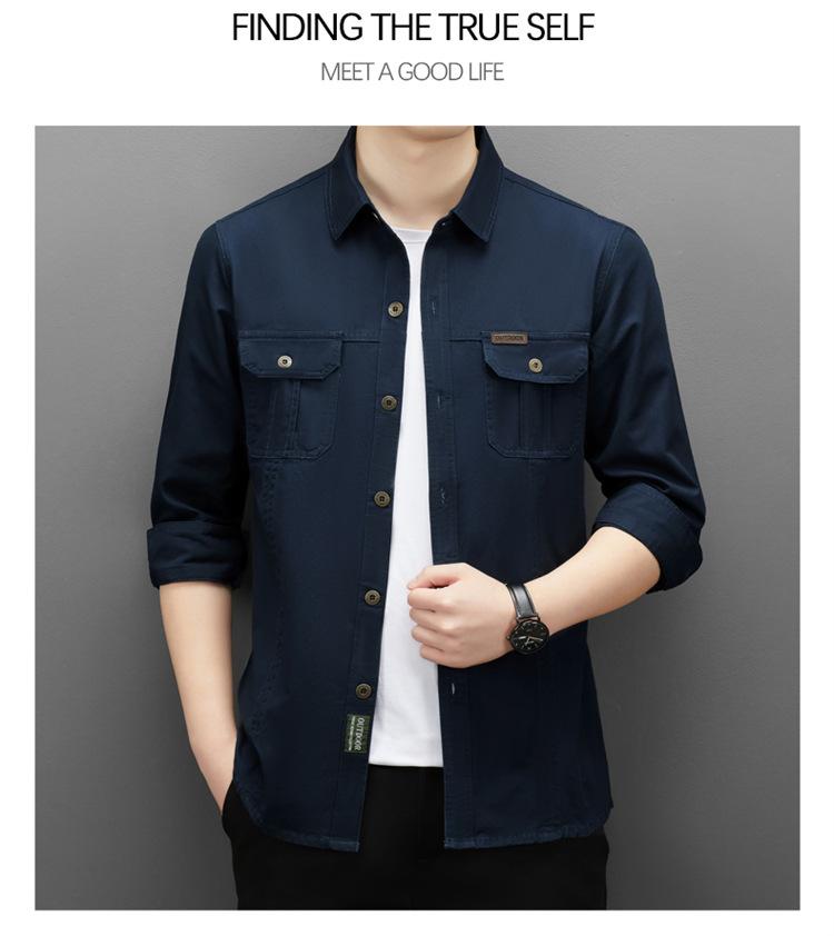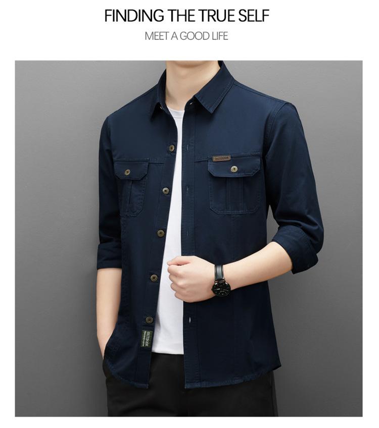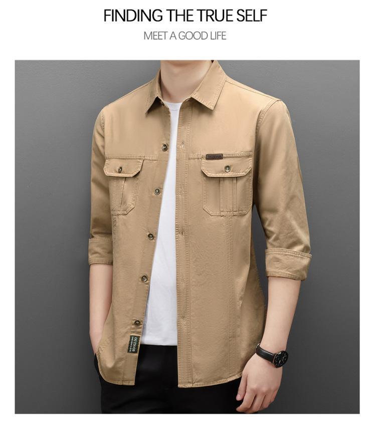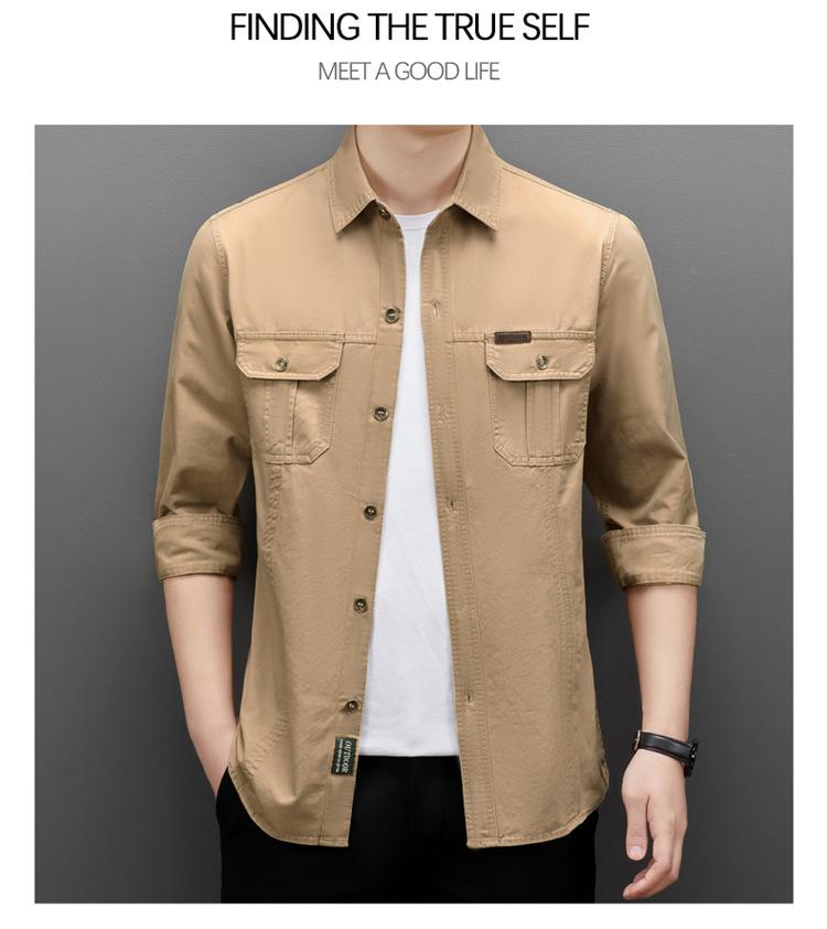 Camisa de trabajo de estilo americano, de manga larga, chaqueta multibolsillos para hombre, informal, de primavera y otoño, nueva camisa de algodón puro, ropa holgada para hombre