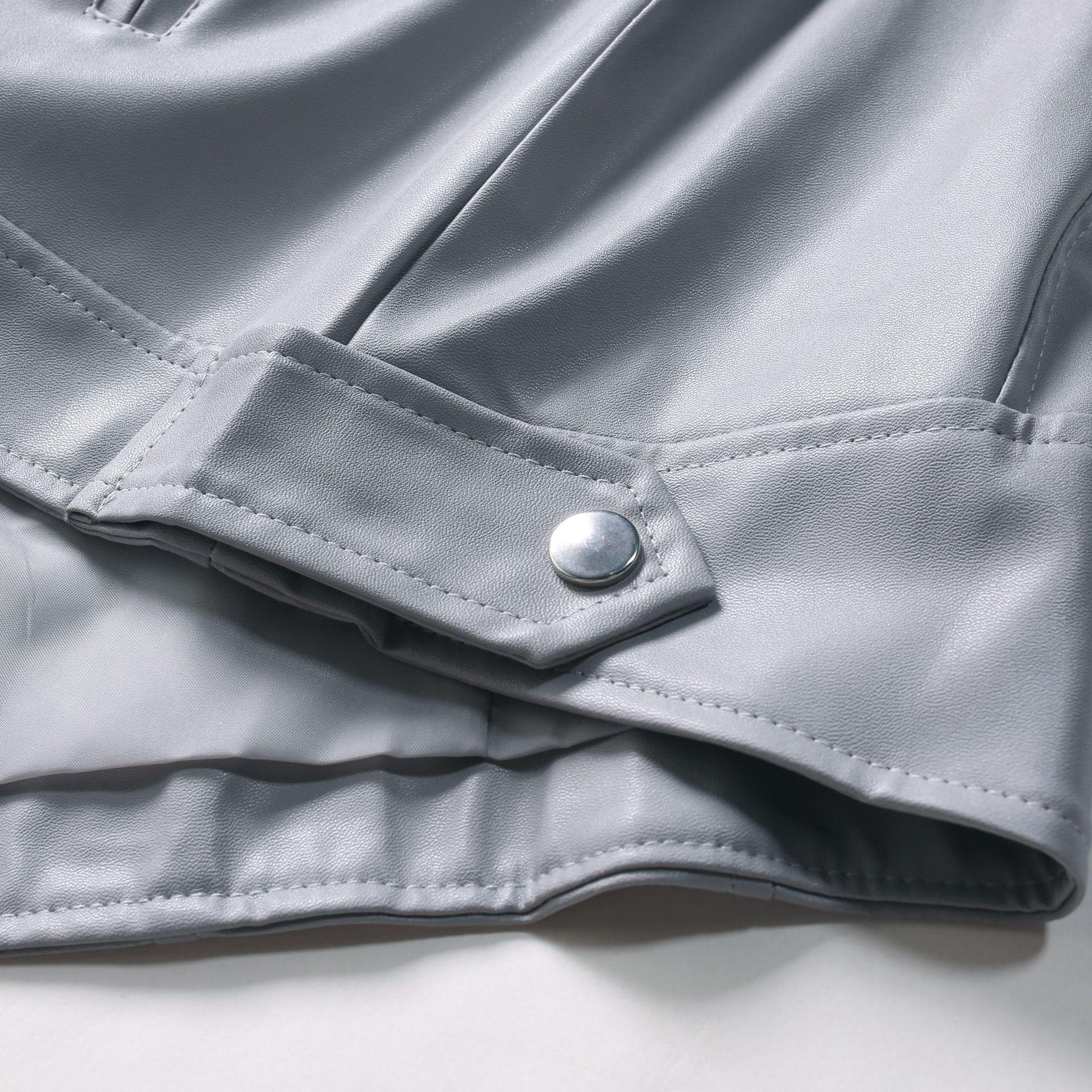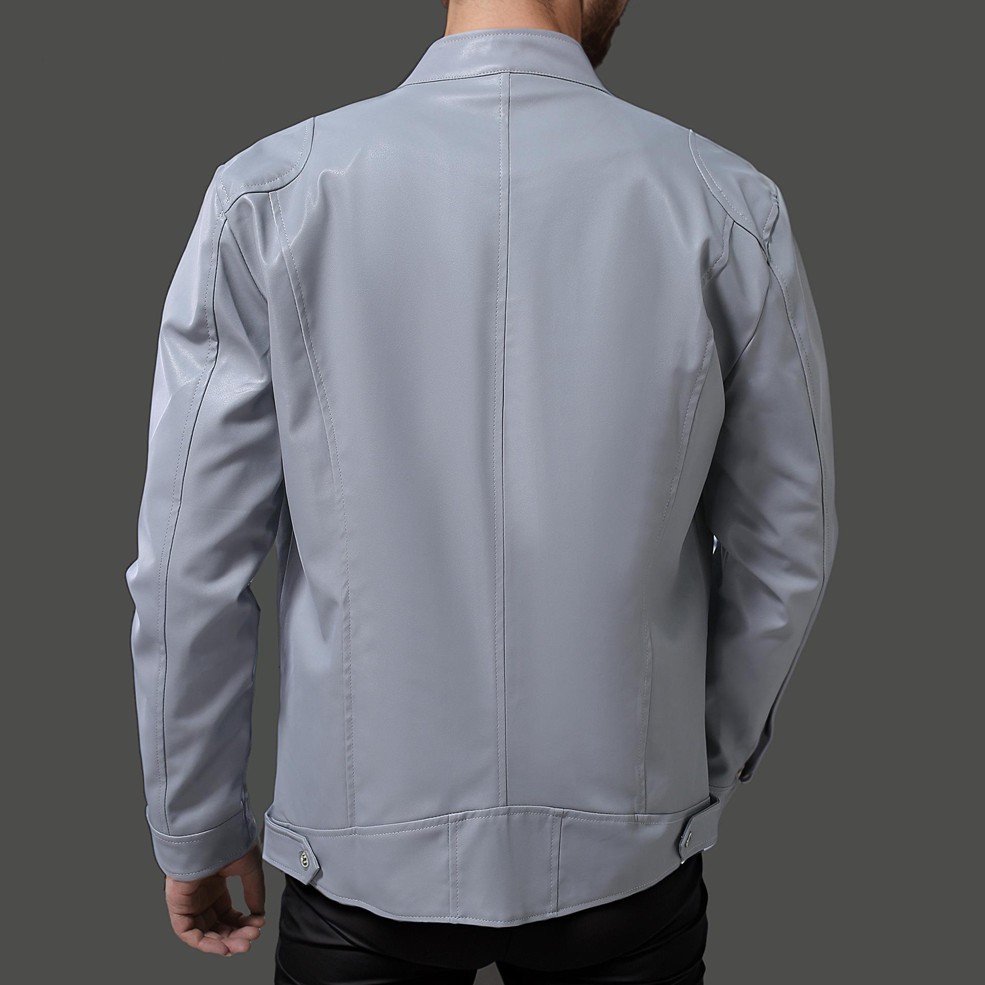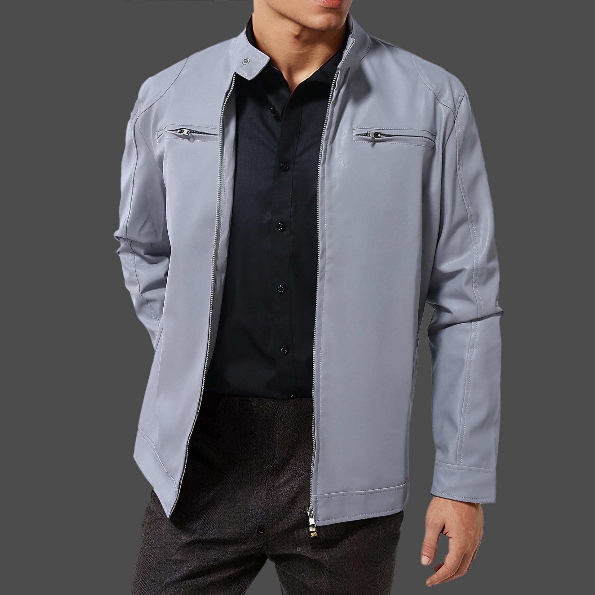Comercio Exterior Invierno Caballero de Negocios Cálido Cárdigan con Cremallera Bolsillo Decorado Ropa de Cuero PU Cuello Alto Ajustado Chaqueta de Cuero Abrigo