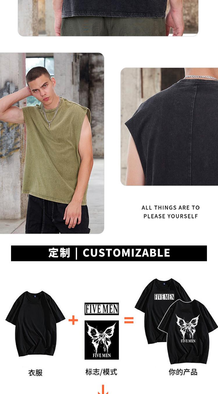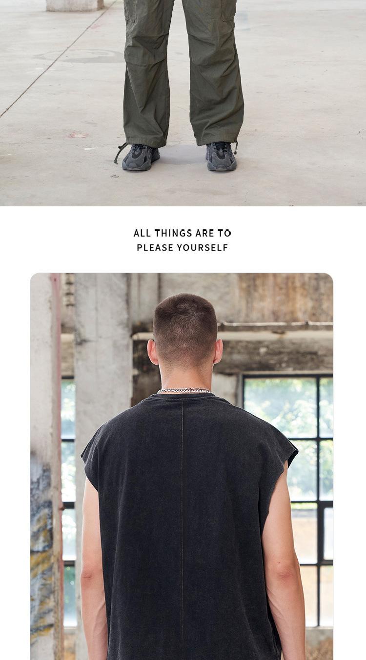 Ropa de Hombre Etai | Camiseta de Marca Trendy Americana Retro Holgada sin Mangas Primavera y Verano Nueva Lavada Algodón Puro Holgada Borde Deshilachado Chaleco para Hombre