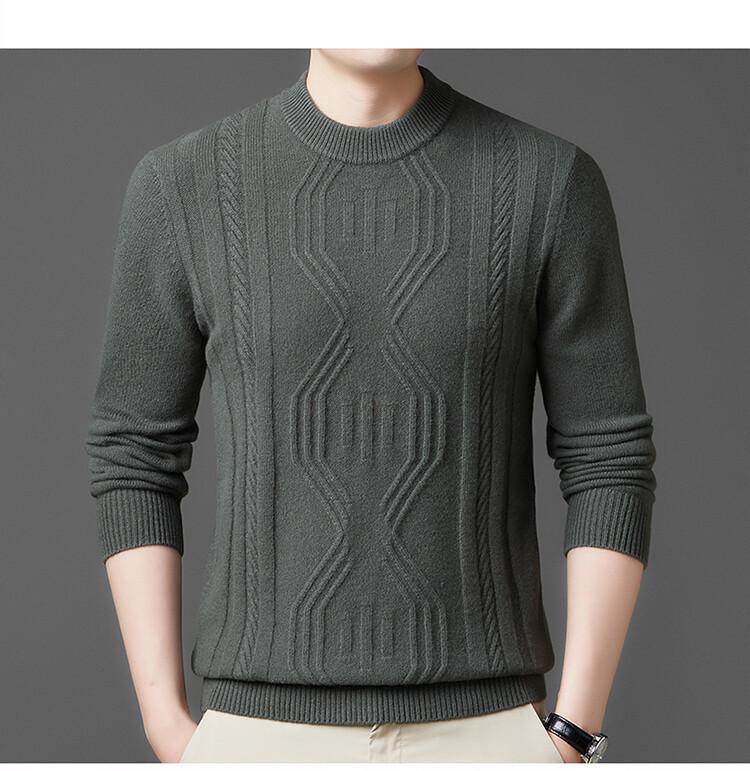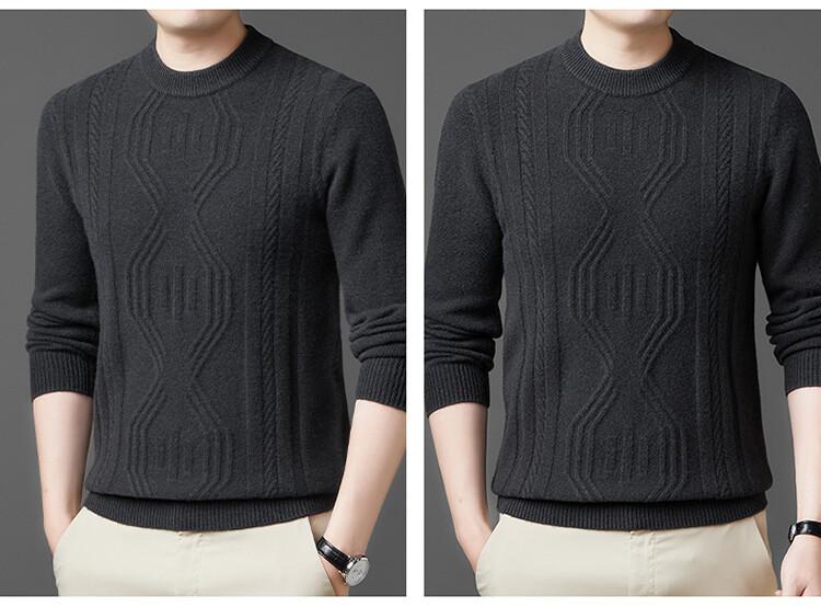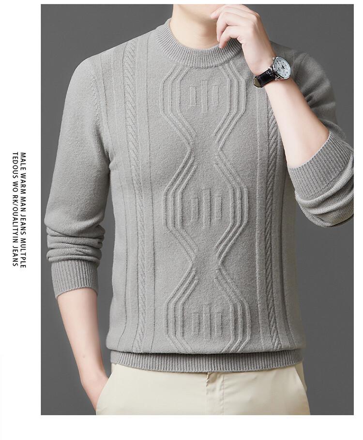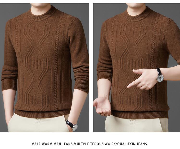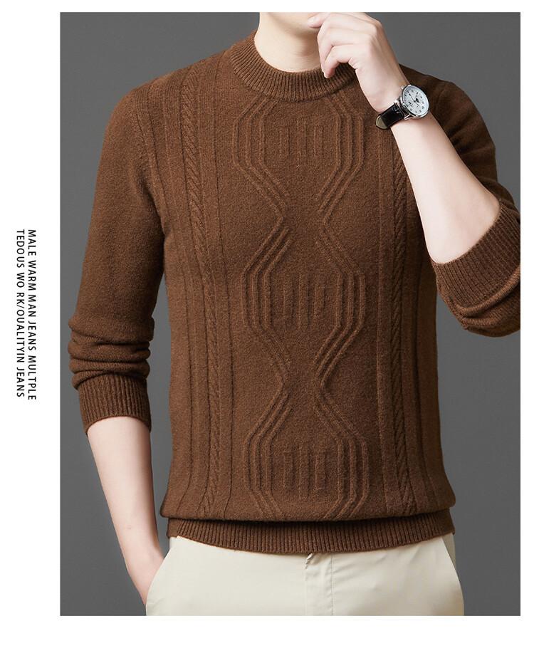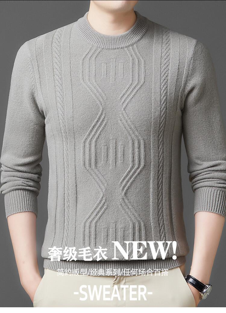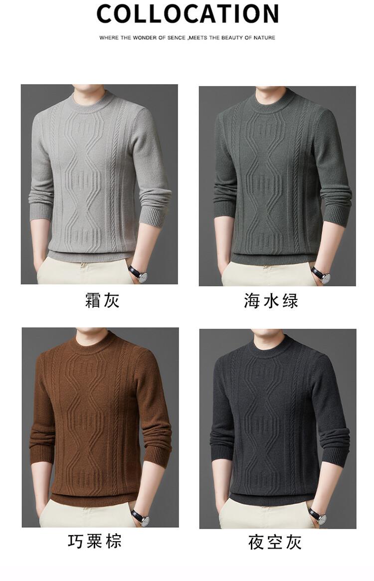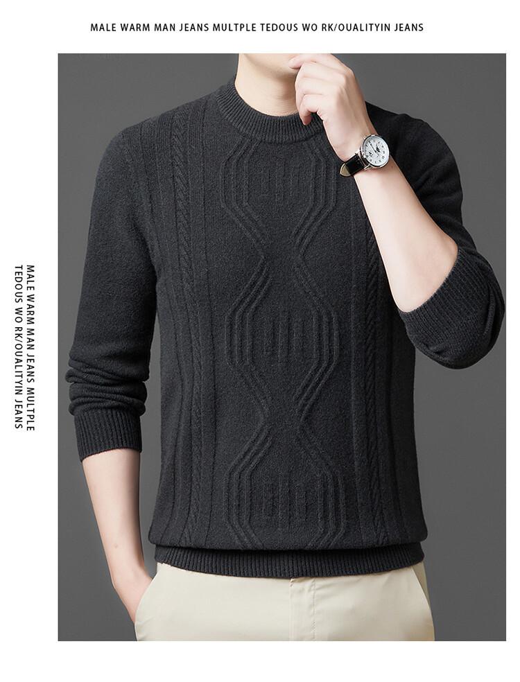 Suéter de Invierno 2024 de Lana Pura 100% para Hombre, Cuello Medio Alto, Grosor 400g, Suéter de Lana Holgado, Suéter Básico de Punto para Mediana Edad