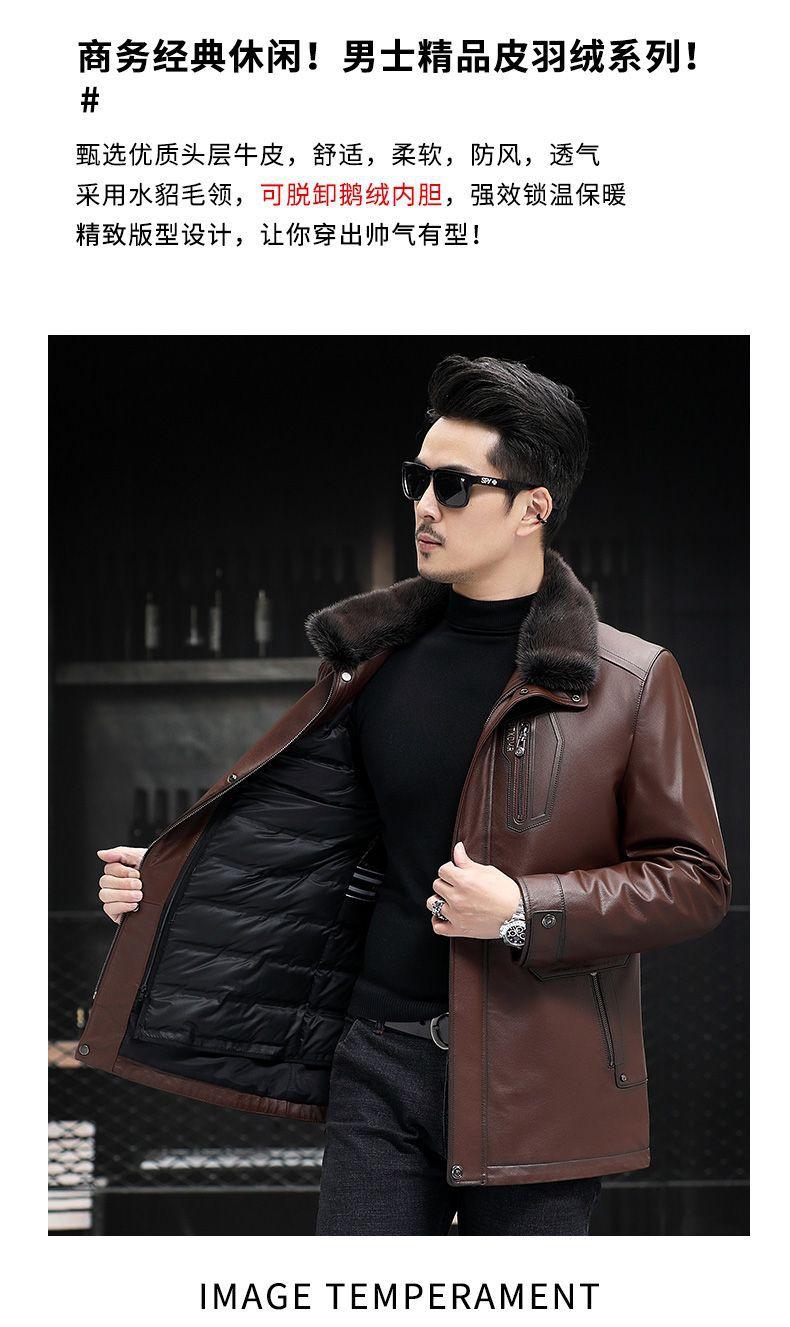 Compra Chaqueta Nueva de Cuero Genuino para Hombre Haining Cuero de Becerro de Primera Capa Solapa Chaqueta de Cuero Casual de Largo Medio Invierno Cálido al por mayor en Joom.pro
