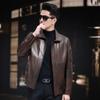 Haining Otoño e Invierno Nuevo Abrigo de Cuero Genuino para Hombre Capa Superior Cuero Vacuno Cera de Aceite Solapa Plumífero Abrigo de Cuero Chaqueta de Cuero para Motocicleta Trendy