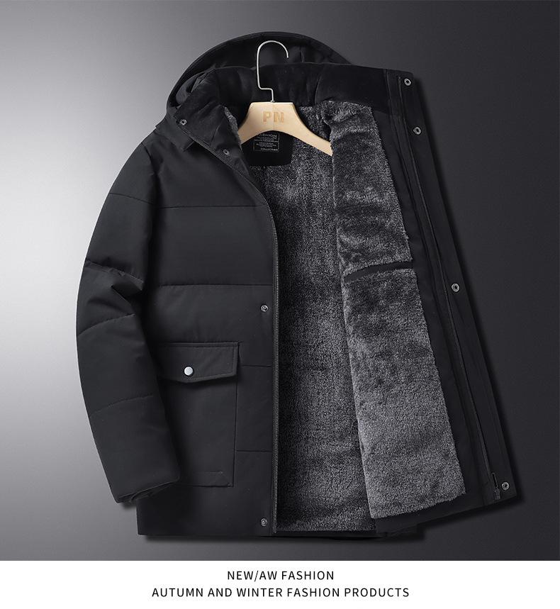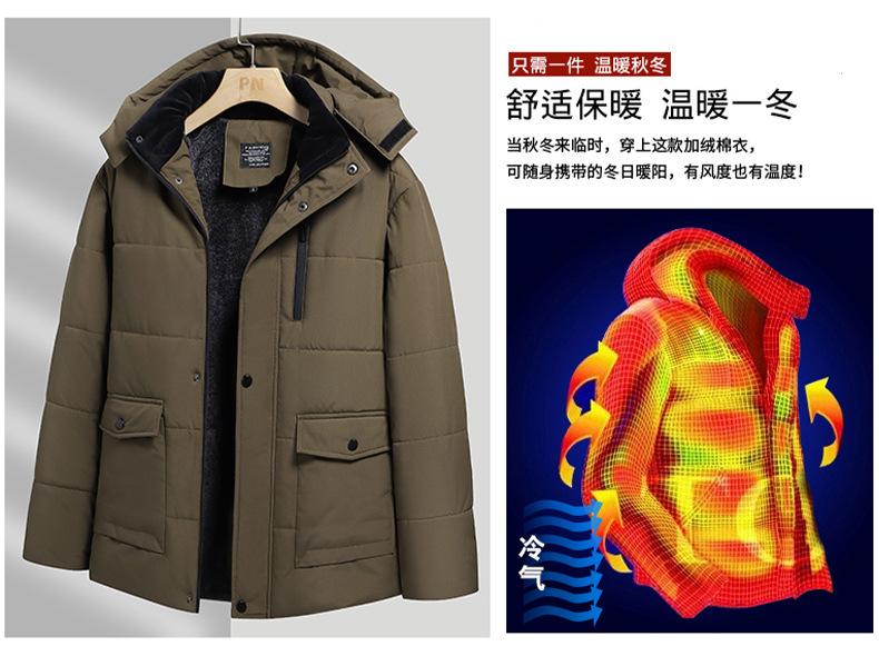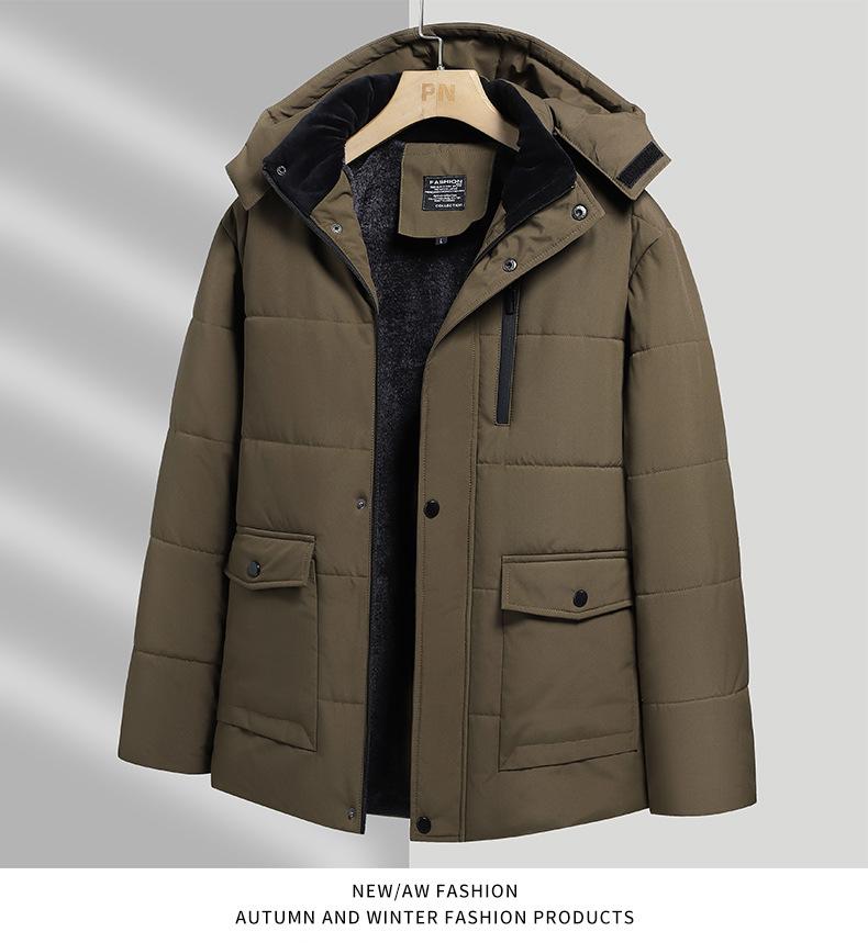 Chaqueta Popular de Invierno Acolchada de Algodón para Hombres de Mediana Edad y Mayores, Abrigo Cálido con Capucha Grueso y Forrado de Felpa, Ropa de Papá a la Moda