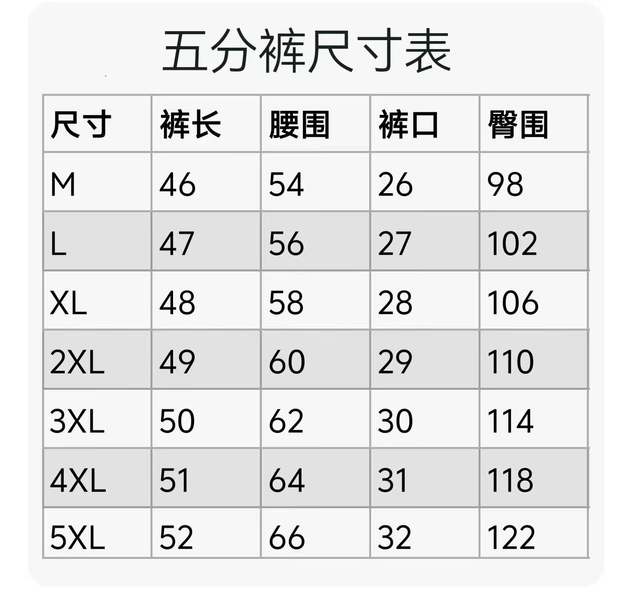M, L, XL, 2XL, 3XL, 4XL, 5XL