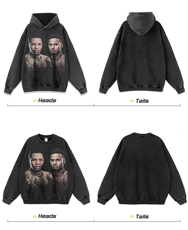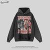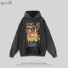 Suéter con capucha estilo americano vintage con estampado vintage, lavado pesado, hecho a agua, para hombres y mujeres, moda callejera nacional, sudadera con capucha de manga larga