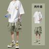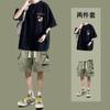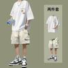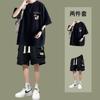 Traje de manga corta para hombre, marca de moda de verano, ropa informal holgada para hombre con pantalones cortos de trabajo, camiseta elegante, ropa, un conjunto