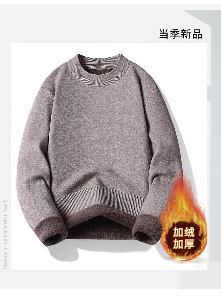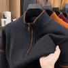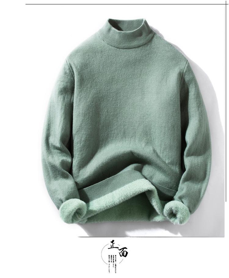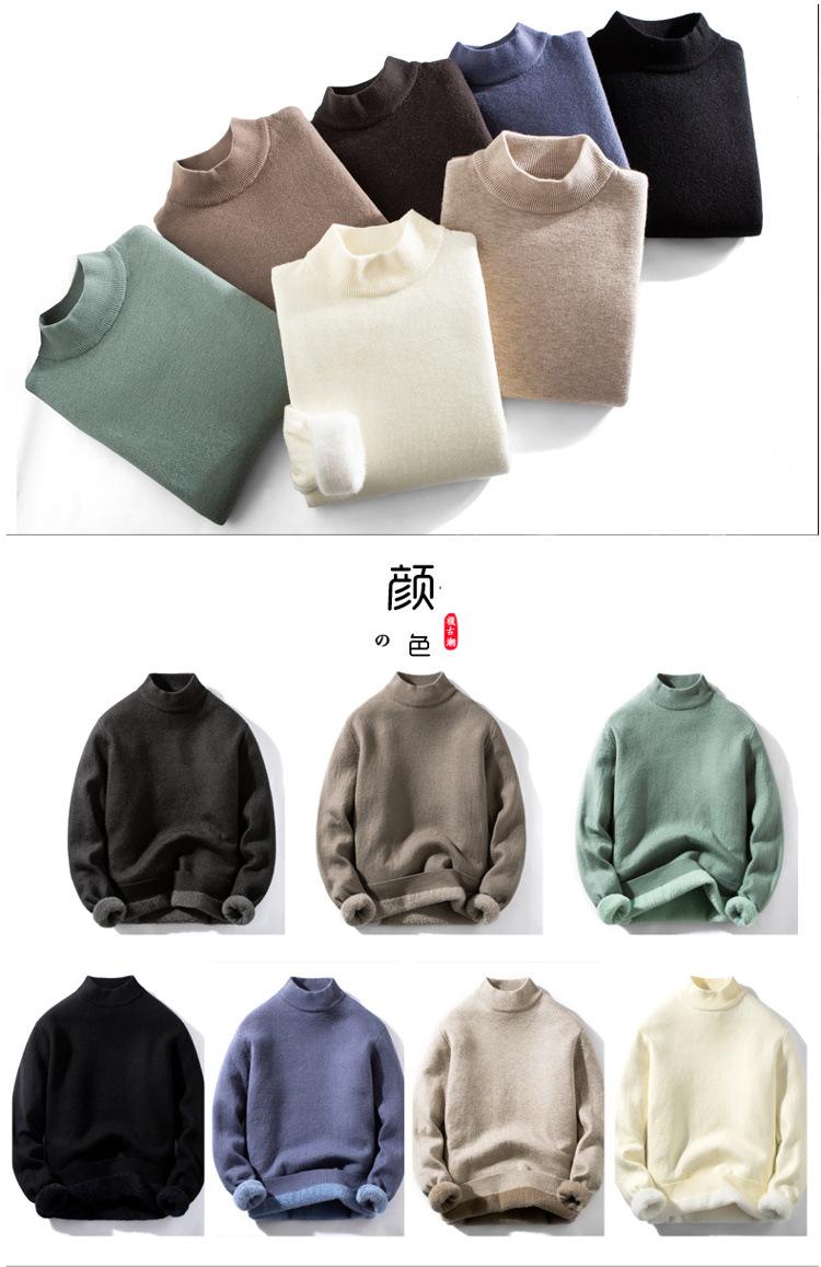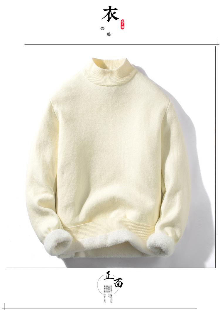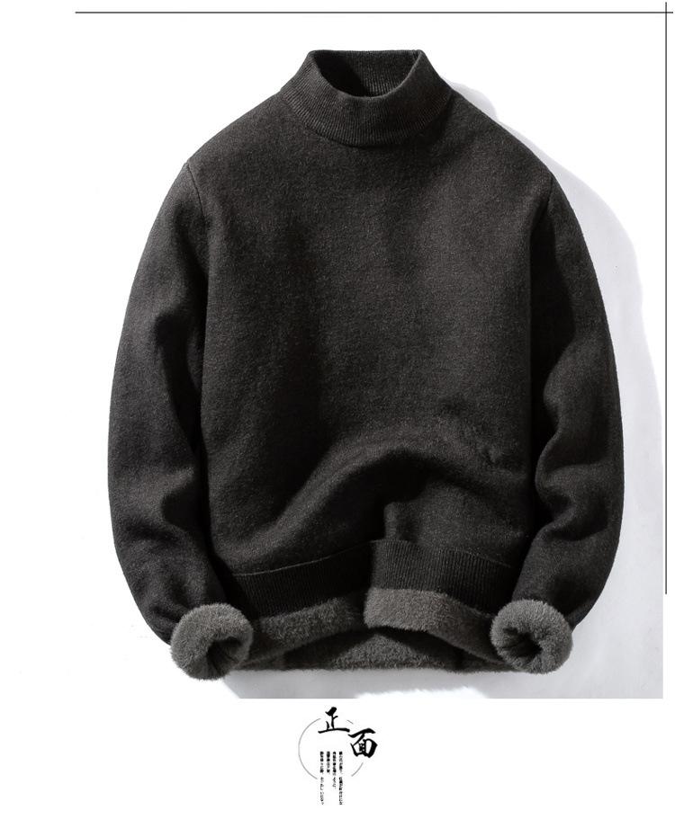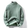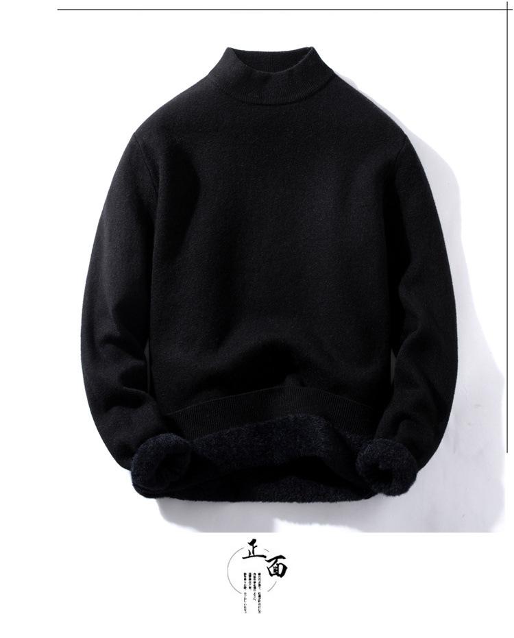 Suéter nuevo para hombre con forro polar, cuello medio alto grueso, suéter ajustado de una pieza con base de terciopelo para otoño e invierno, tendencia de suéter.