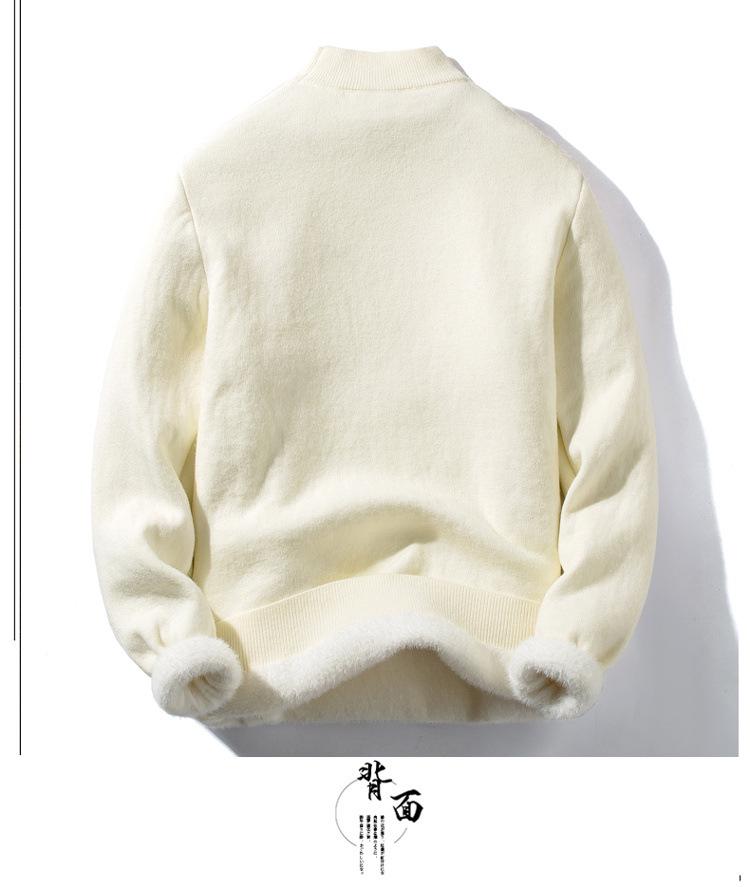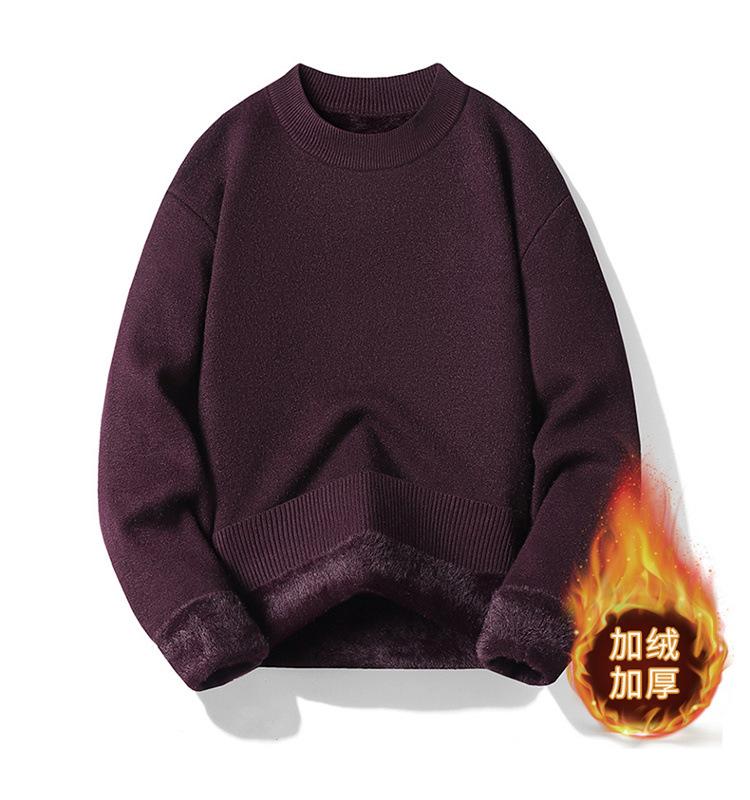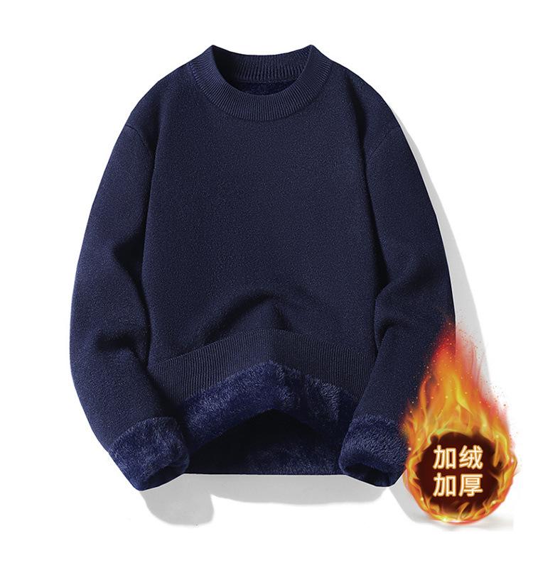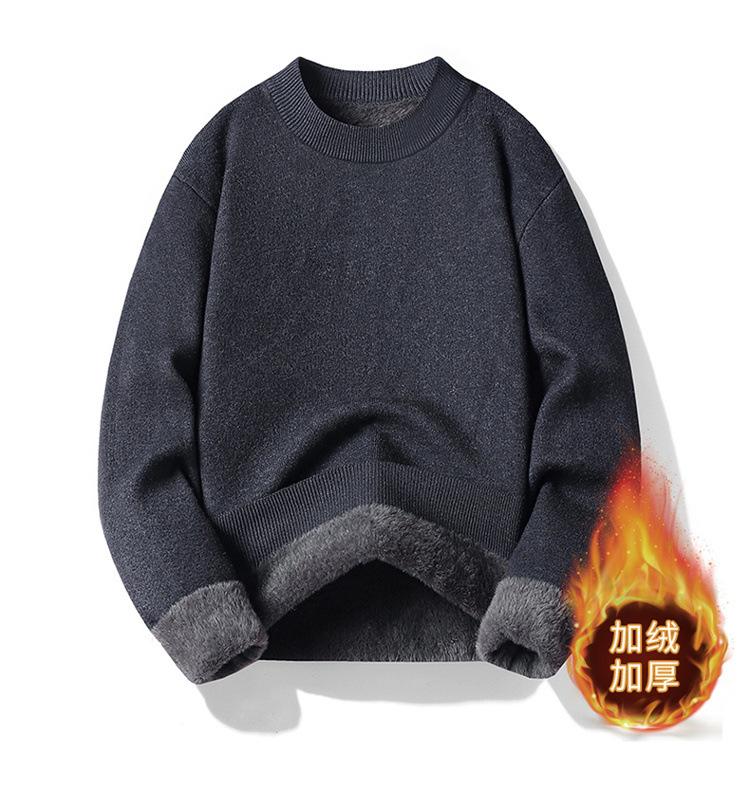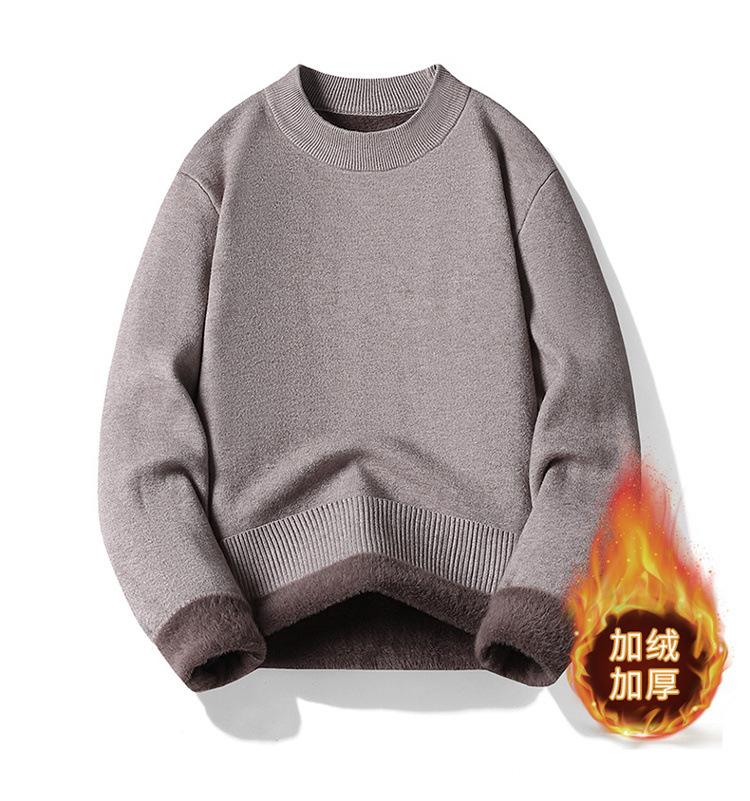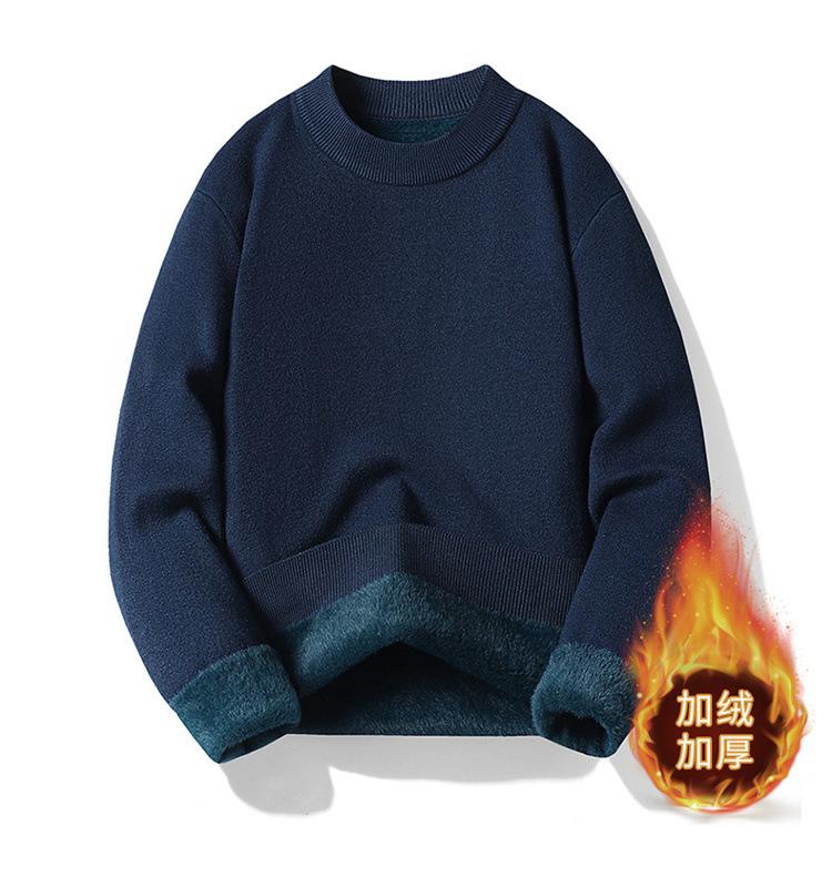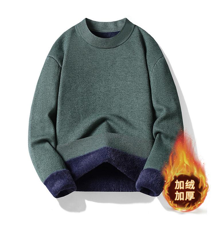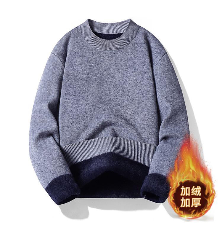 Suéter nuevo para hombre con forro polar, cuello medio alto grueso, suéter ajustado de una pieza con base de terciopelo para otoño e invierno, tendencia de suéter.