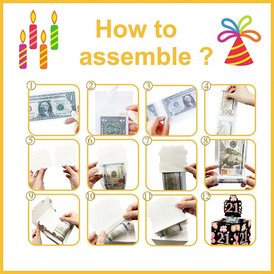 Serie de Decoración para Fiesta Temática de Edad con Número de Cumpleaños Listo para Usar Caja de Dinero Sorpresa con Efectivo Montaje de Ambiente