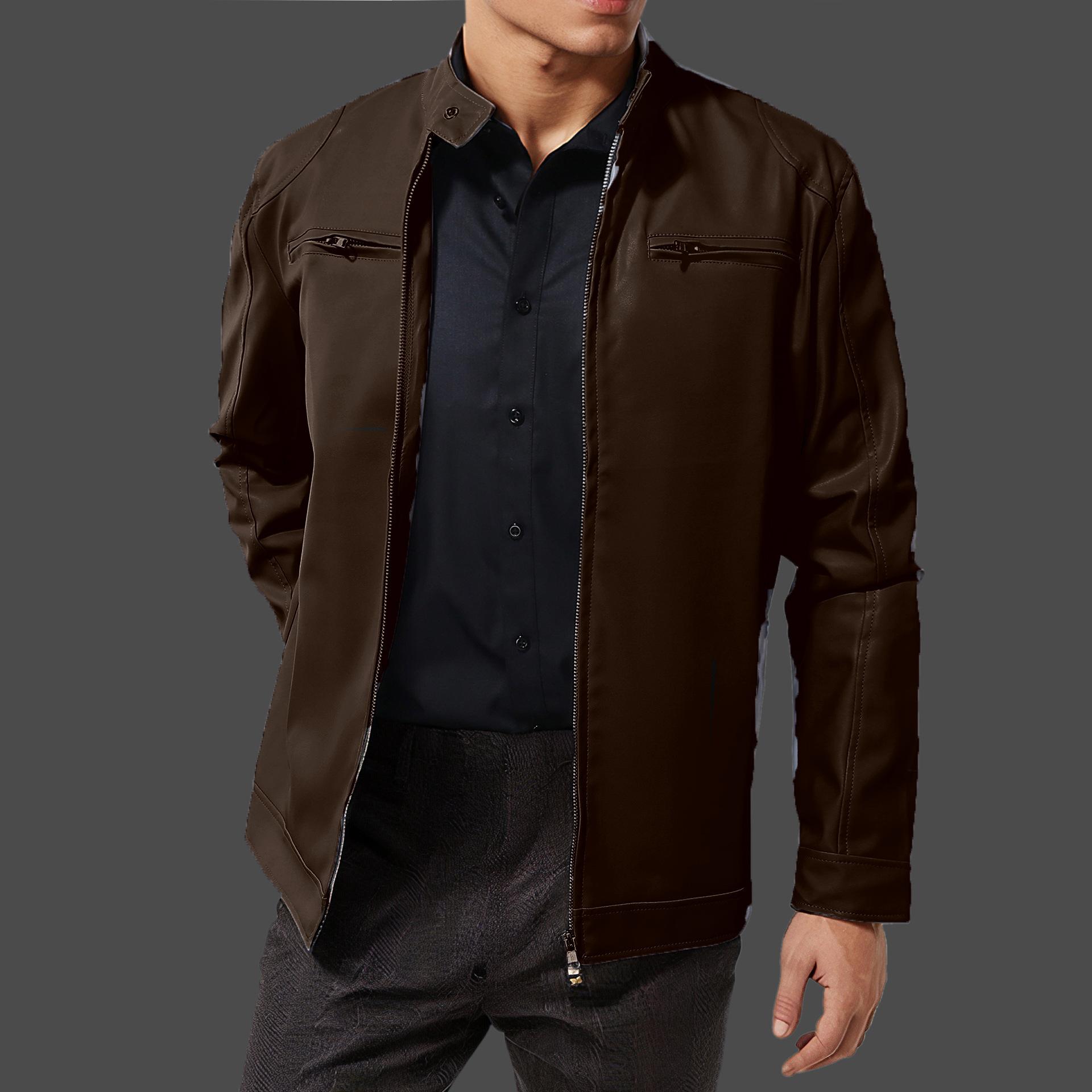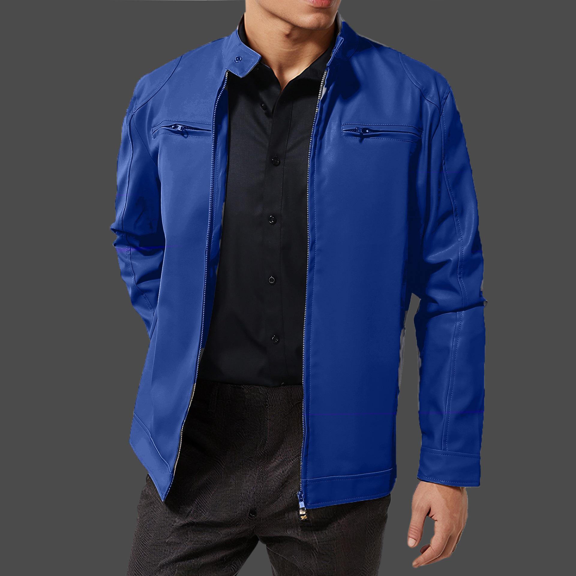 Chaqueta de cuero sintético con cuello alto para hombre, nueva chaqueta de motociclista europea y americana, de otoño, ligera, para negocios y ocio.