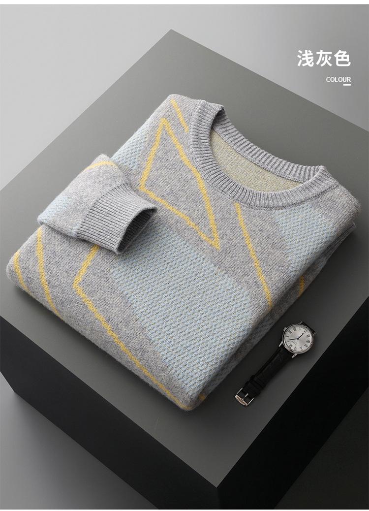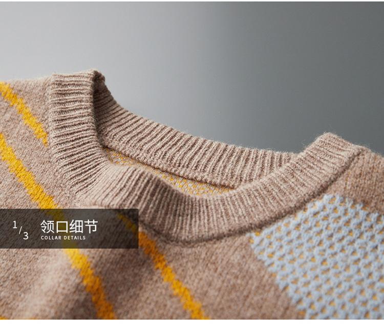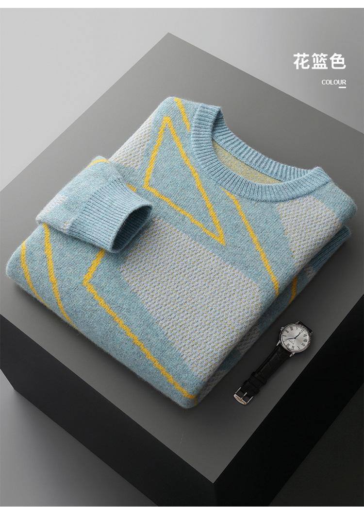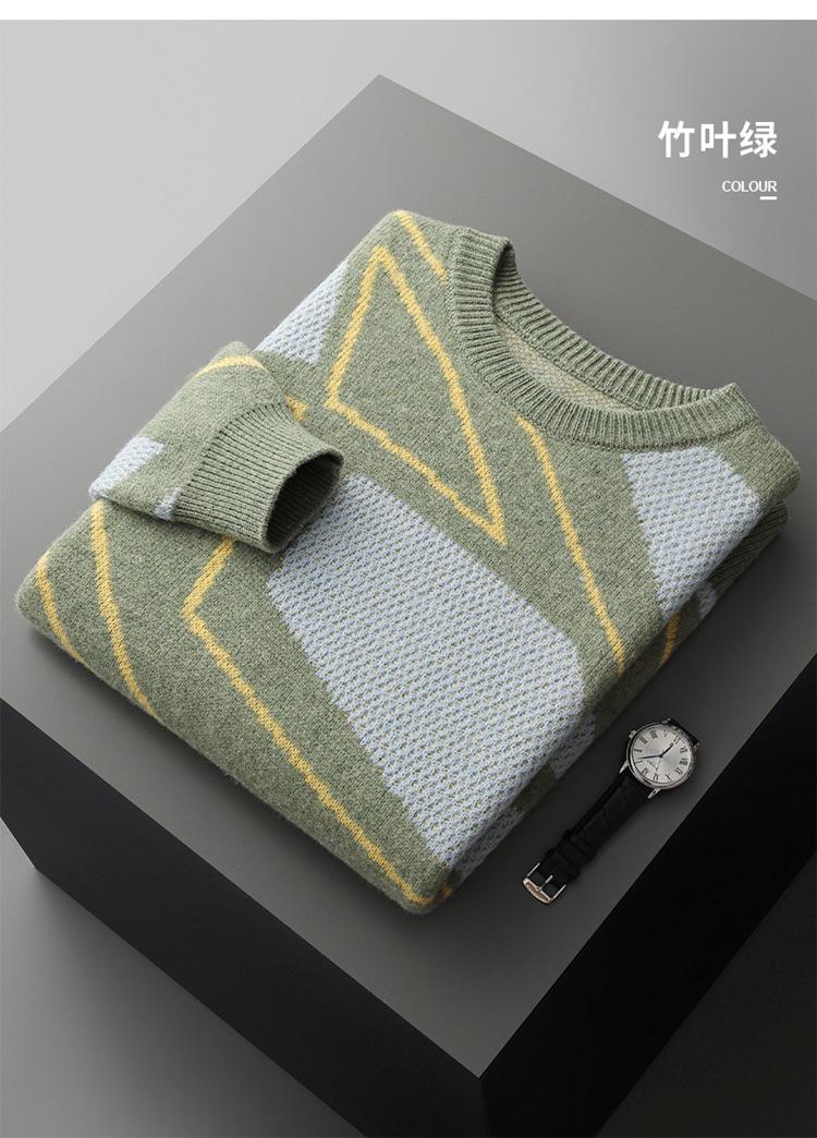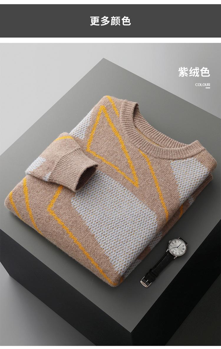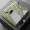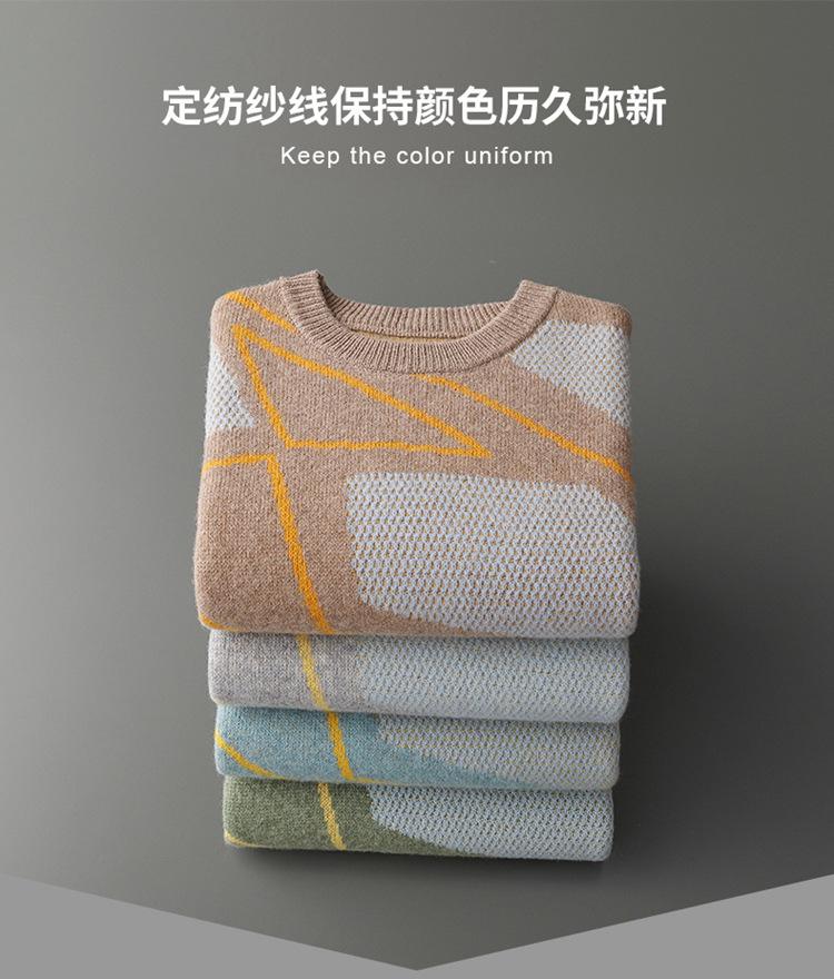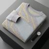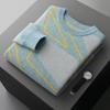 Suéter de Lã Pura 100 para Homens com Gola Redonda Combinando Cores Camisa Base de Malha Outono e Inverno Novo Suéter Casual Espesso Pulôver