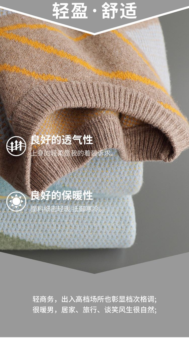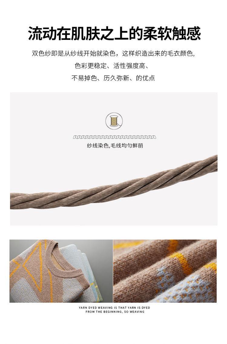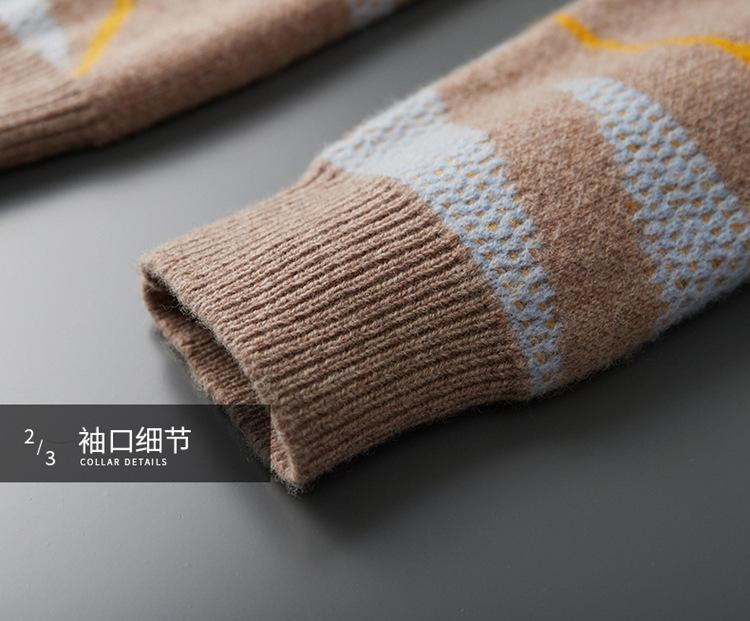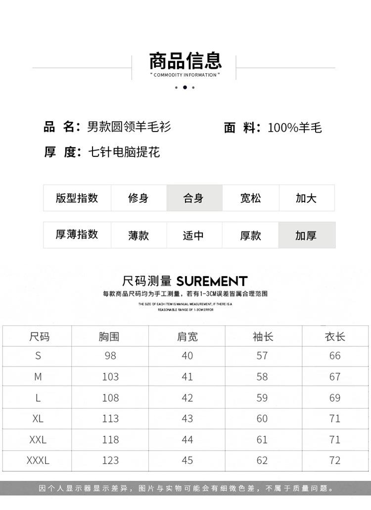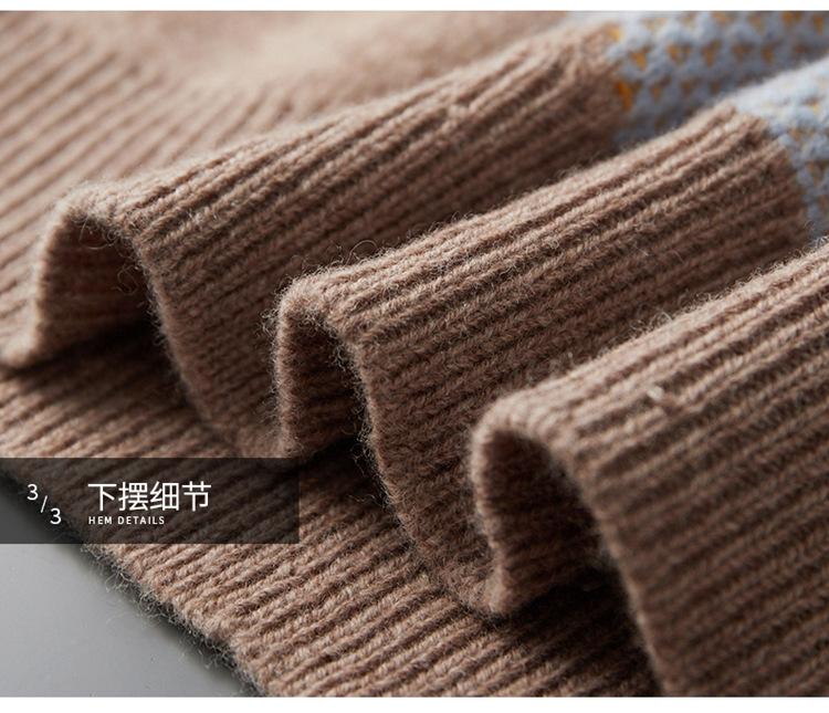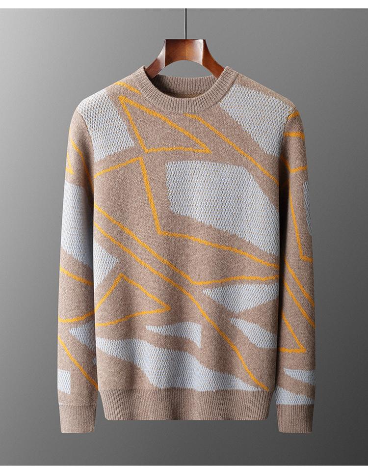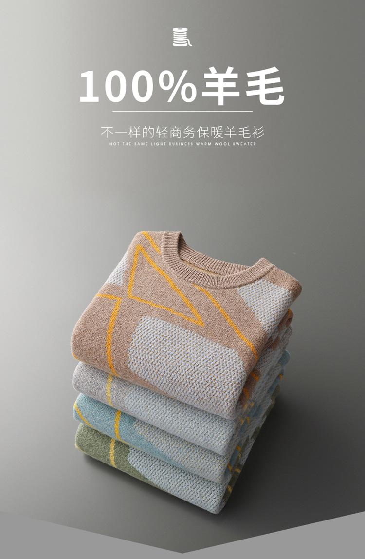 Suéter de Lã Pura 100 para Homens com Gola Redonda Combinando Cores Camisa Base de Malha Outono e Inverno Novo Suéter Casual Espesso Pulôver