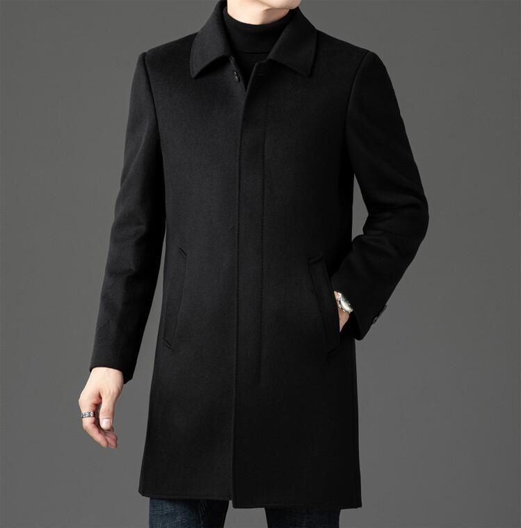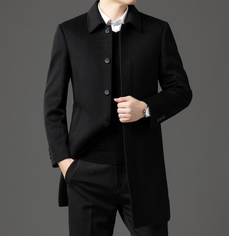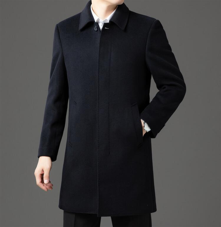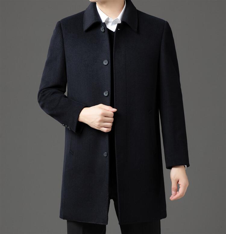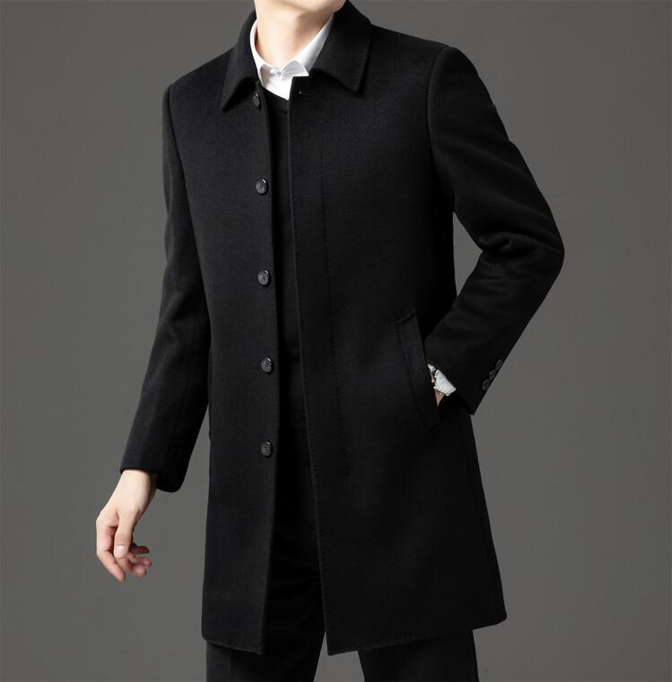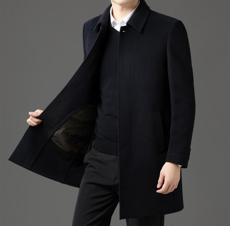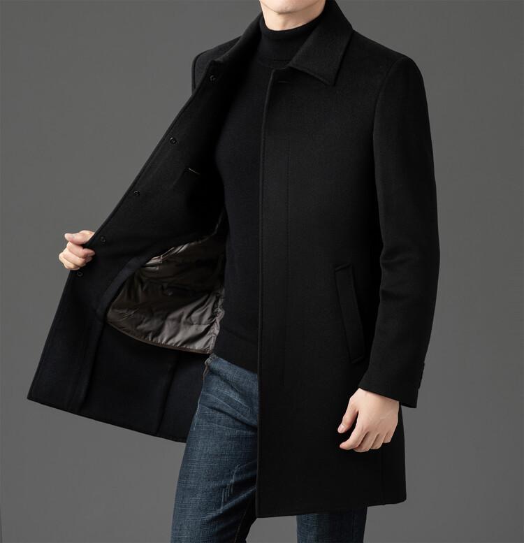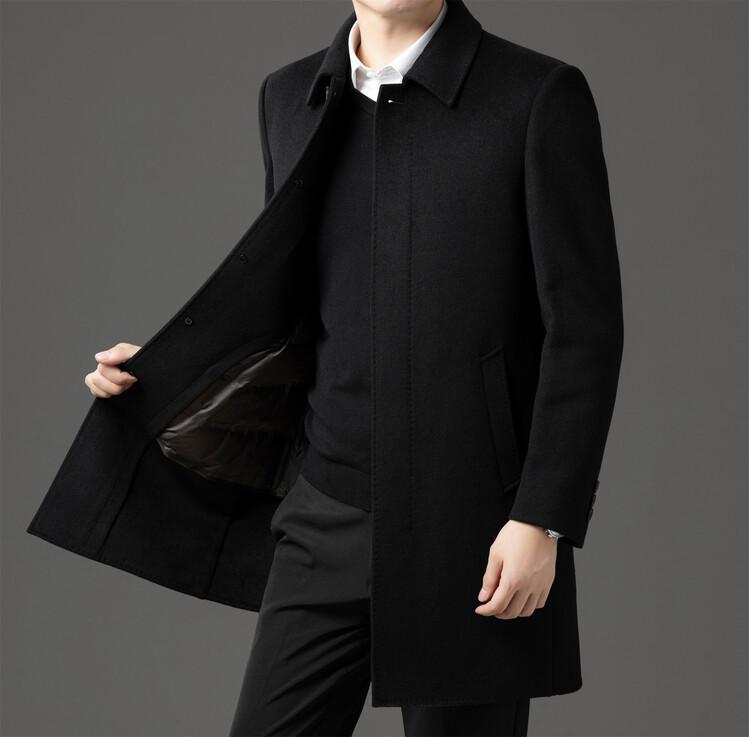 Abrigo de Largo Medio para Hombre Forrado de Plumón 2024 Invierno Nuevo Estilo Lana Doble Cara Lana Cálido Grueso