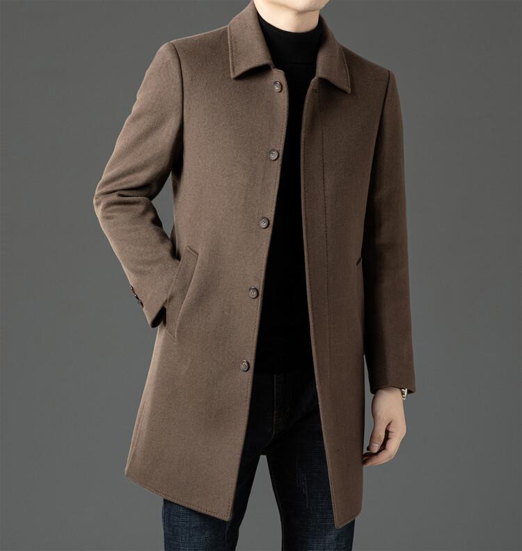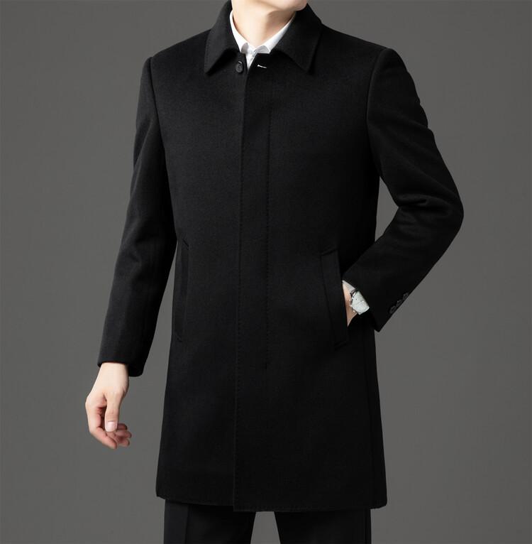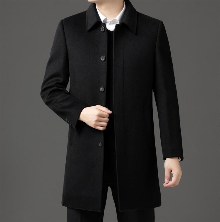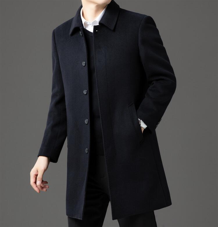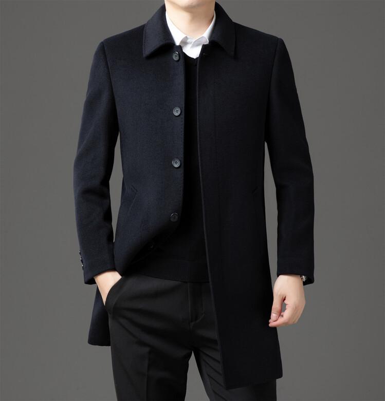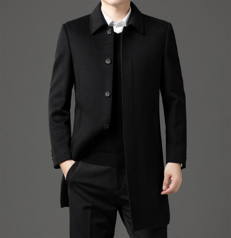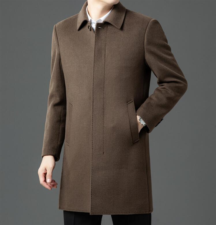 Abrigo de Largo Medio para Hombre Forrado de Plumón 2024 Invierno Nuevo Estilo Lana Doble Cara Lana Cálido Grueso