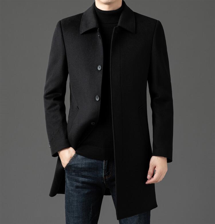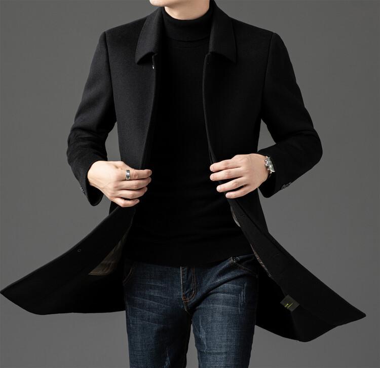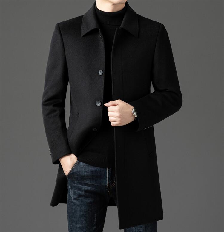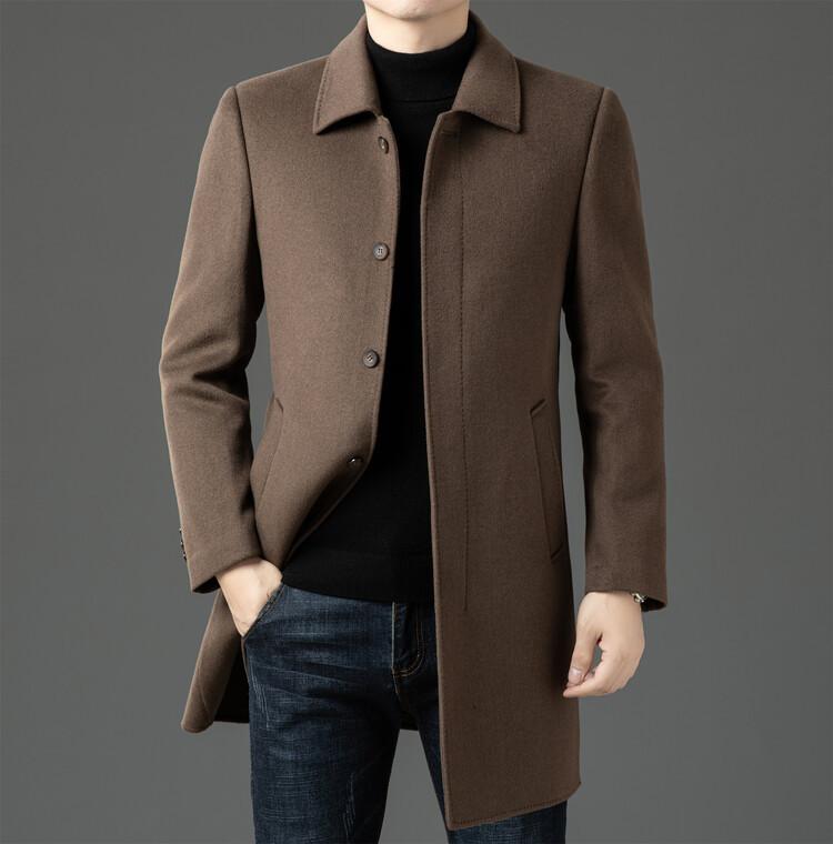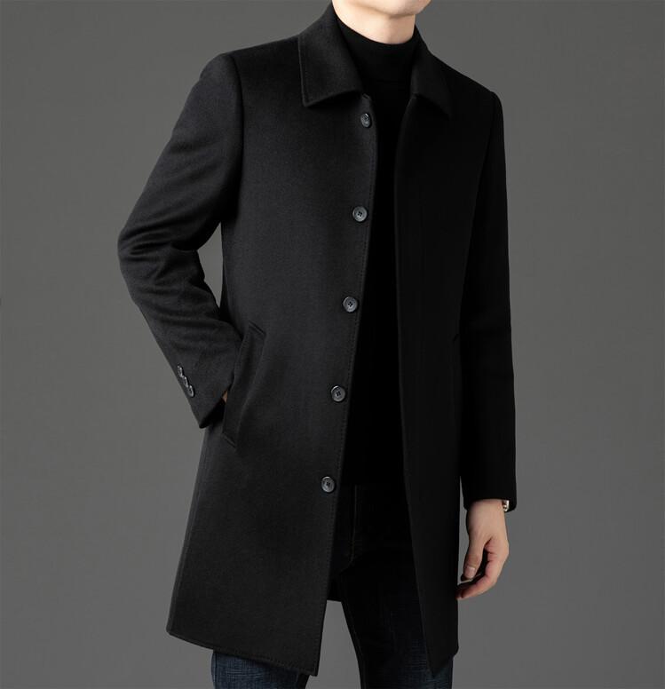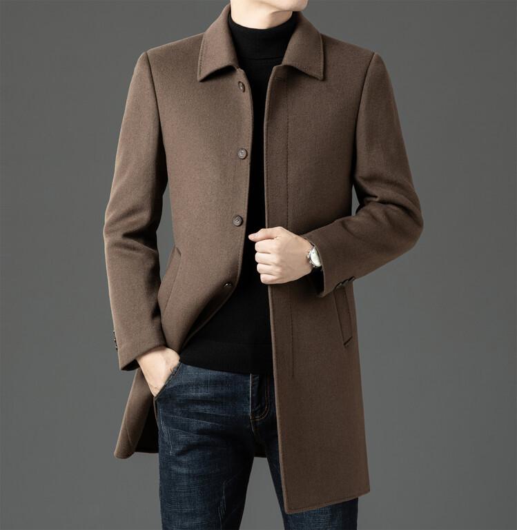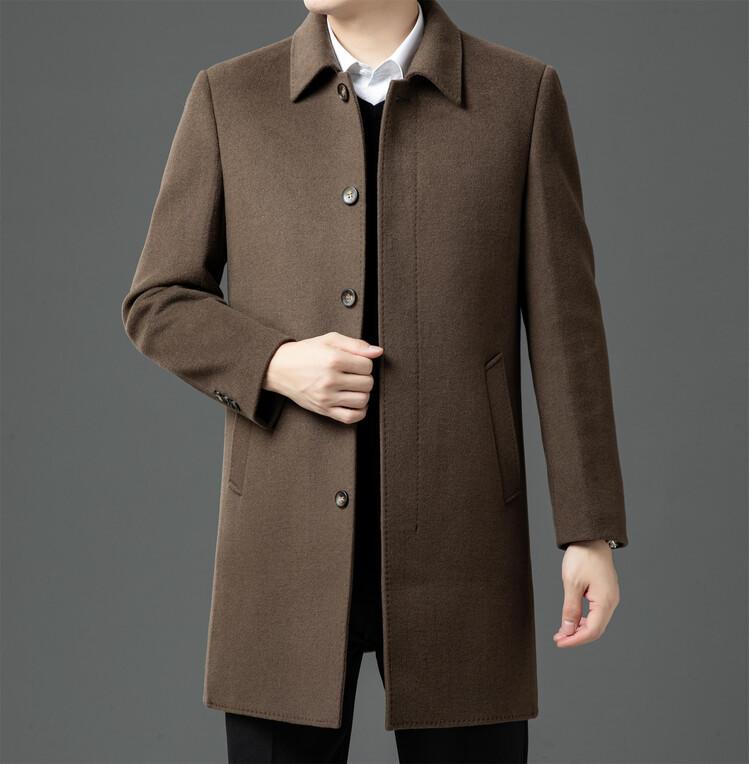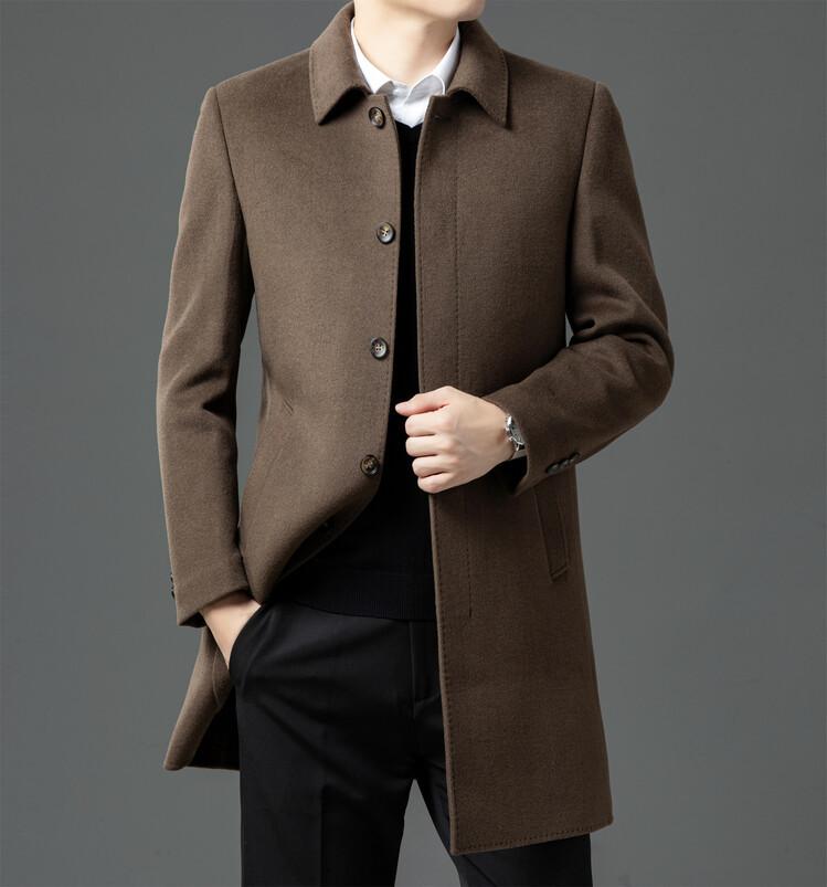 Abrigo de Largo Medio para Hombre Forrado de Plumón 2024 Invierno Nuevo Estilo Lana Doble Cara Lana Cálido Grueso