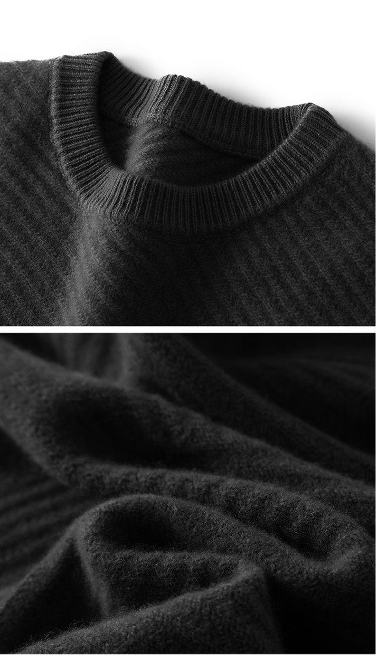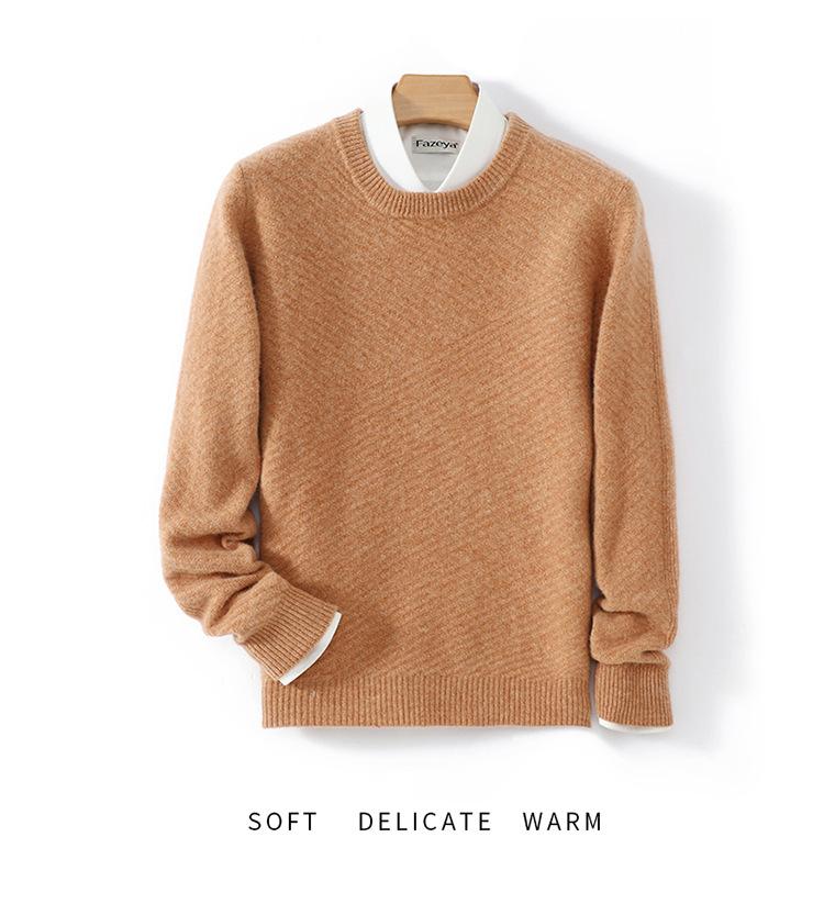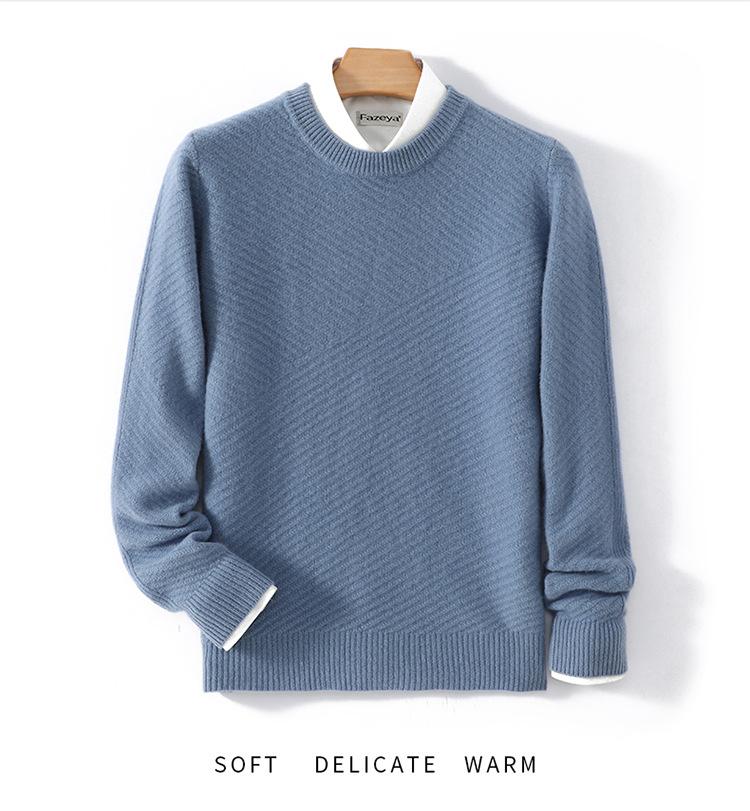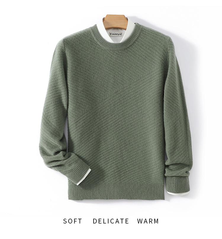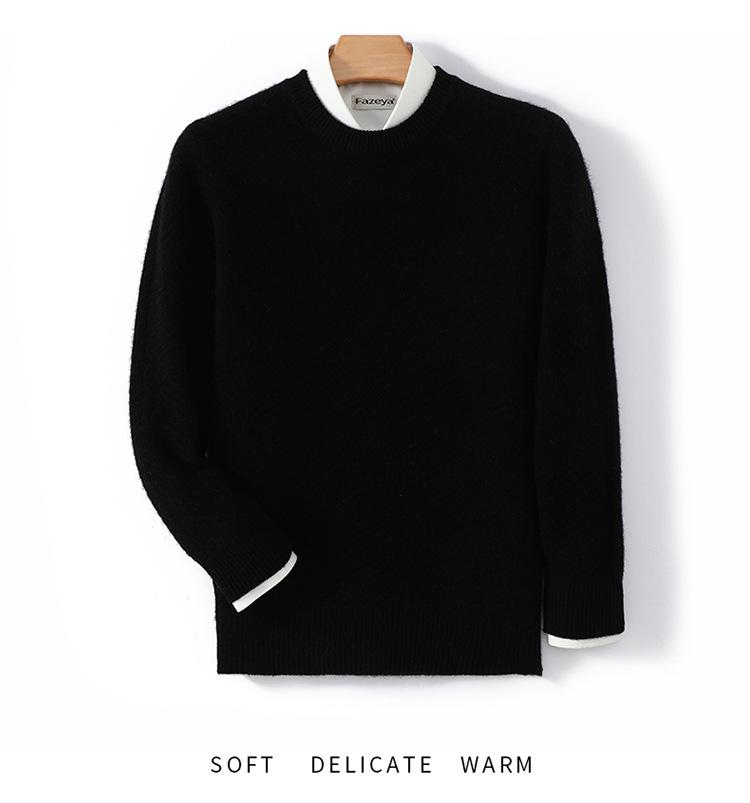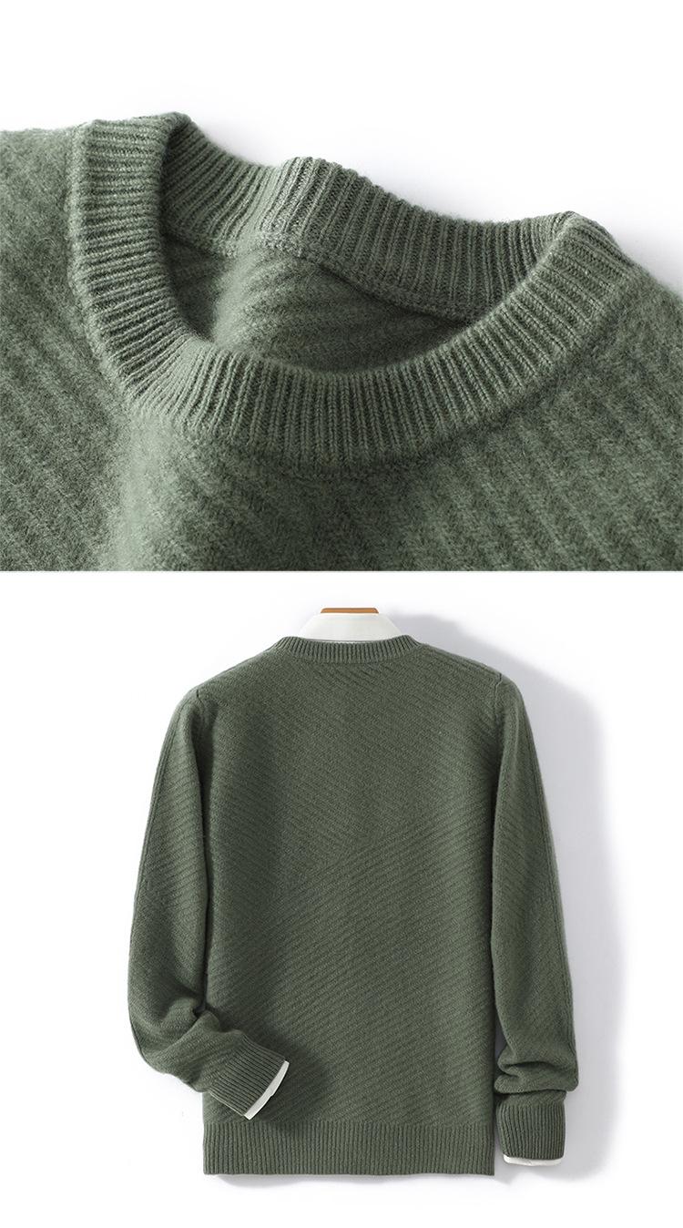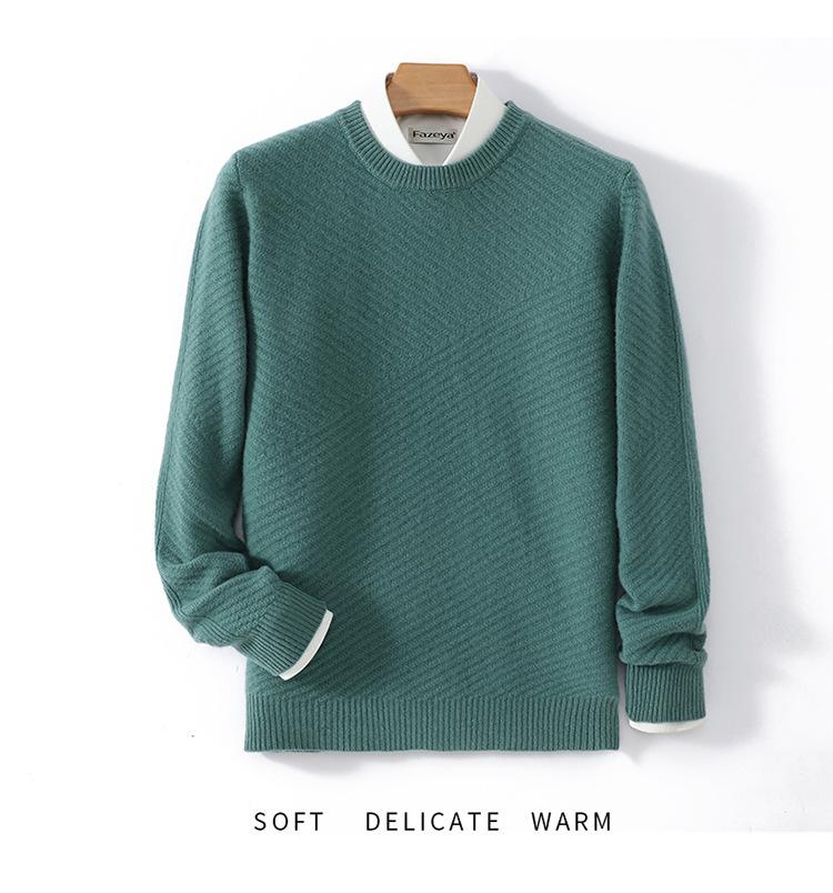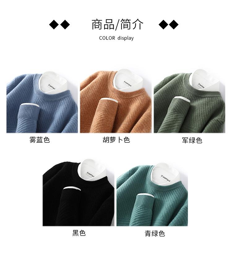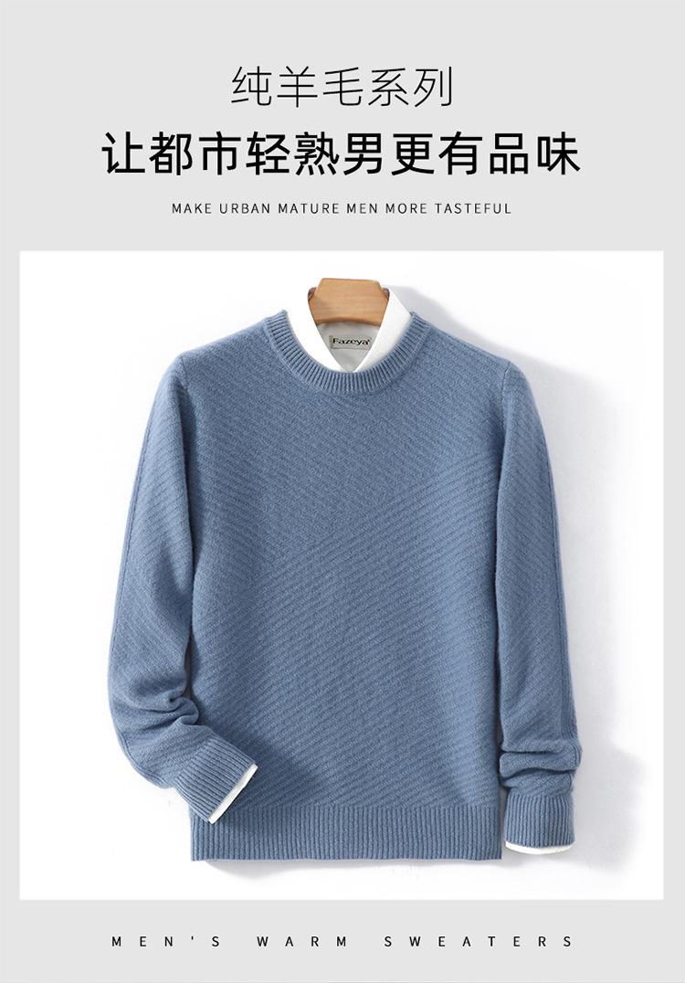 Suéter de lana pura 100% para hombre, cuello redondo, tejido jacquard grueso, nuevo, otoño e invierno, ligero, de lujo, combinable, con base de punto de cachemira.