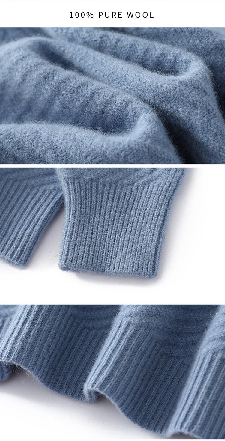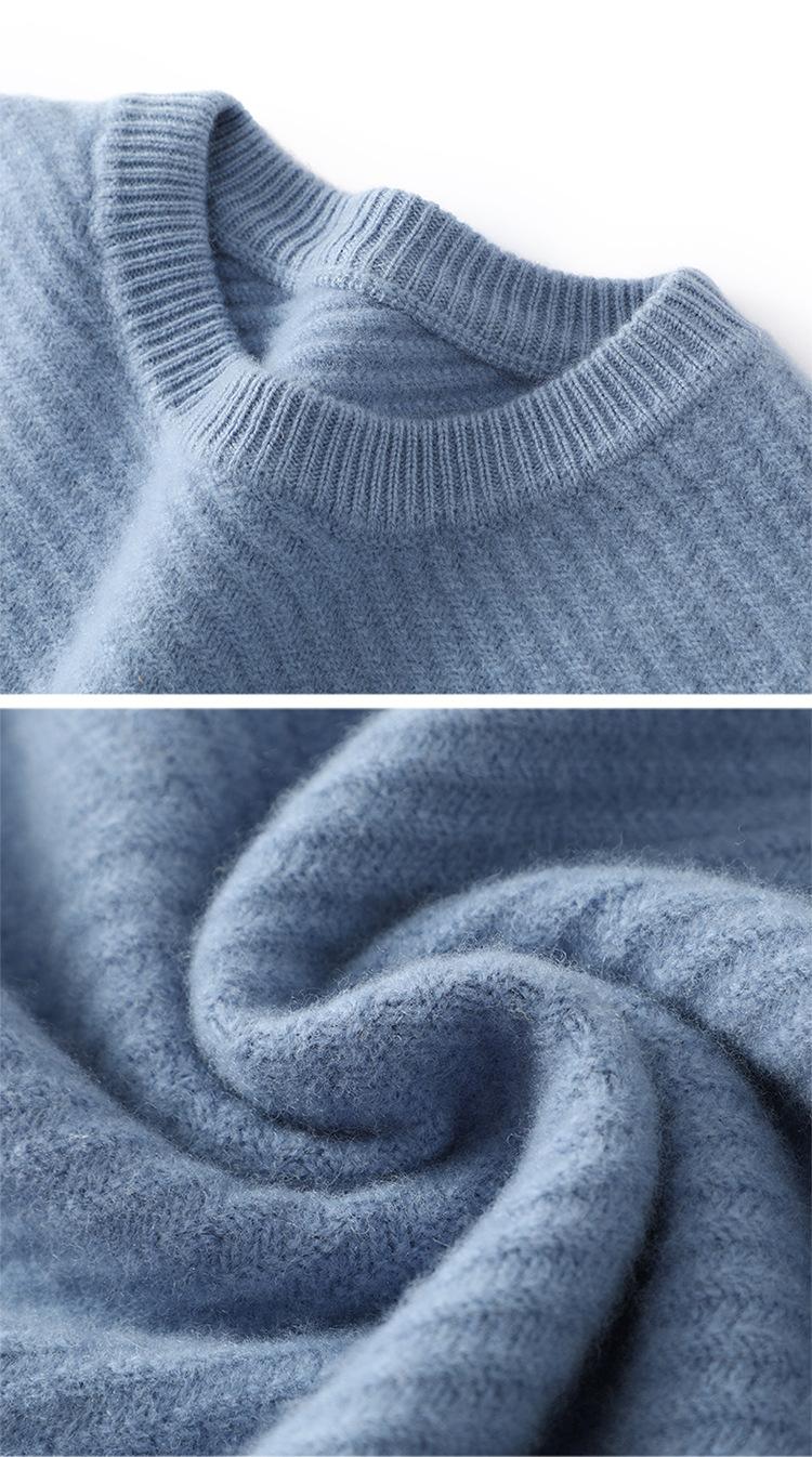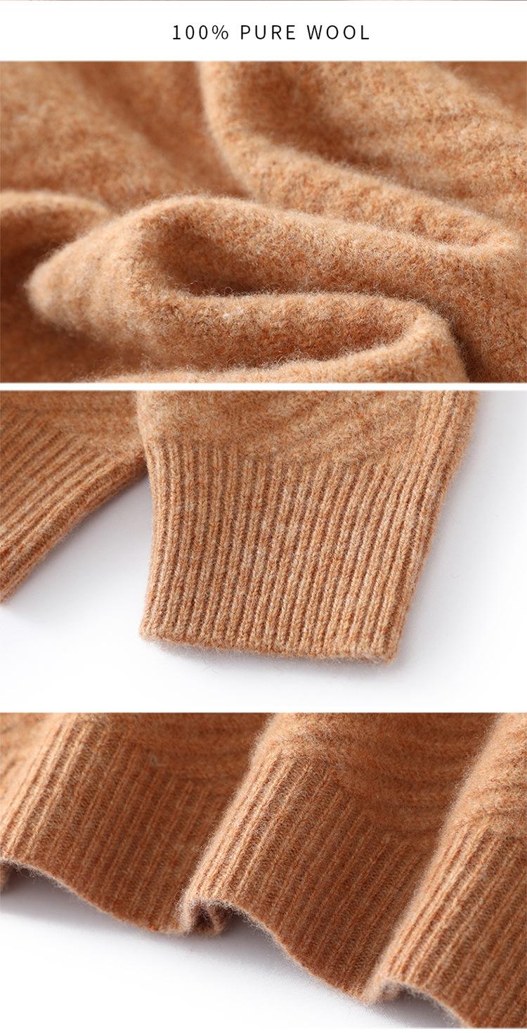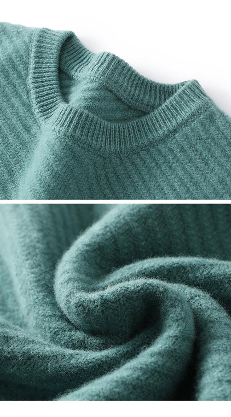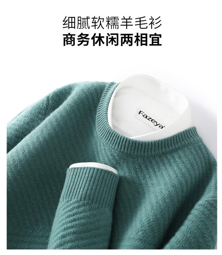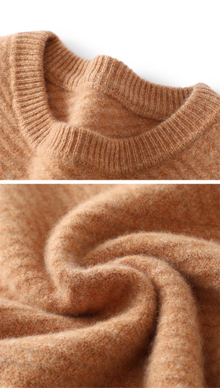 Suéter de lana pura 100% para hombre, cuello redondo, tejido jacquard grueso, nuevo, otoño e invierno, ligero, de lujo, combinable, con base de punto de cachemira.