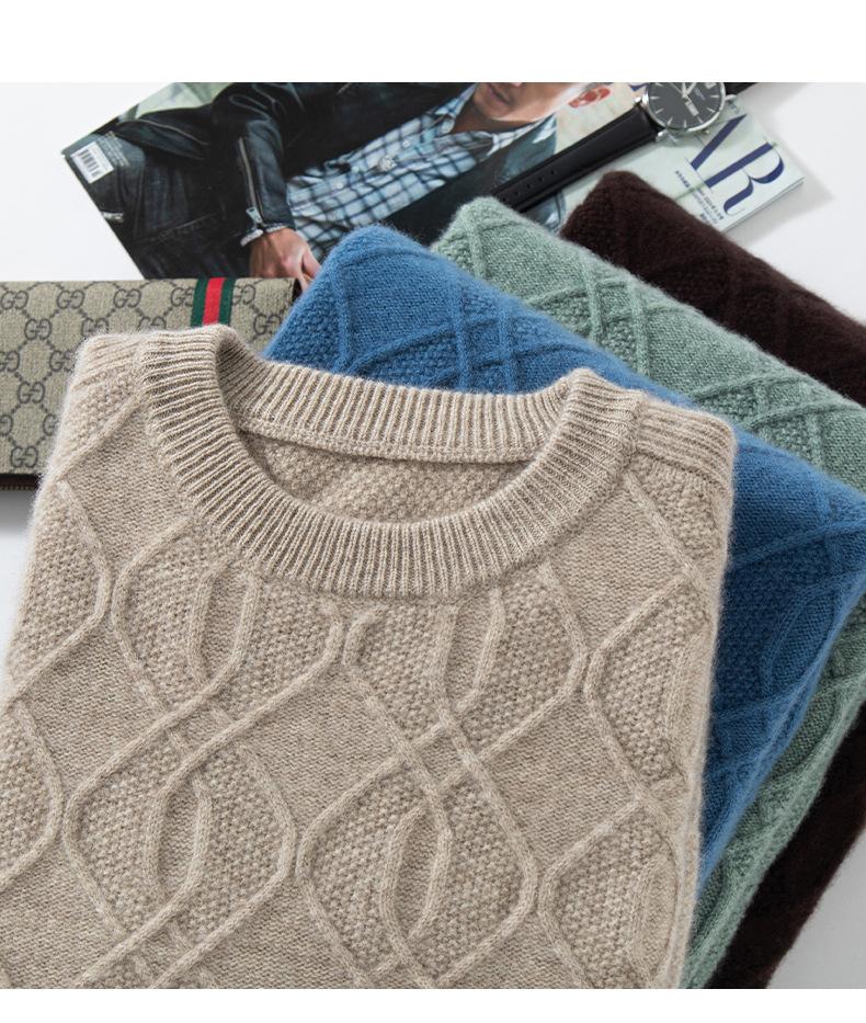 Cachemira Suave para Hombre Cuello Redondo Grueso Color Puro Holgado Casual Jersey Talla Grande Otoño e Invierno Nuevo Suéter de Punto Base