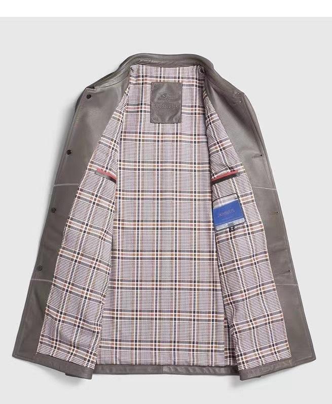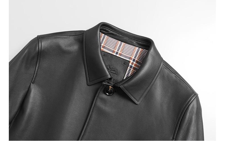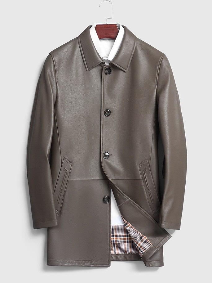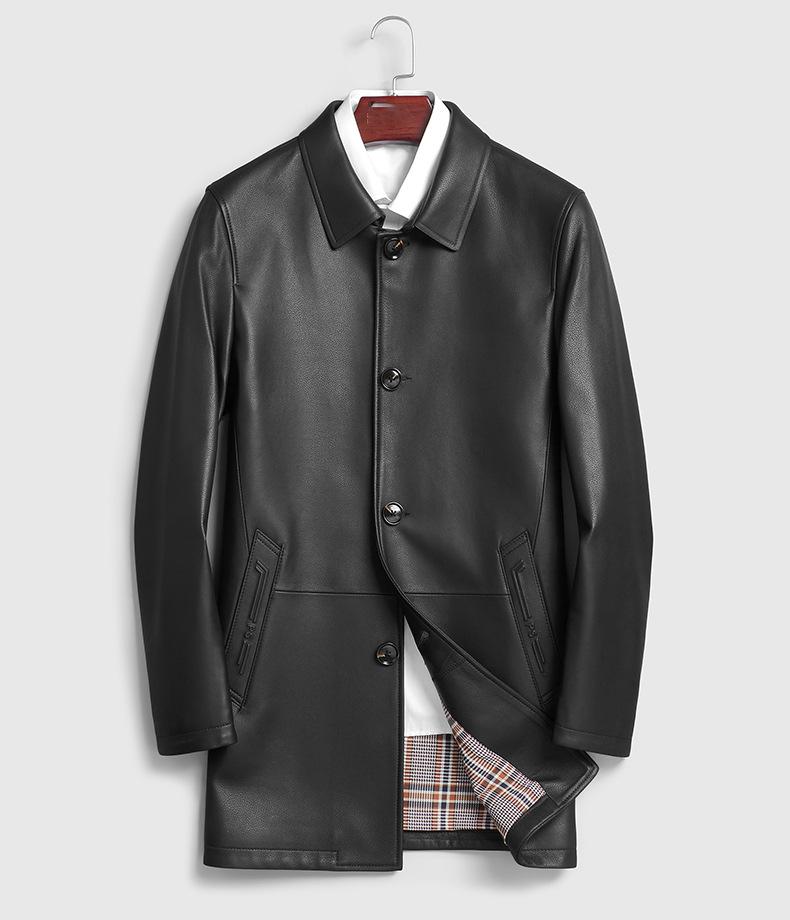 Compra Otoño e Invierno Nuevo Haining Cuero Genuino para Hombre Solapa Negro Negocios Casual Diario Abrigo Combinable de Largo Medio al por mayor en Joom.pro