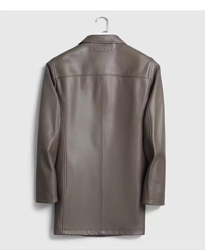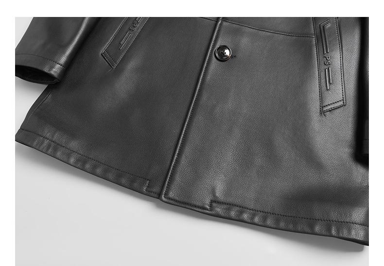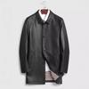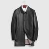 Otoño e Invierno Nuevo Haining Cuero Genuino para Hombre Solapa Negro Negocios Casual Diario Abrigo Combinable de Largo Medio