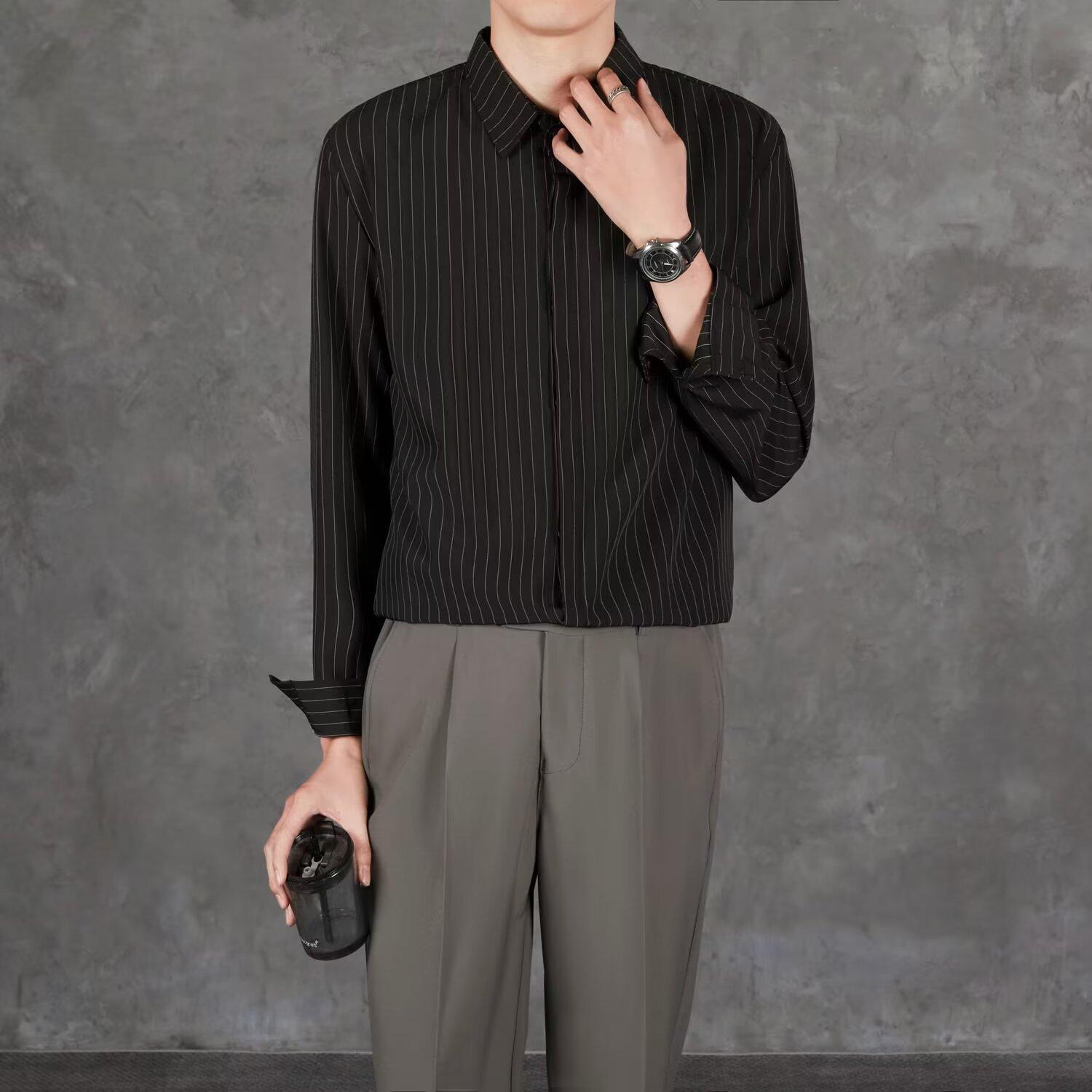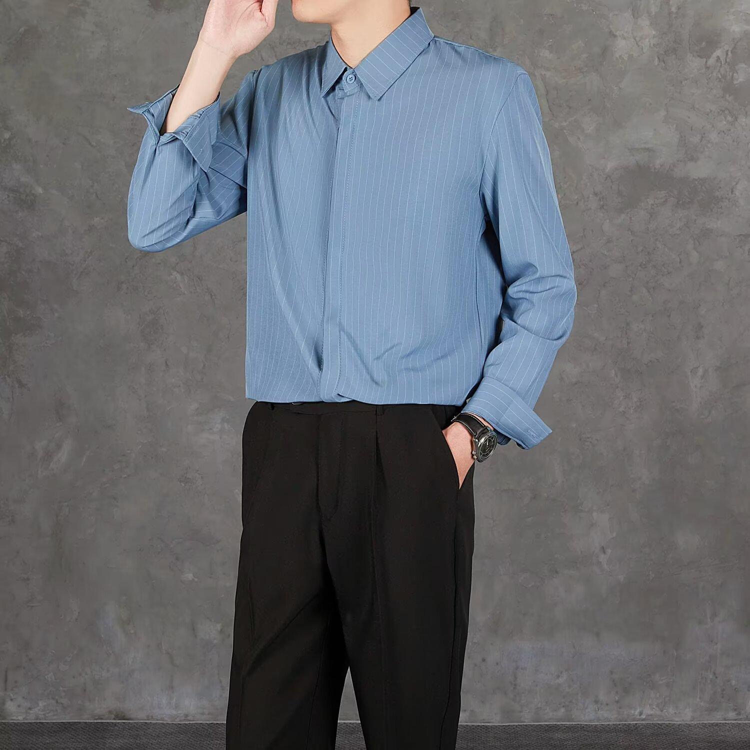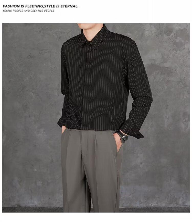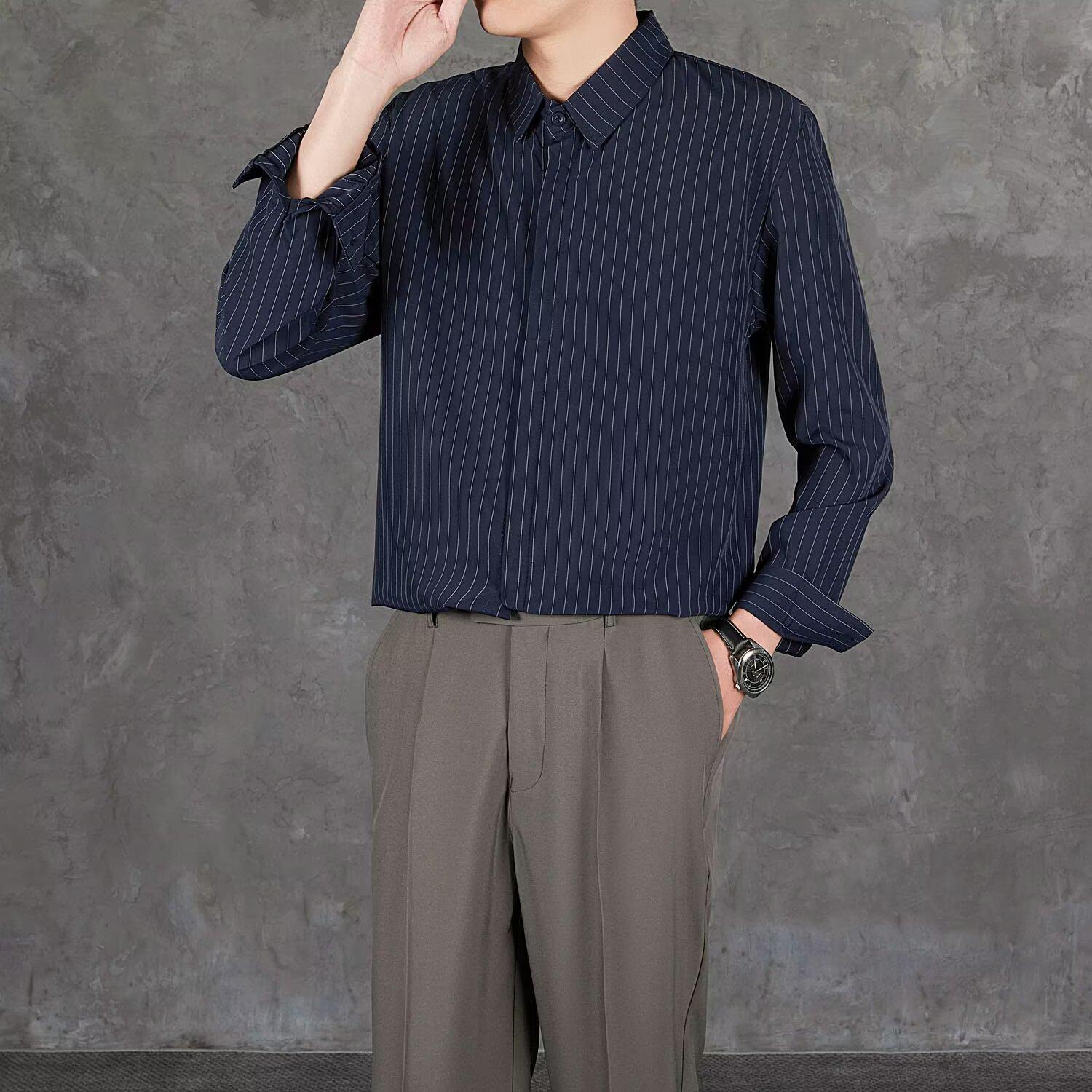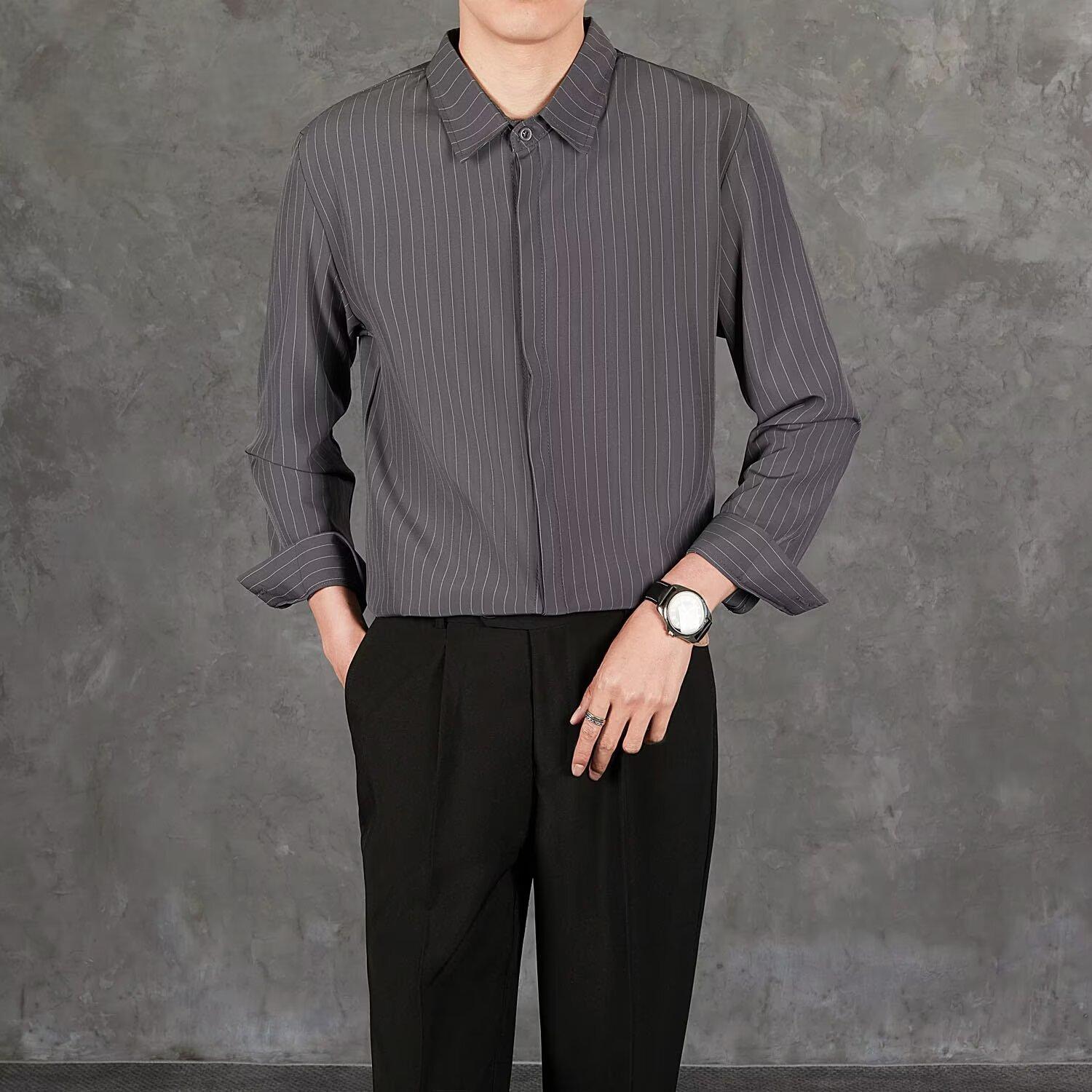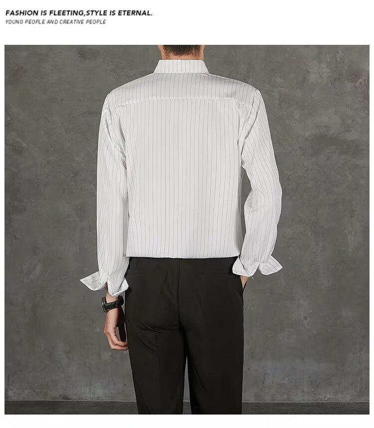 Camisa de diseño a rayas para hombres jóvenes, primavera y otoño, nuevo estilo coreano, estilo maduro, elegante, informal, de negocios, sin planchado, de moda.