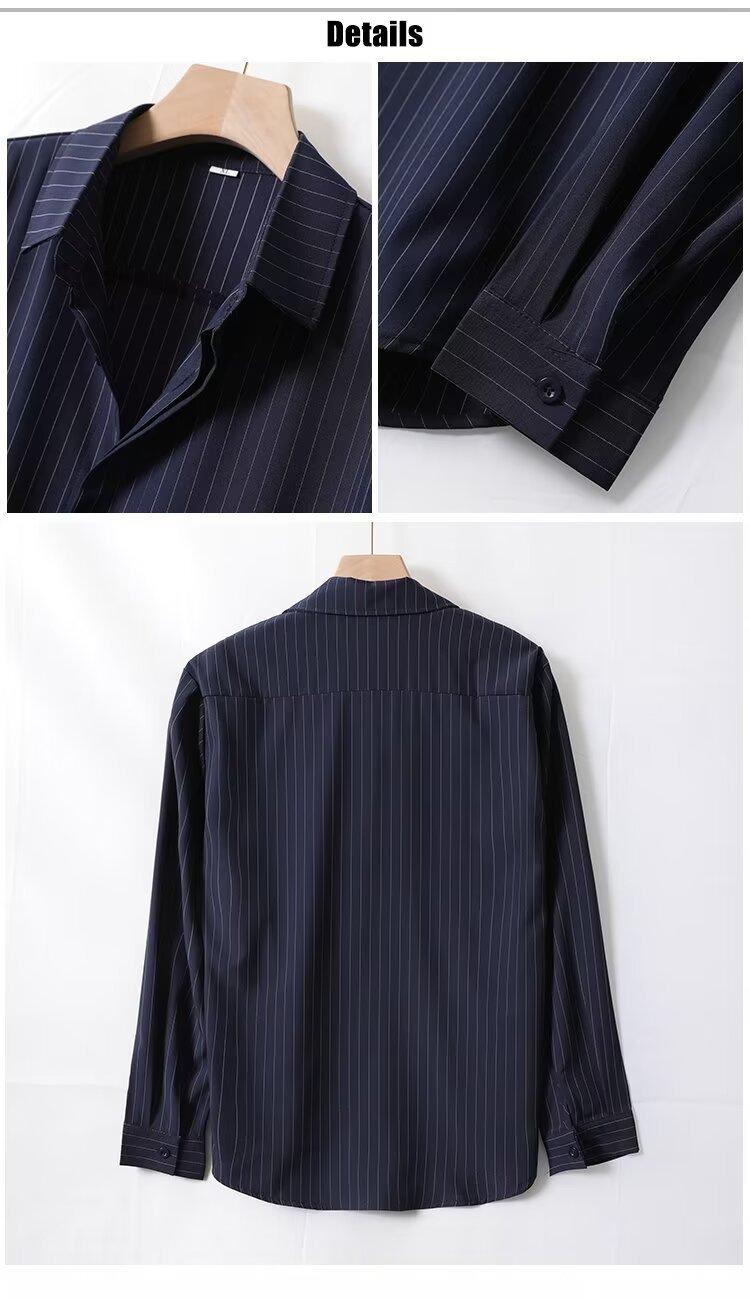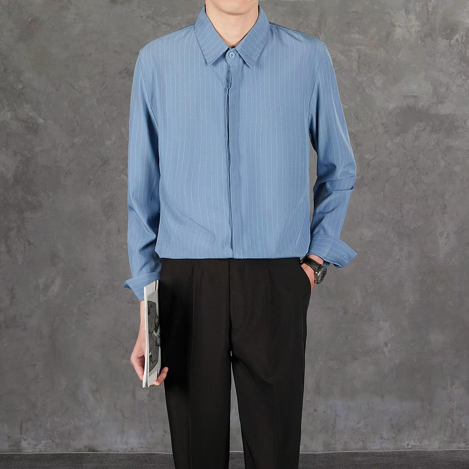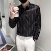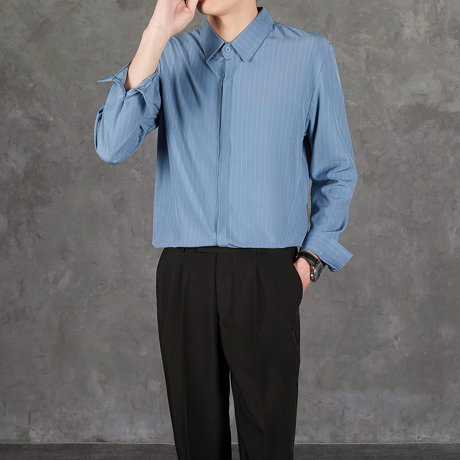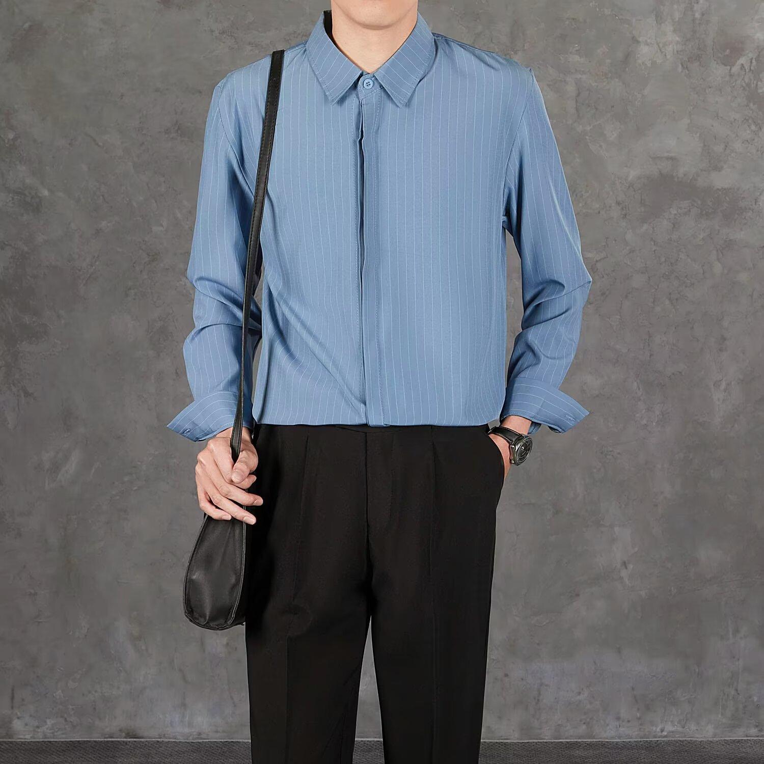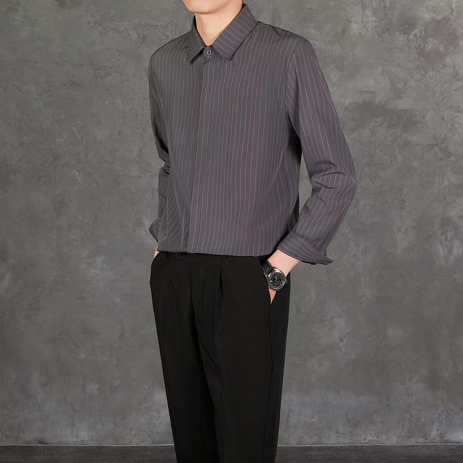 Camisa de diseño a rayas para hombres jóvenes, primavera y otoño, nuevo estilo coreano, estilo maduro, elegante, informal, de negocios, sin planchado, de moda.