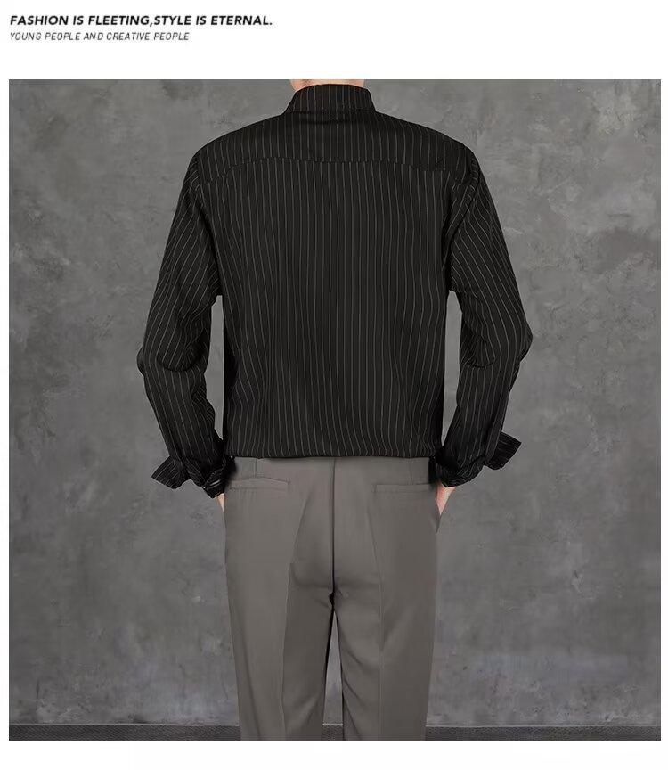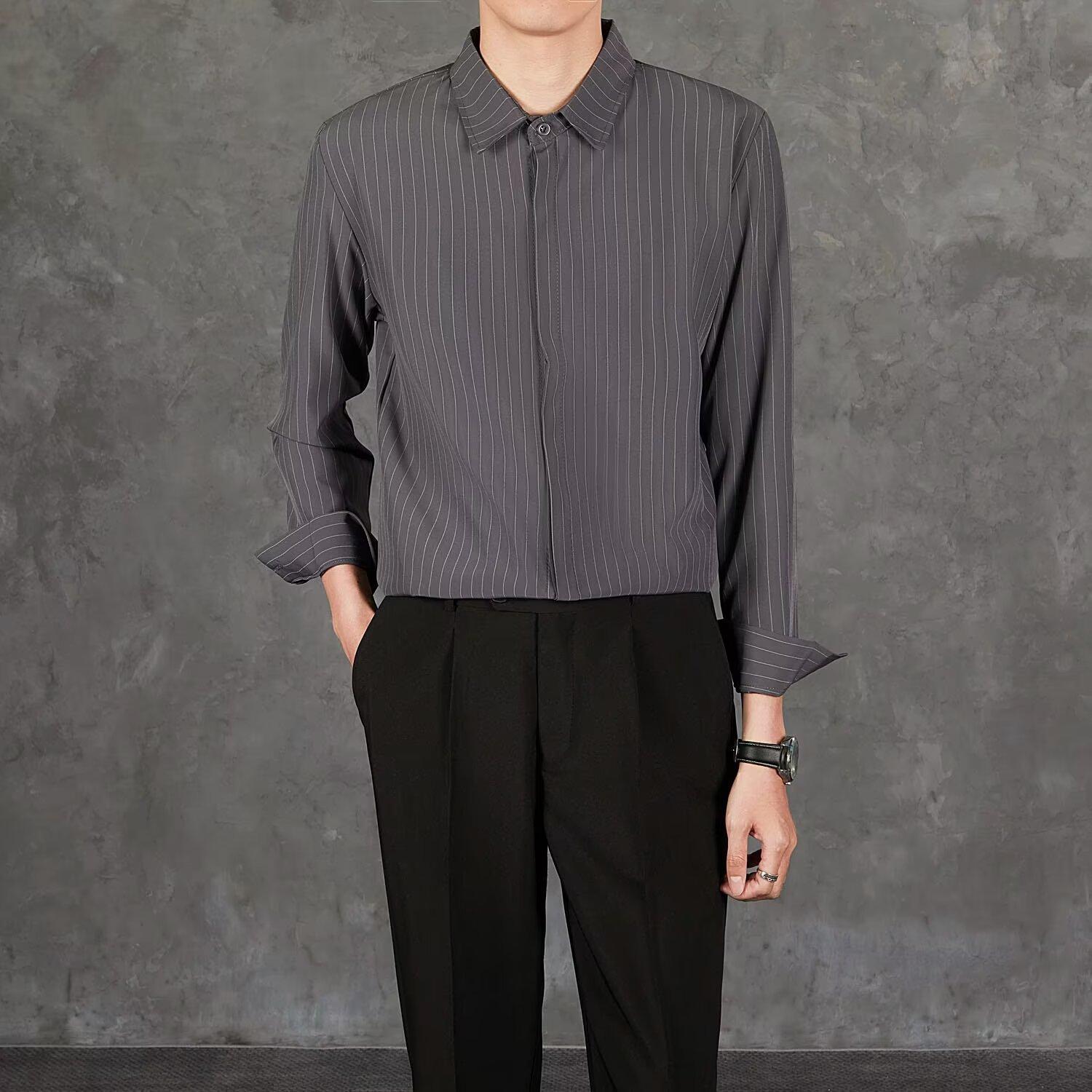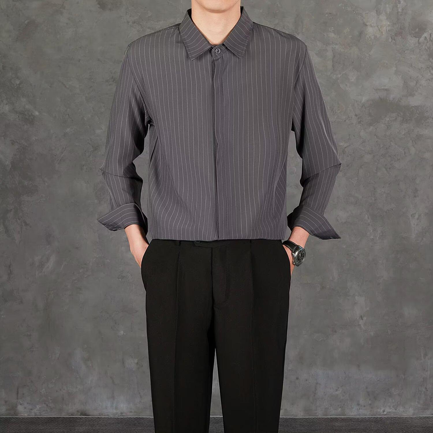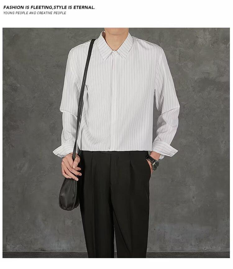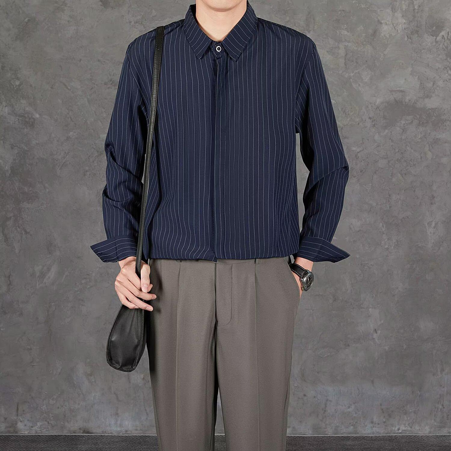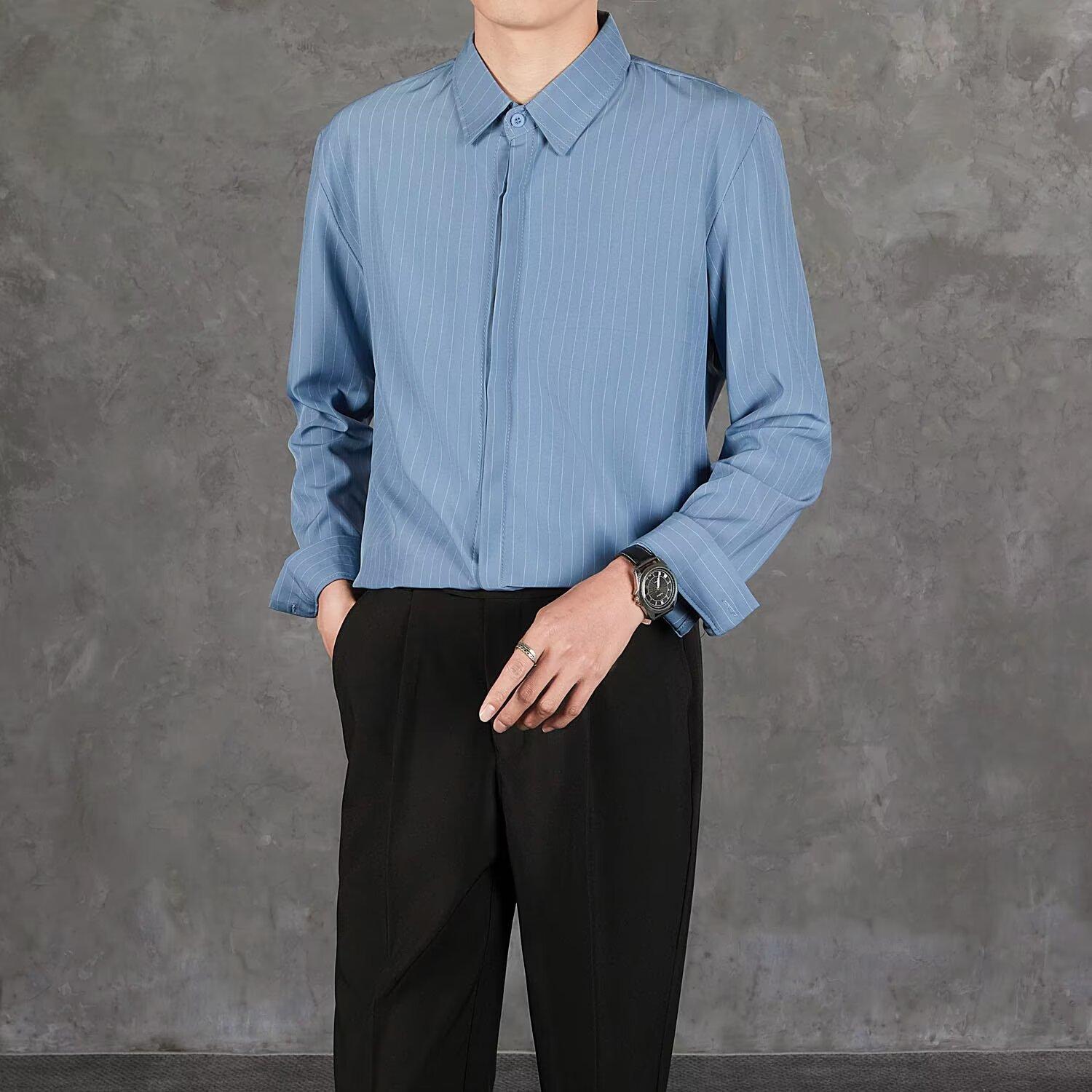 Camisa de diseño a rayas para hombres jóvenes, primavera y otoño, nuevo estilo coreano, estilo maduro, elegante, informal, de negocios, sin planchado, de moda.