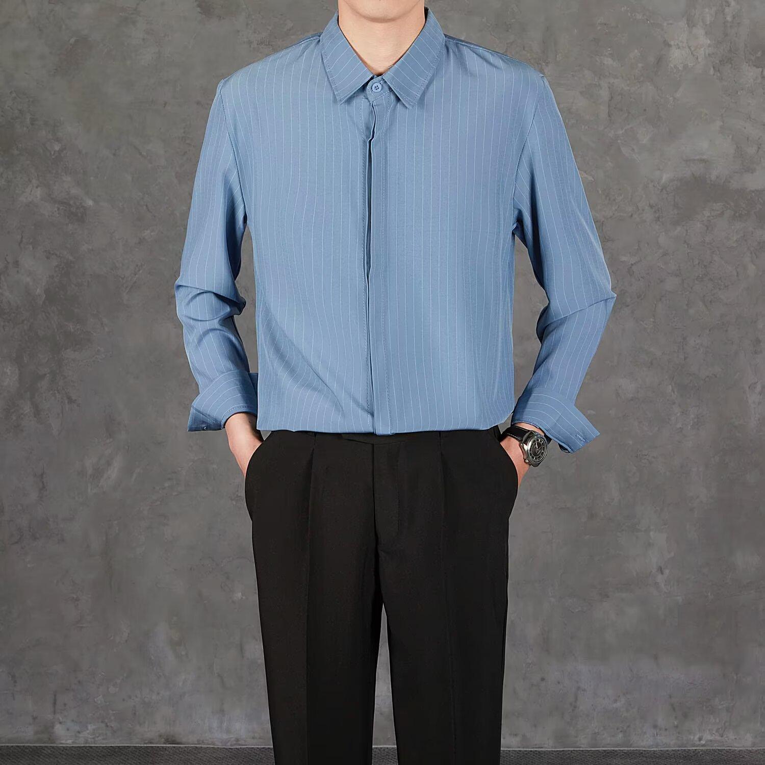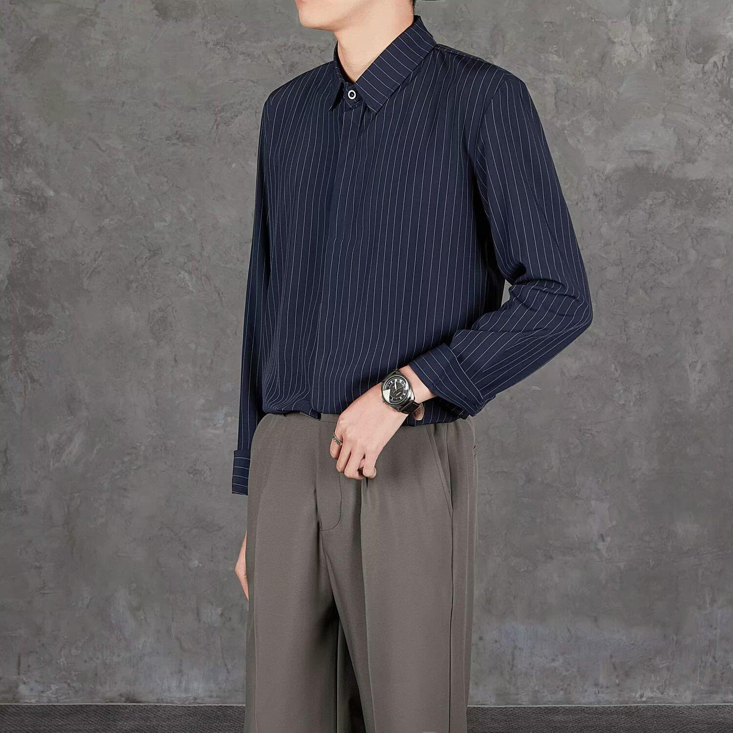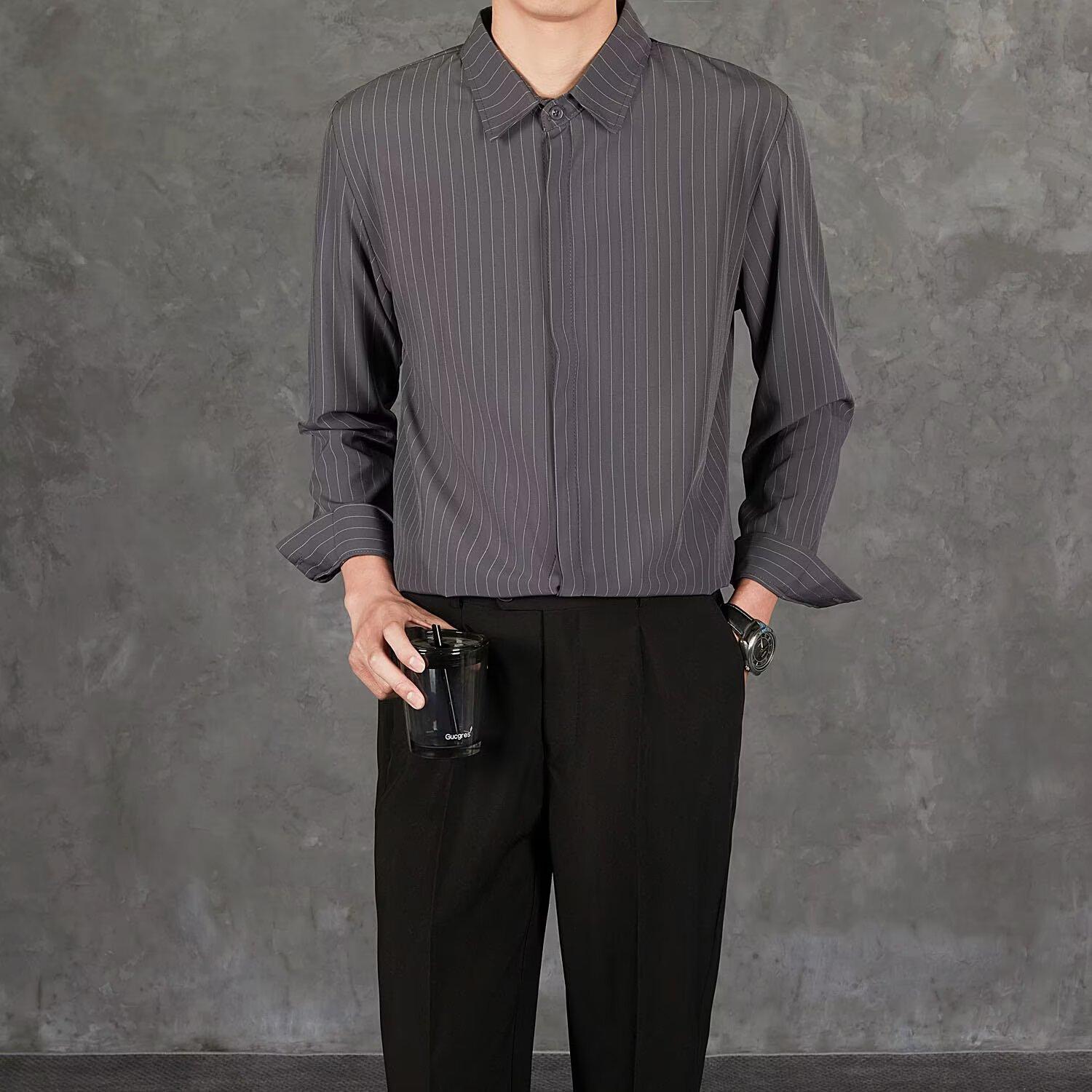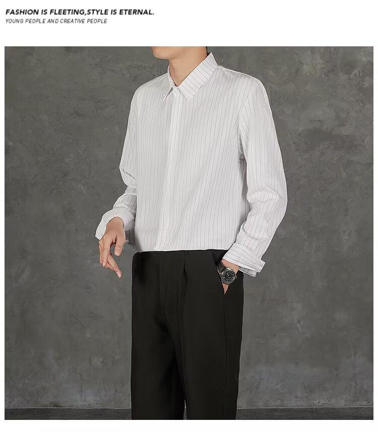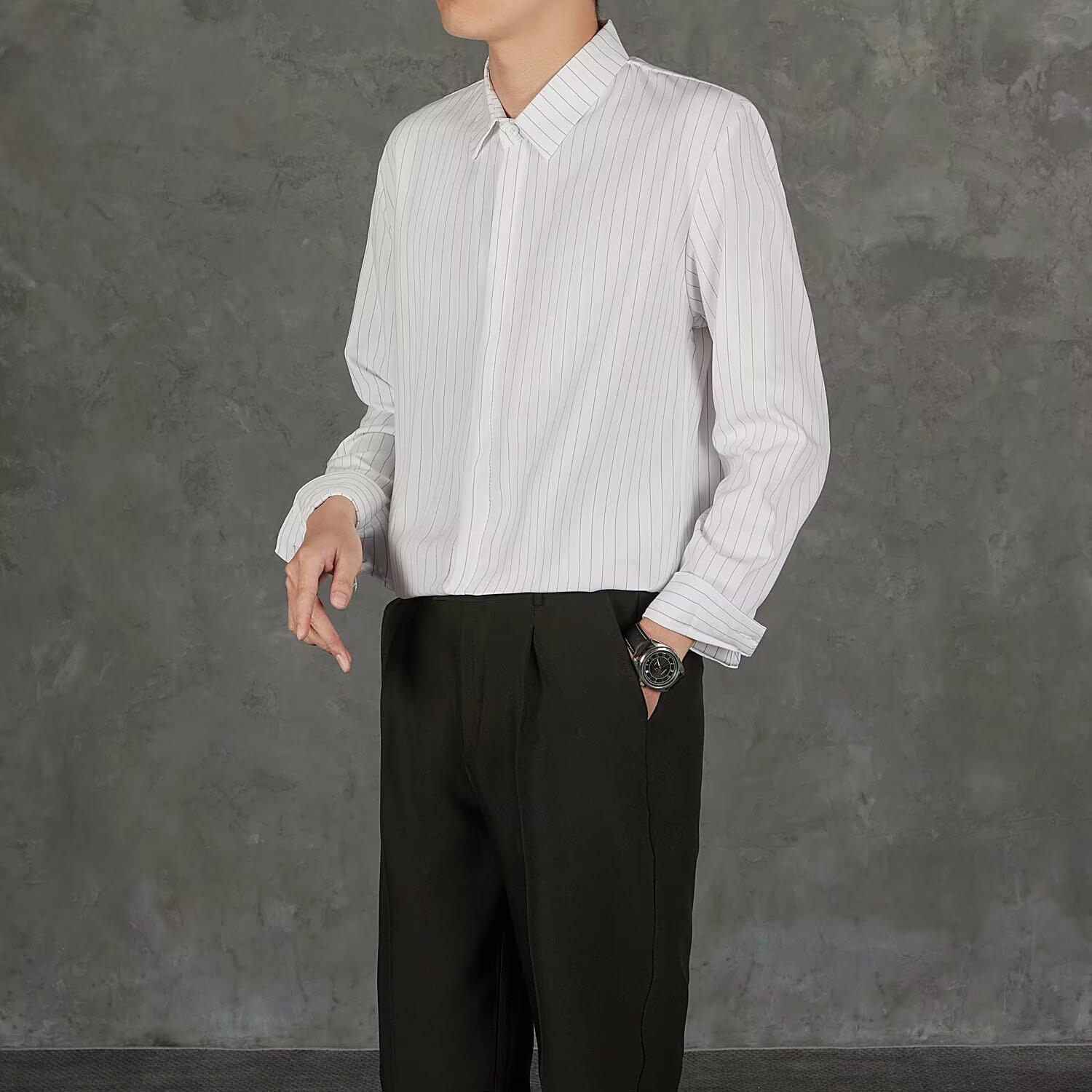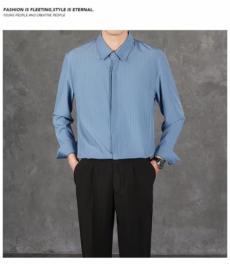 Camisa de diseño a rayas para hombres jóvenes, primavera y otoño, nuevo estilo coreano, estilo maduro, elegante, informal, de negocios, sin planchado, de moda.