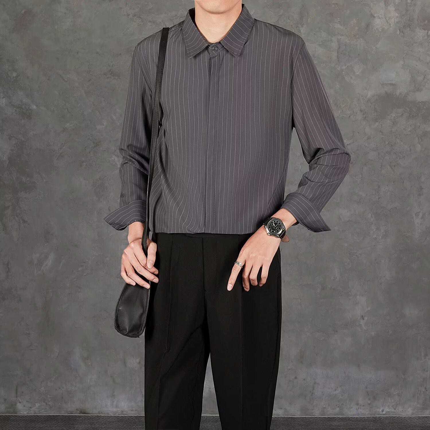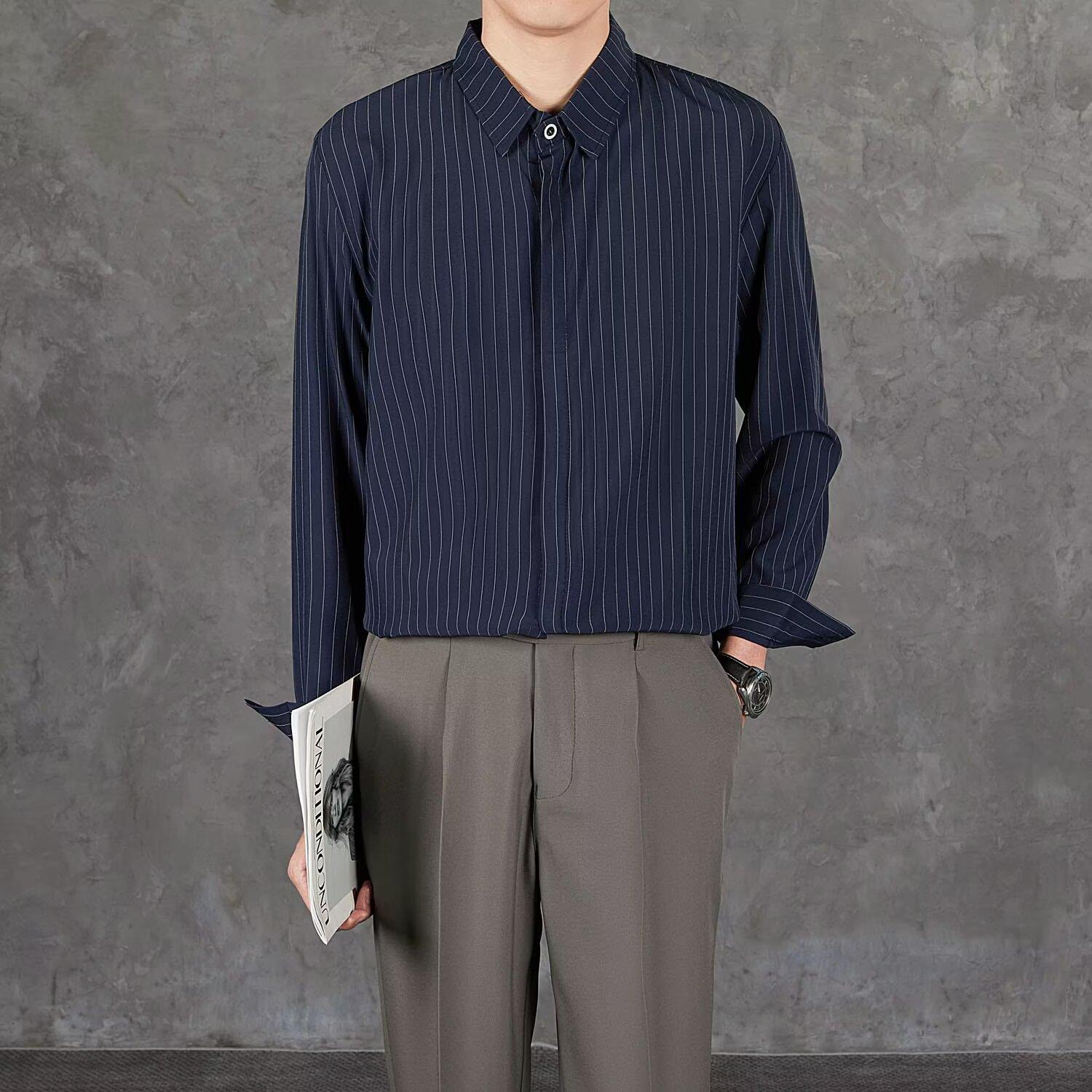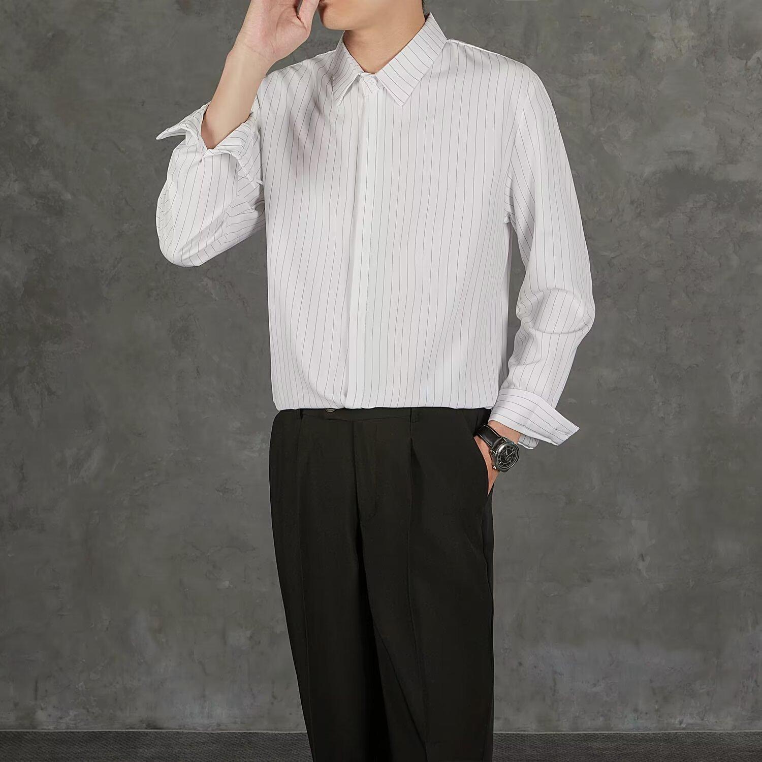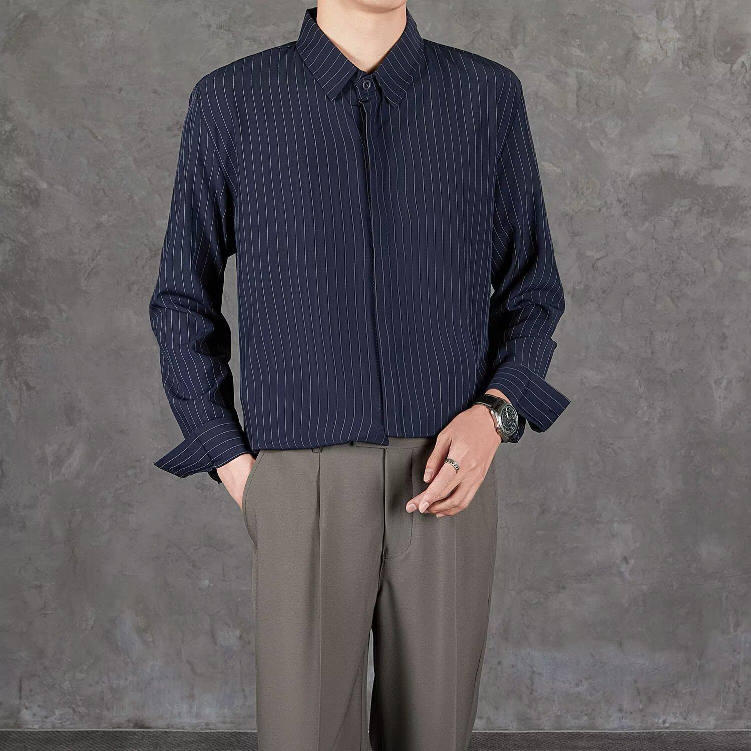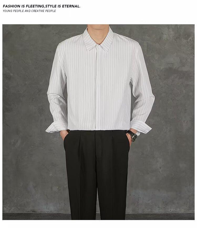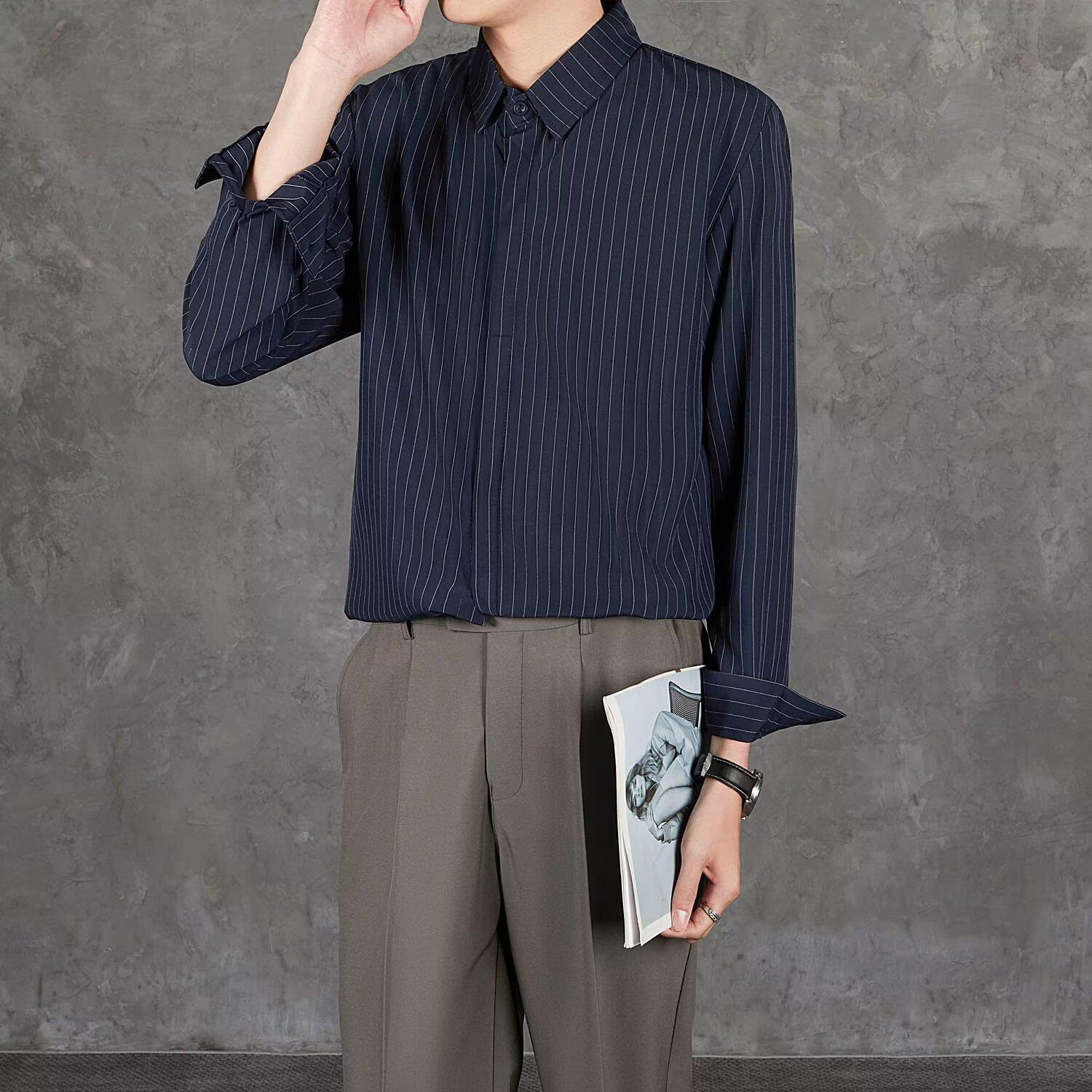 Camisa de diseño a rayas para hombres jóvenes, primavera y otoño, nuevo estilo coreano, estilo maduro, elegante, informal, de negocios, sin planchado, de moda.
