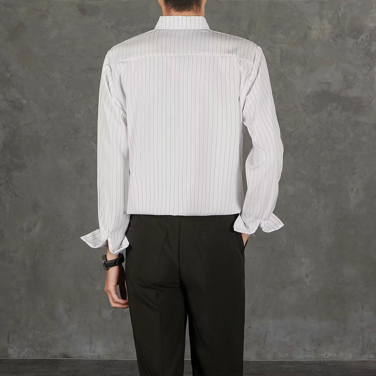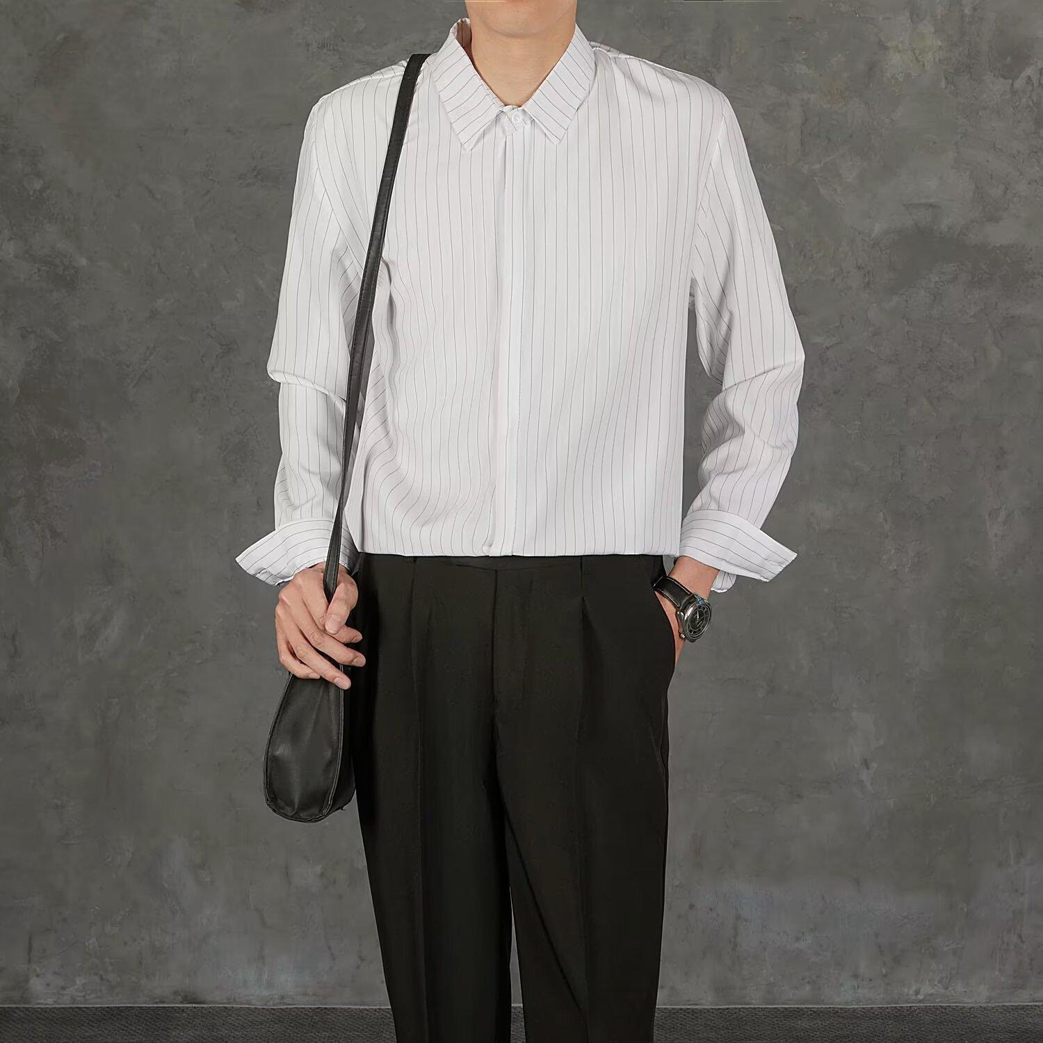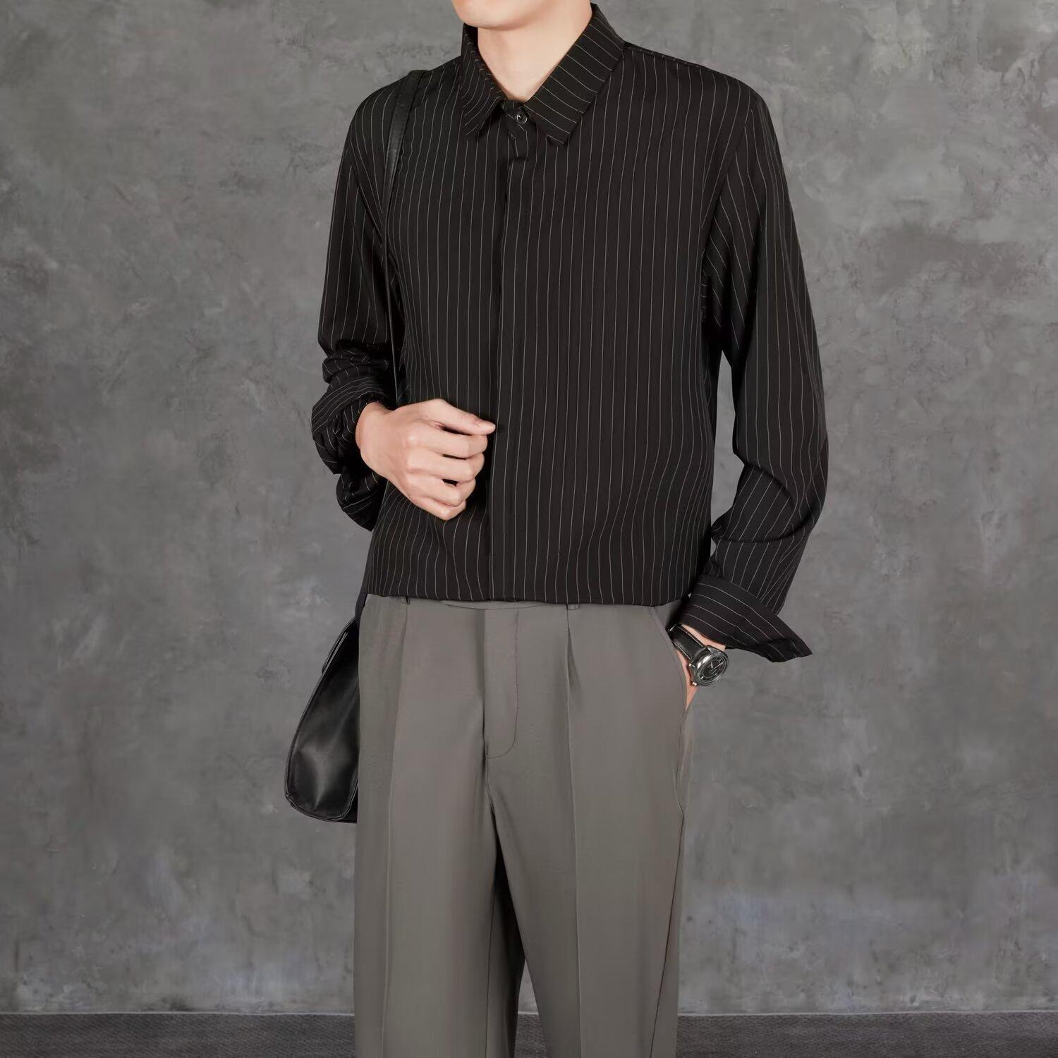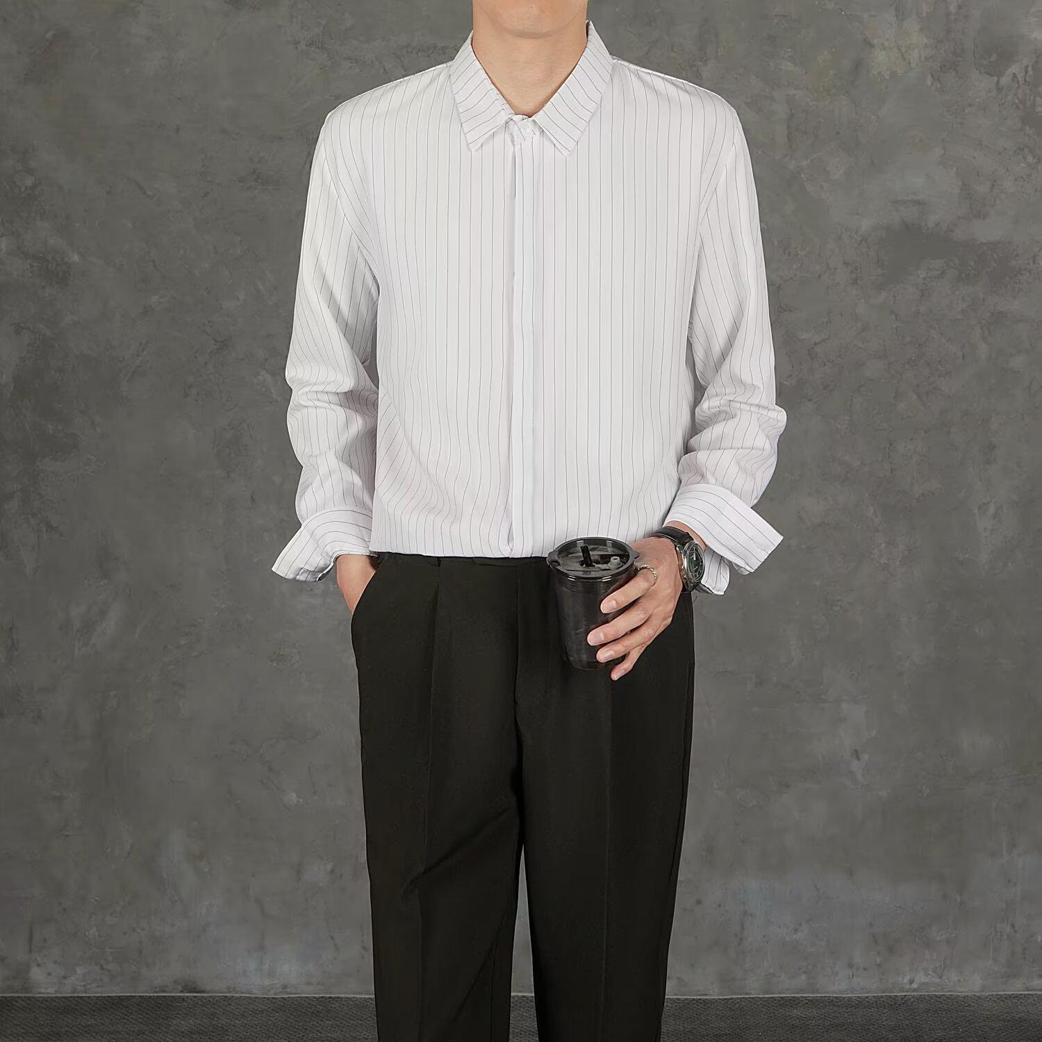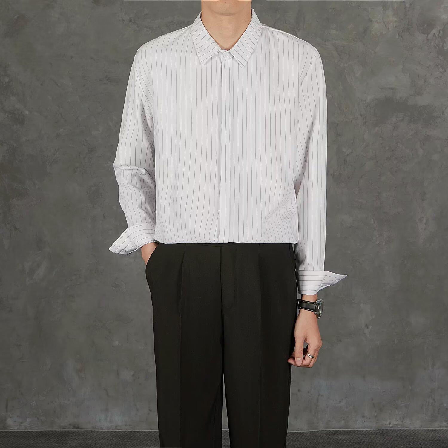 Camisa de diseño a rayas para hombres jóvenes, primavera y otoño, nuevo estilo coreano, estilo maduro, elegante, informal, de negocios, sin planchado, de moda.