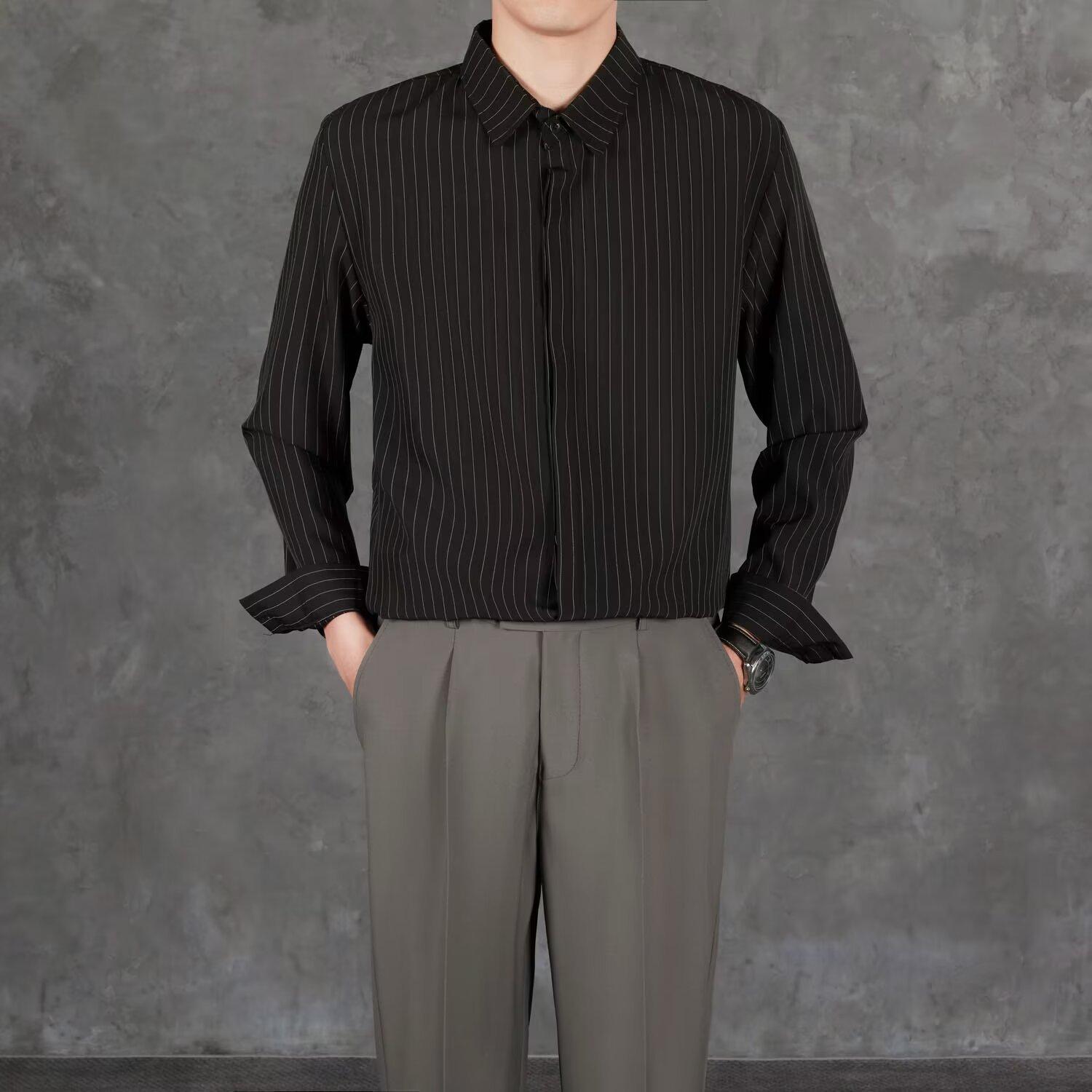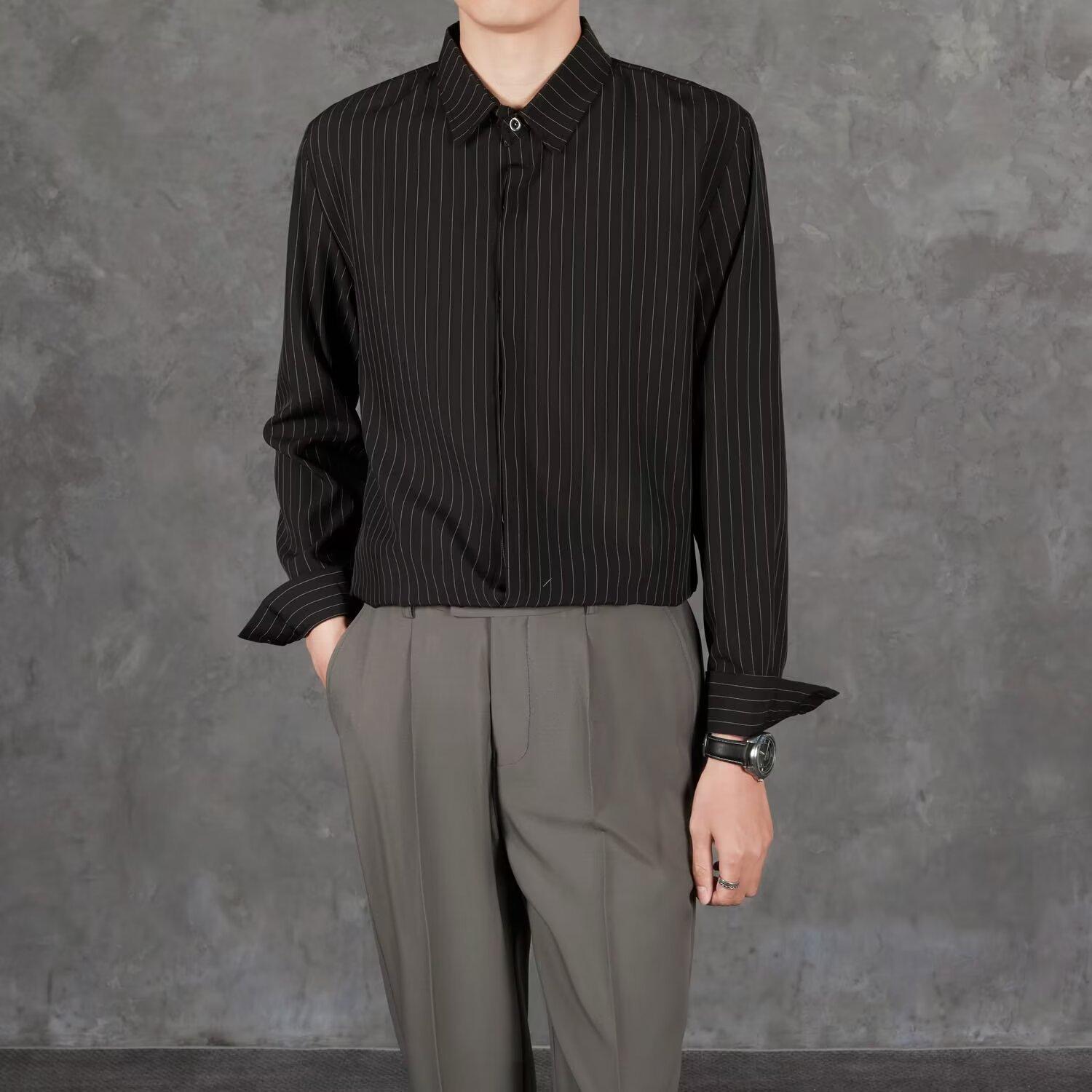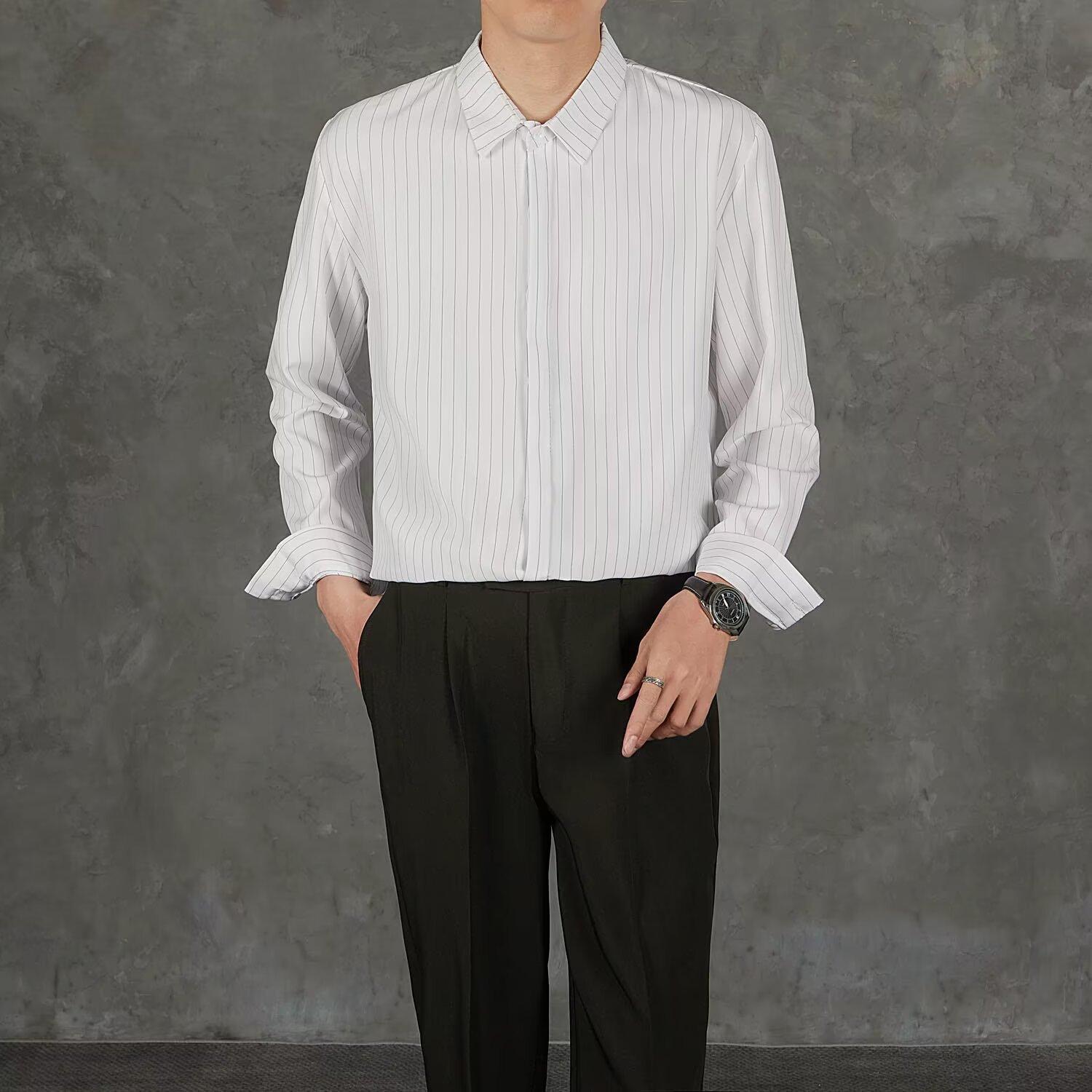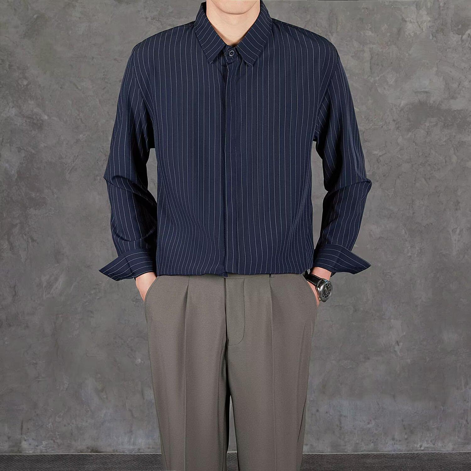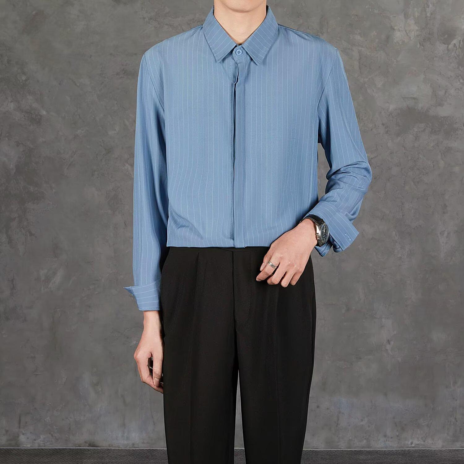 Camisa de diseño a rayas para hombres jóvenes, primavera y otoño, nuevo estilo coreano, estilo maduro, elegante, informal, de negocios, sin planchado, de moda.