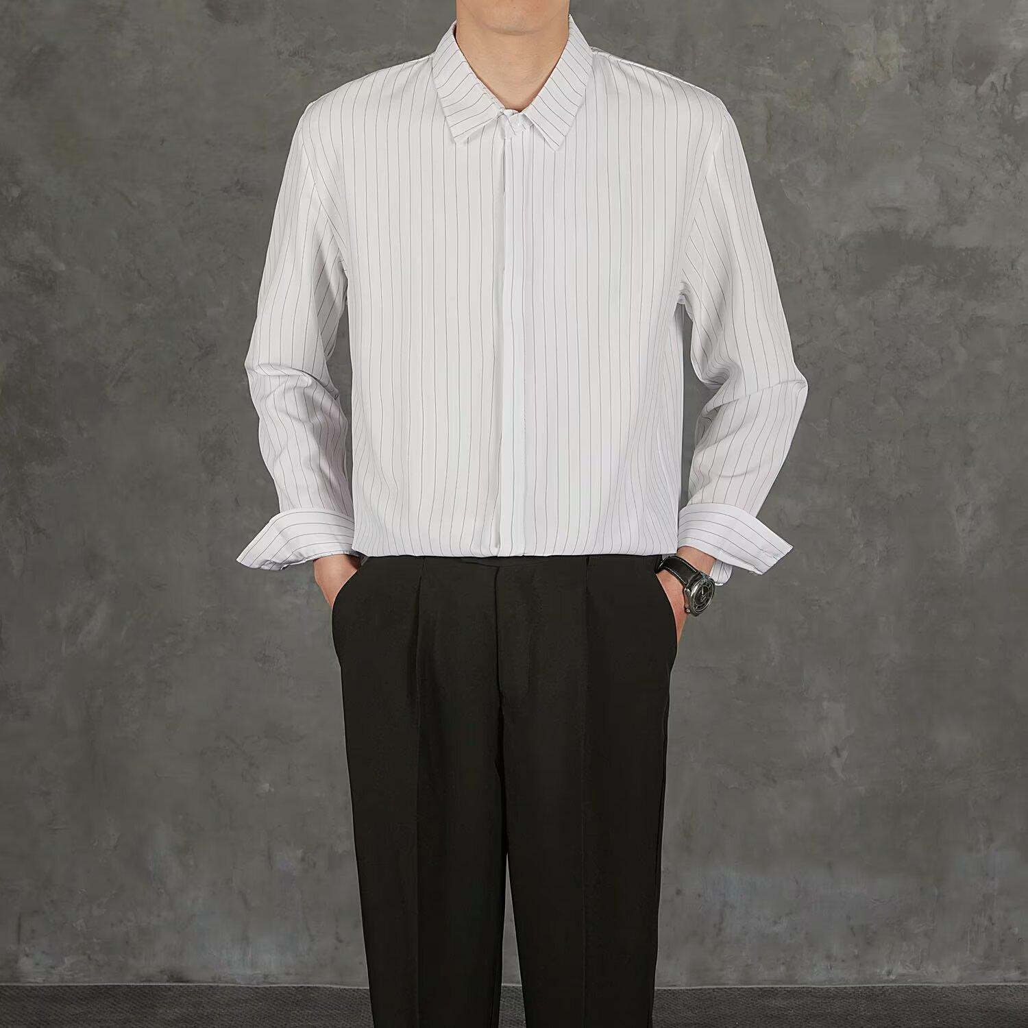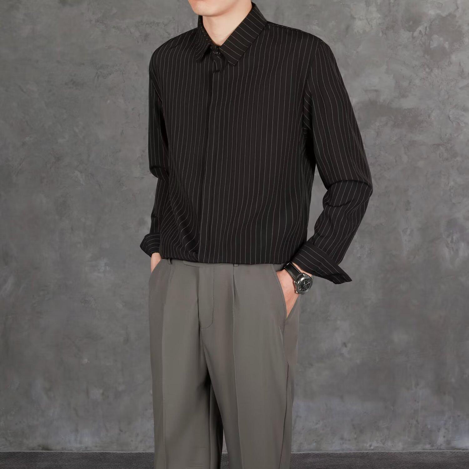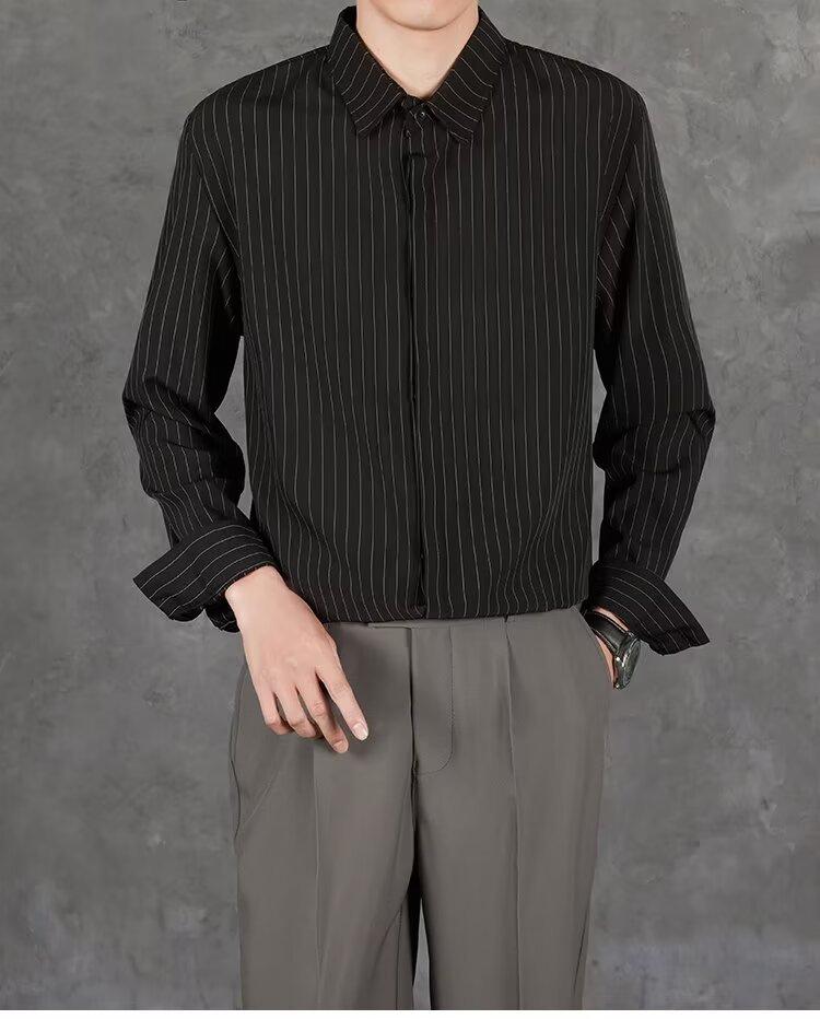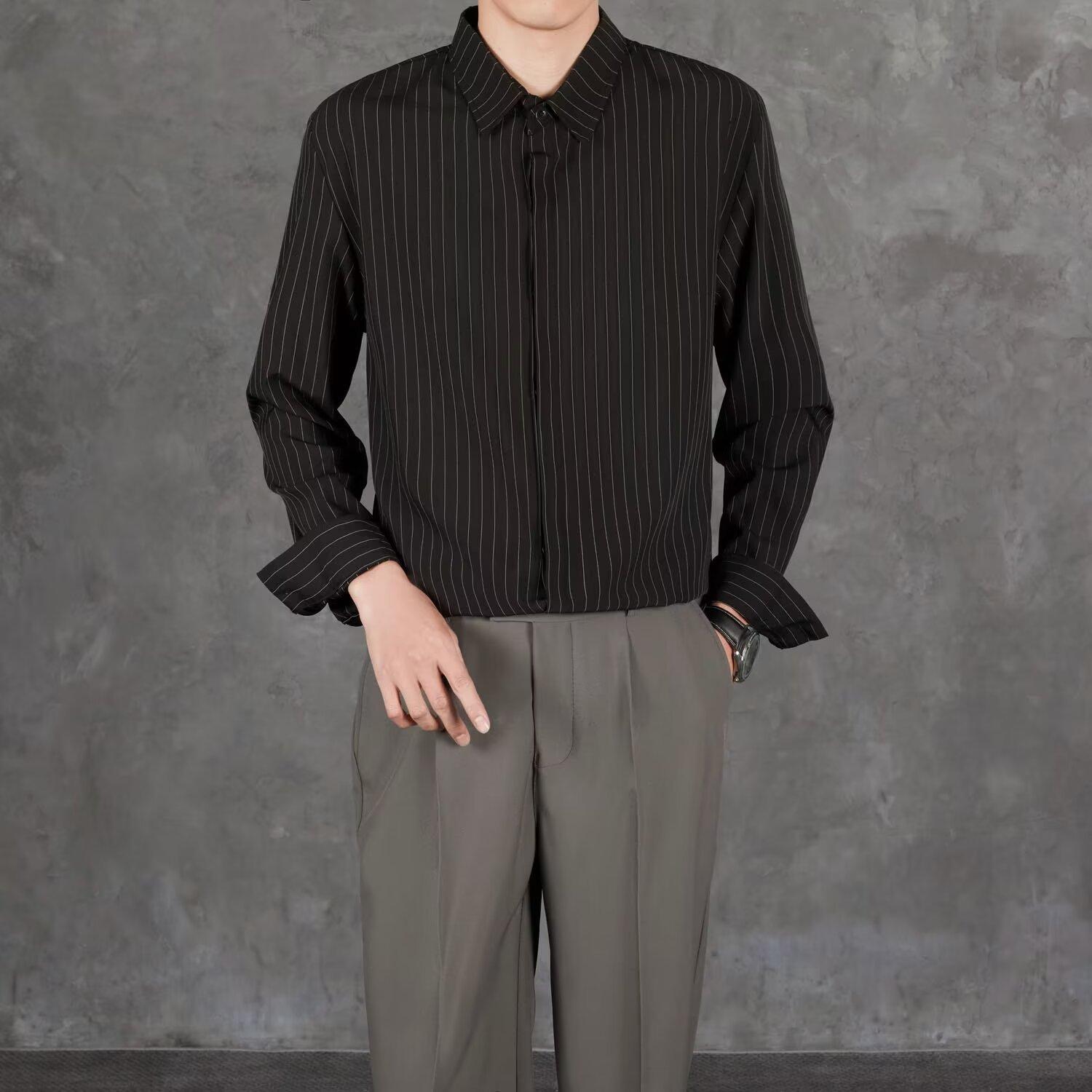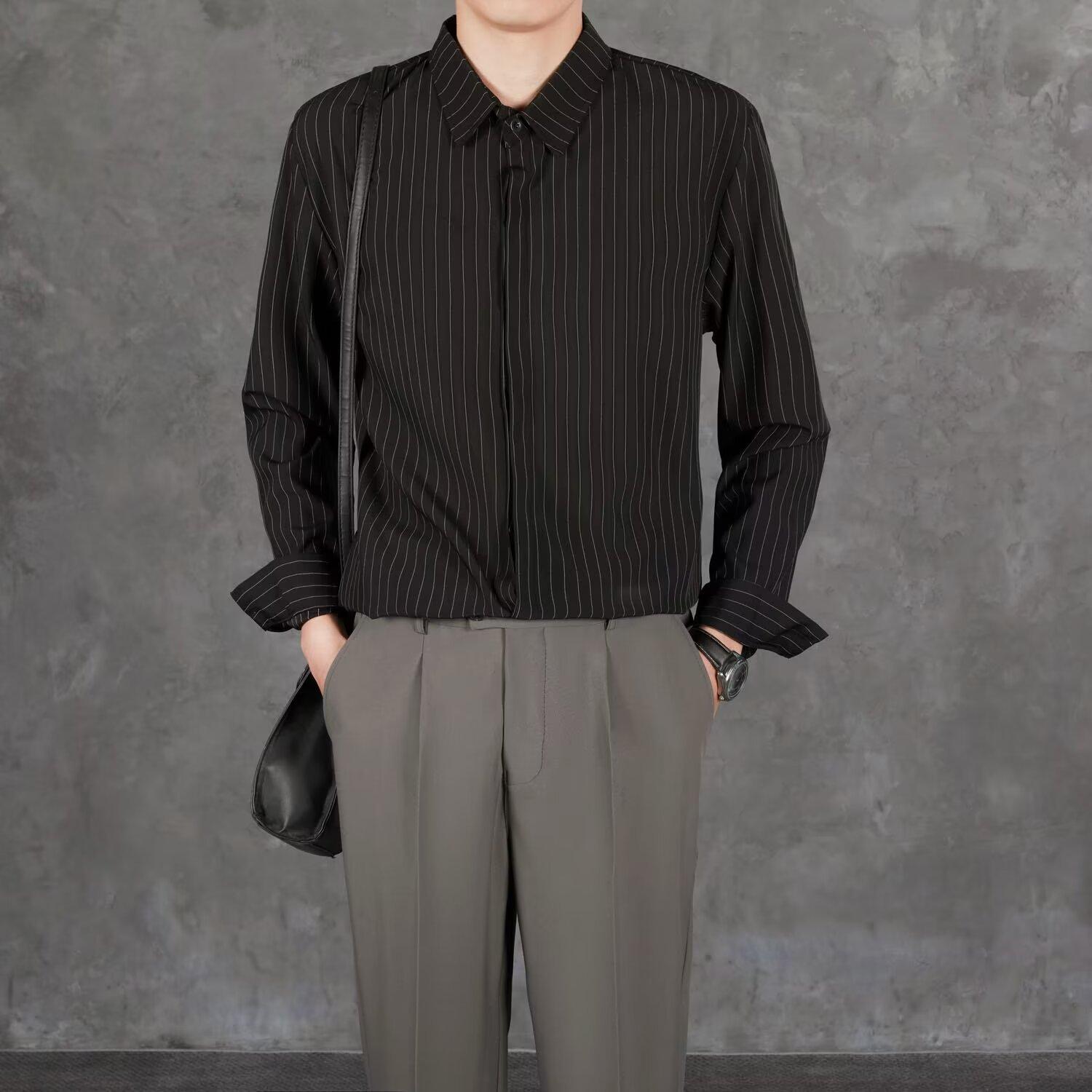 Camisa de diseño a rayas para hombres jóvenes, primavera y otoño, nuevo estilo coreano, estilo maduro, elegante, informal, de negocios, sin planchado, de moda.