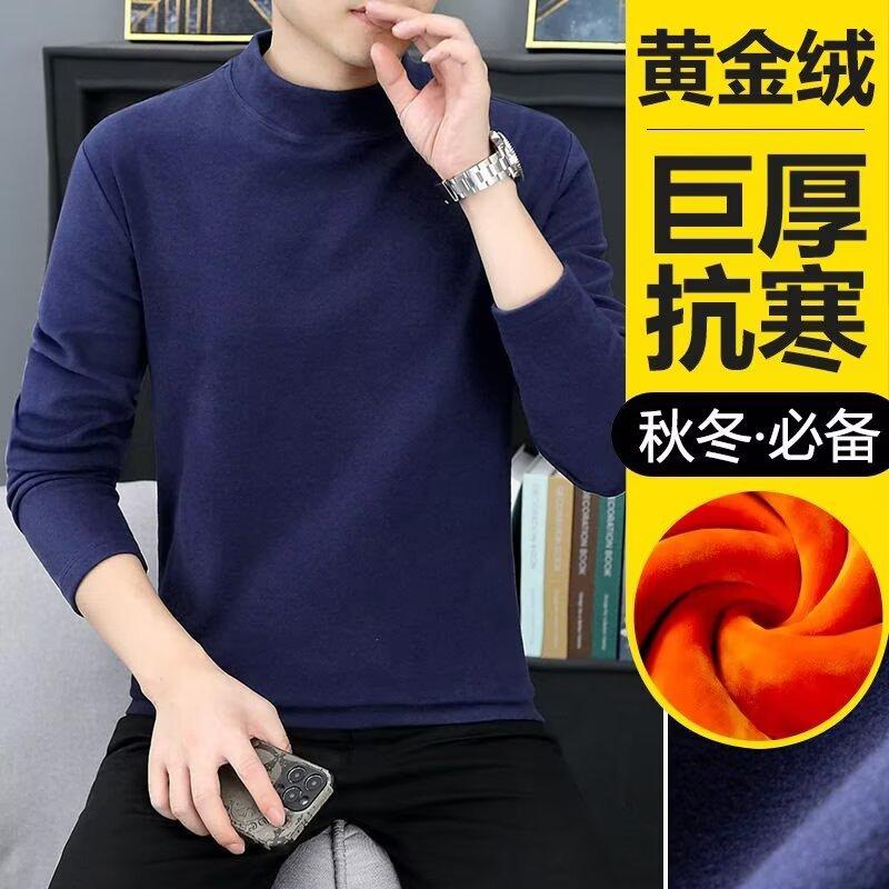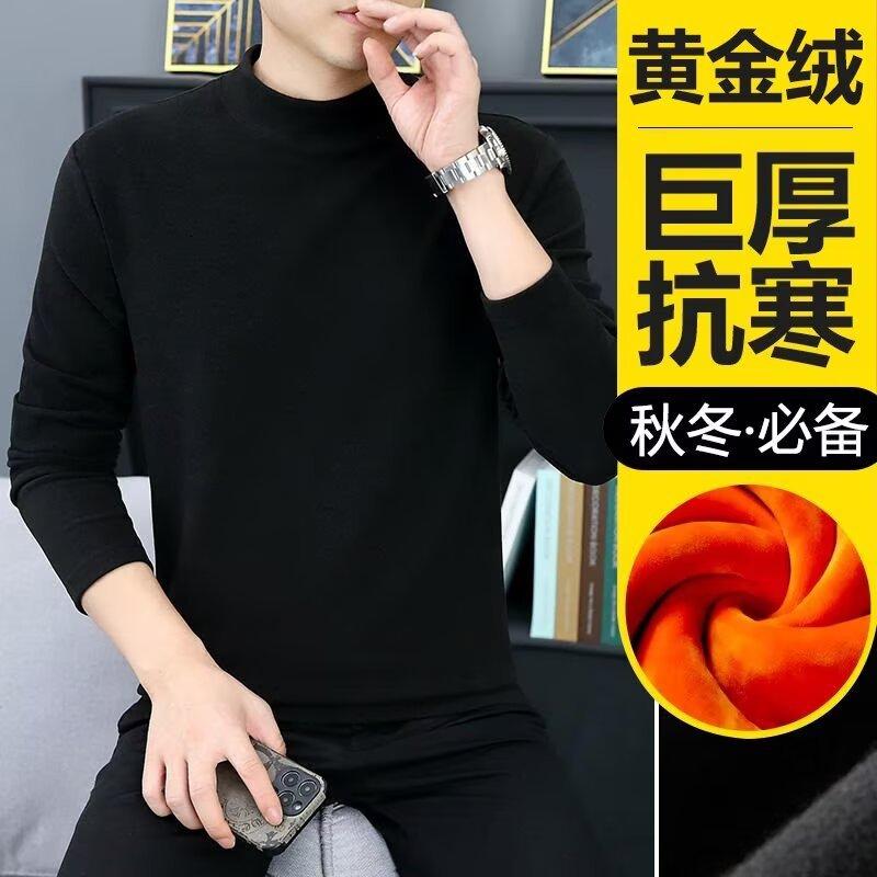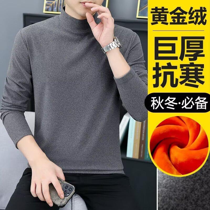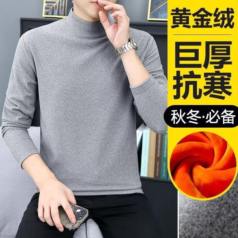 Suéter de cuello alto medio para hombre, suéter de color sólido, otoño e invierno, cálido, de una pieza, de terciopelo acolchado, con forro polar, suéter de base de cuello