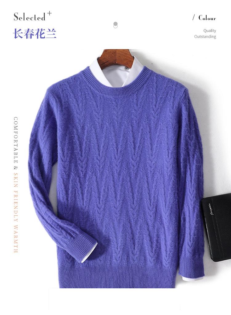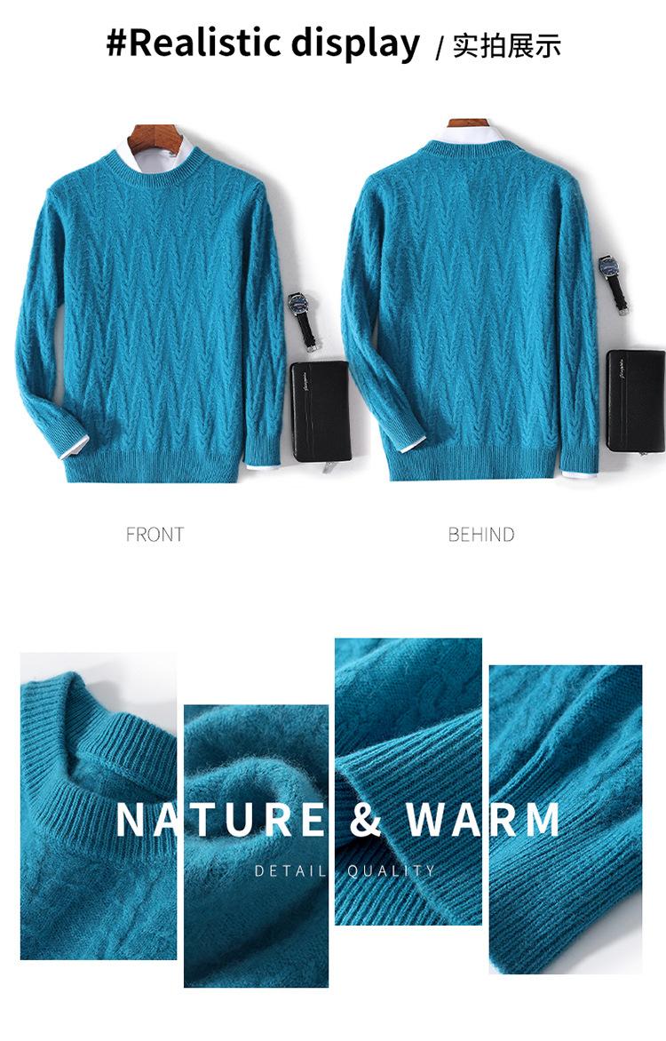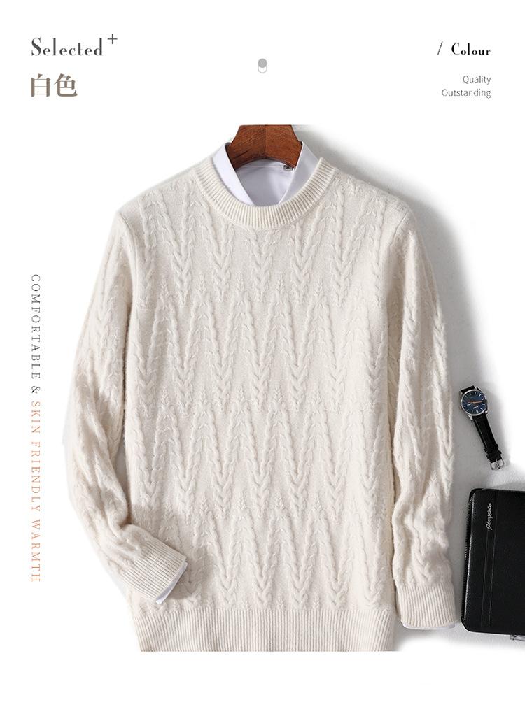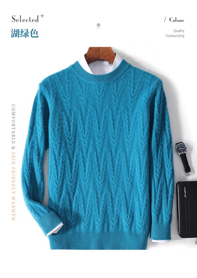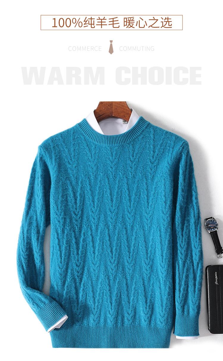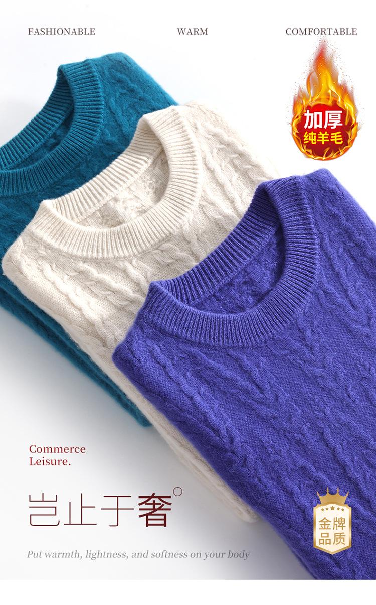 Suéter holgado de lana pura para hombre con relleno, cuello redondo, nuevo otoño e invierno, casual, cálido, suave, ceroso, básico, venta al por mayor
