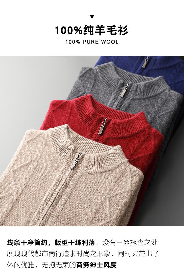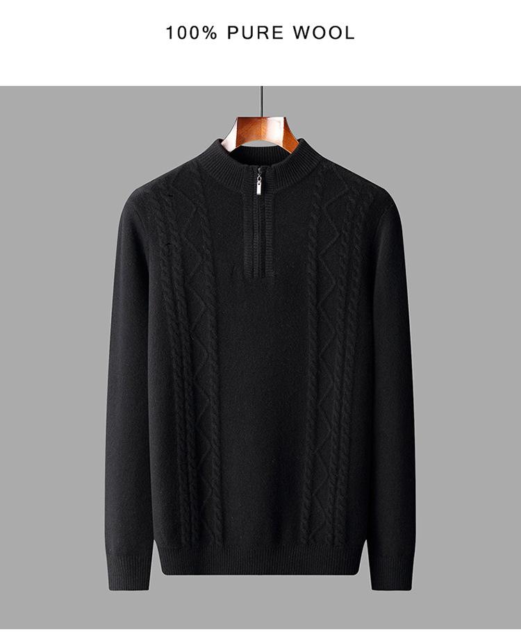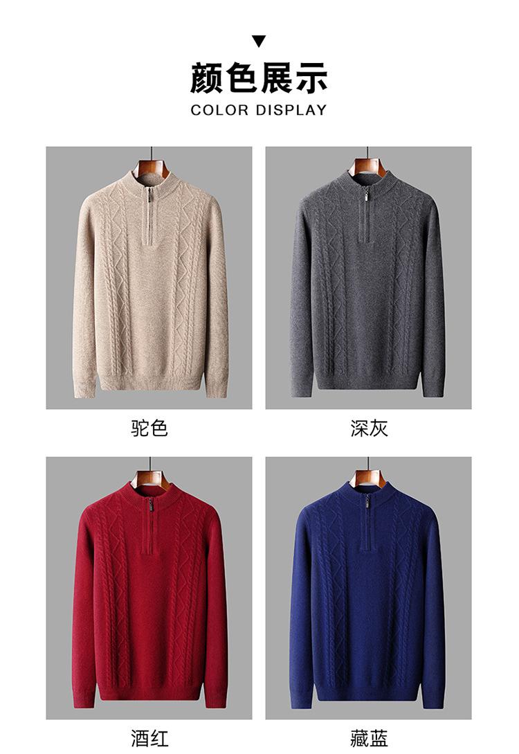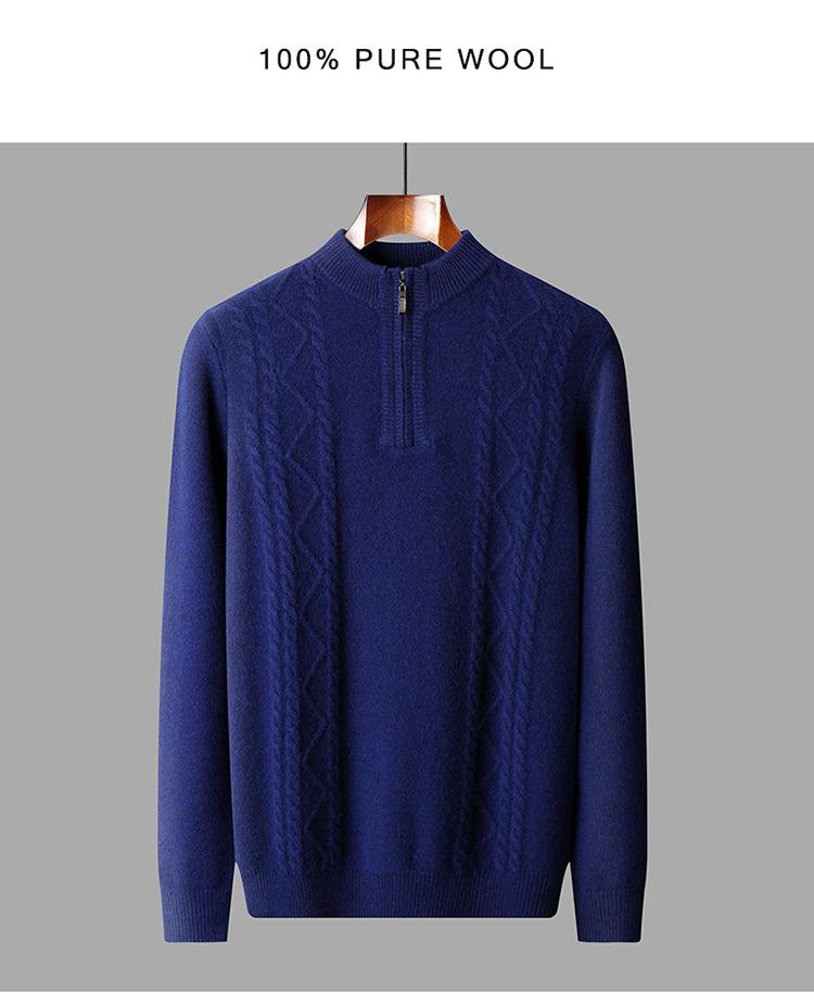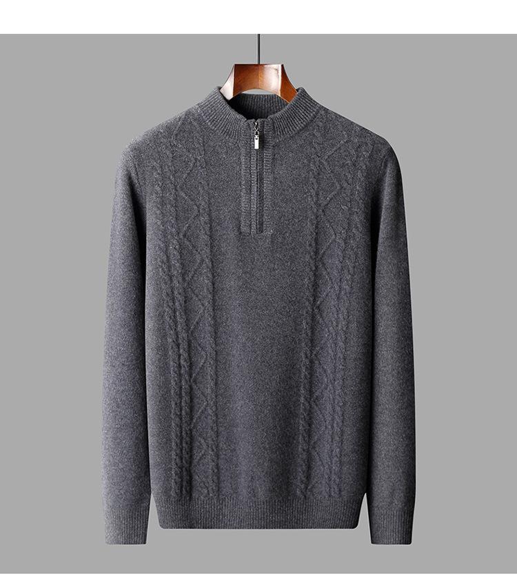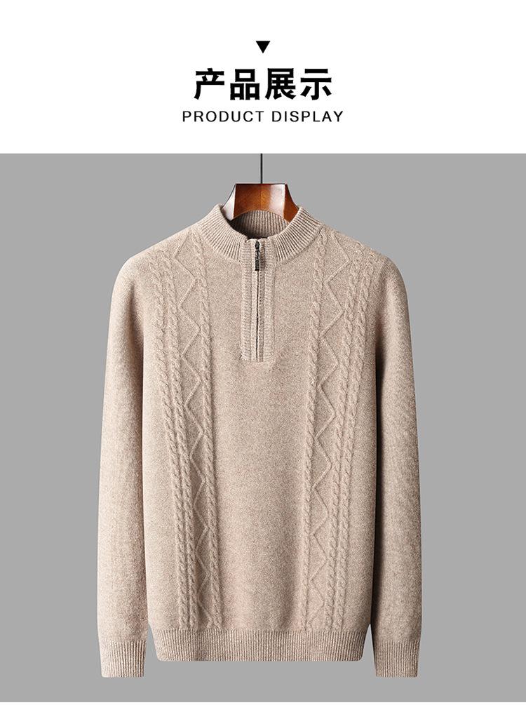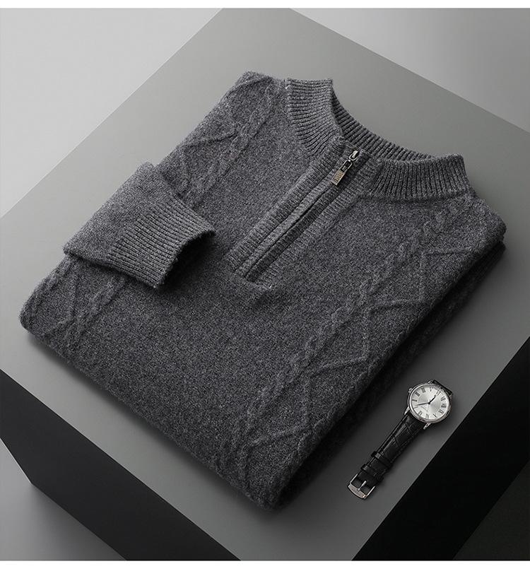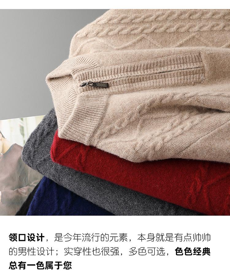 Otoño e Invierno Nuevo Suéter de Lana 100 Pura para Hombre con Cremallera Color Sólido Suéter Jacquard Casual Negocios Cuello Alto de Cachemira