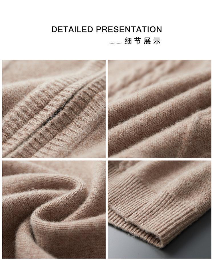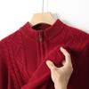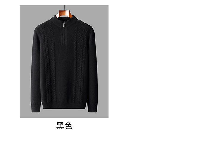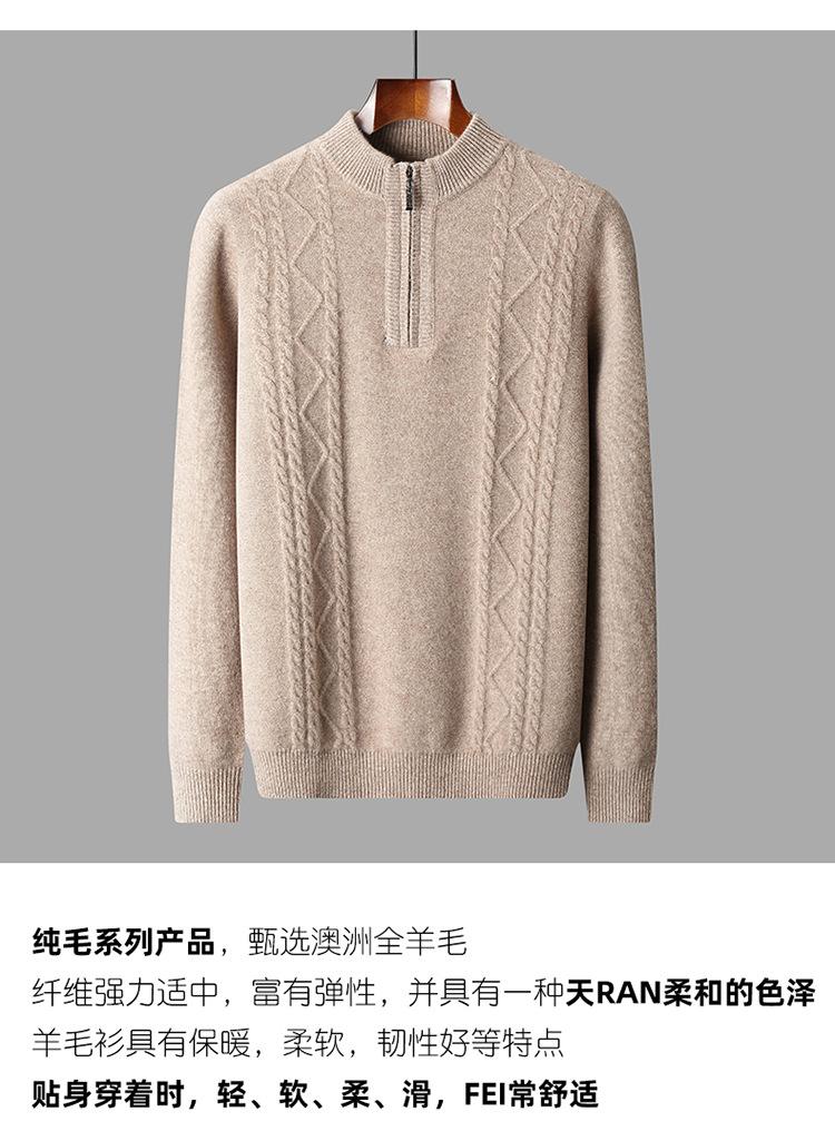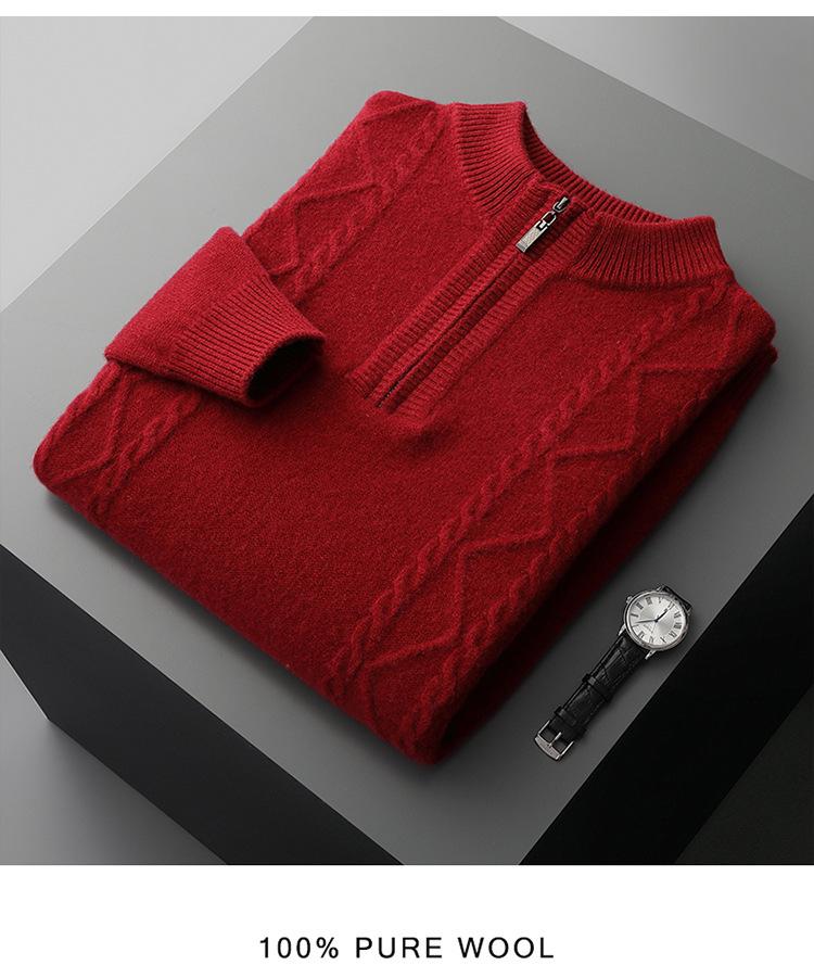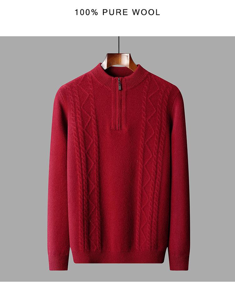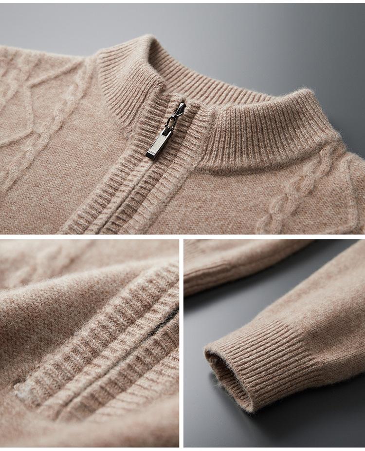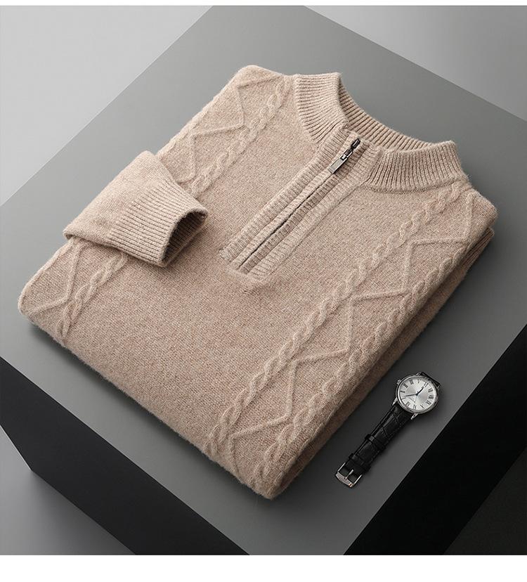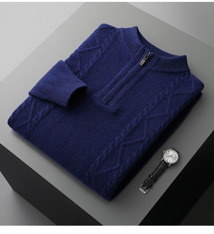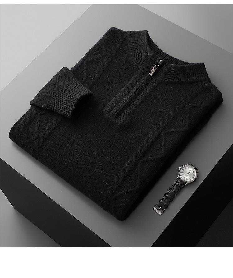 Otoño e Invierno Nuevo Suéter de Lana 100 Pura para Hombre con Cremallera Color Sólido Suéter Jacquard Casual Negocios Cuello Alto de Cachemira