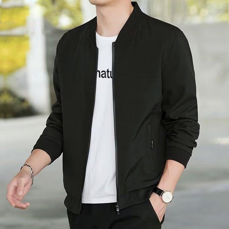 Cárdigan de Hombre Otoño e Invierno Negro con Cuello y Cremallera Chaqueta Deportiva Casual Handsome para Combinar con Todo Chaqueta de Béisbol Top